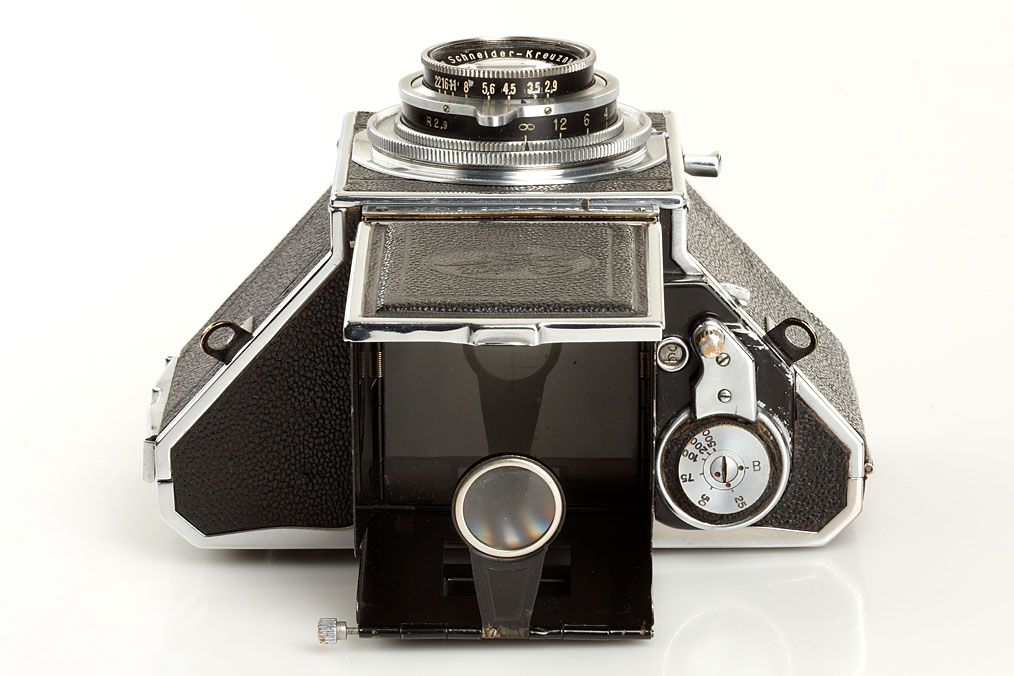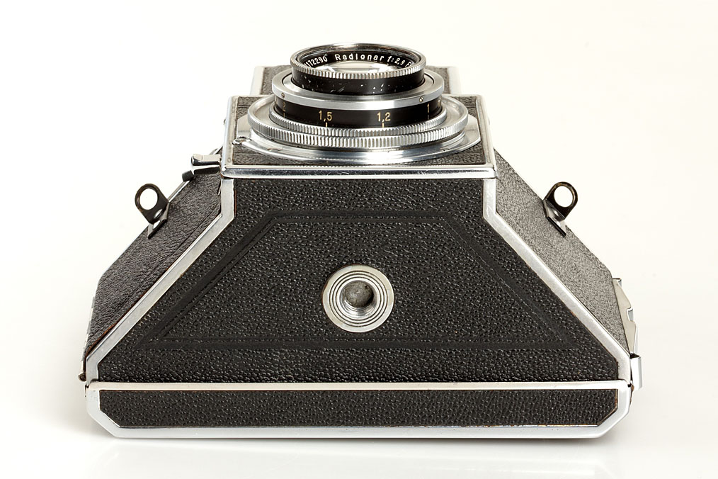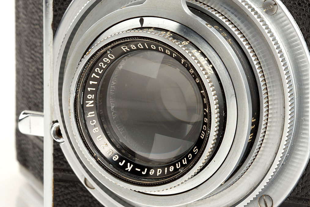 6x6cm, first type with fast Radionar 2.9/7.5cm no.1172290, similar to Reflex-Korelle, focal plane shutter needs attention