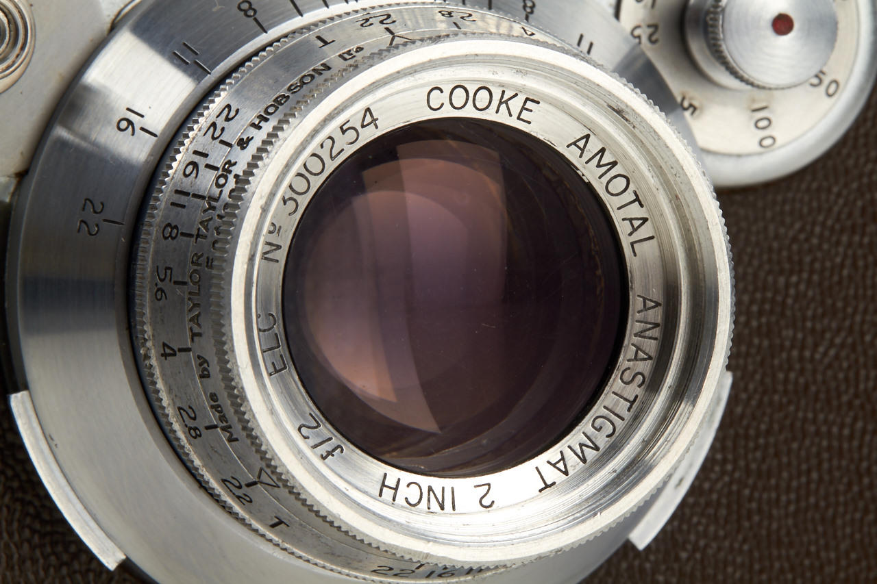 spring-driven 35mm rangefinder camera in near mint working condition, with Taylor Hobson Cooke Amotal 2/2" no.300254
