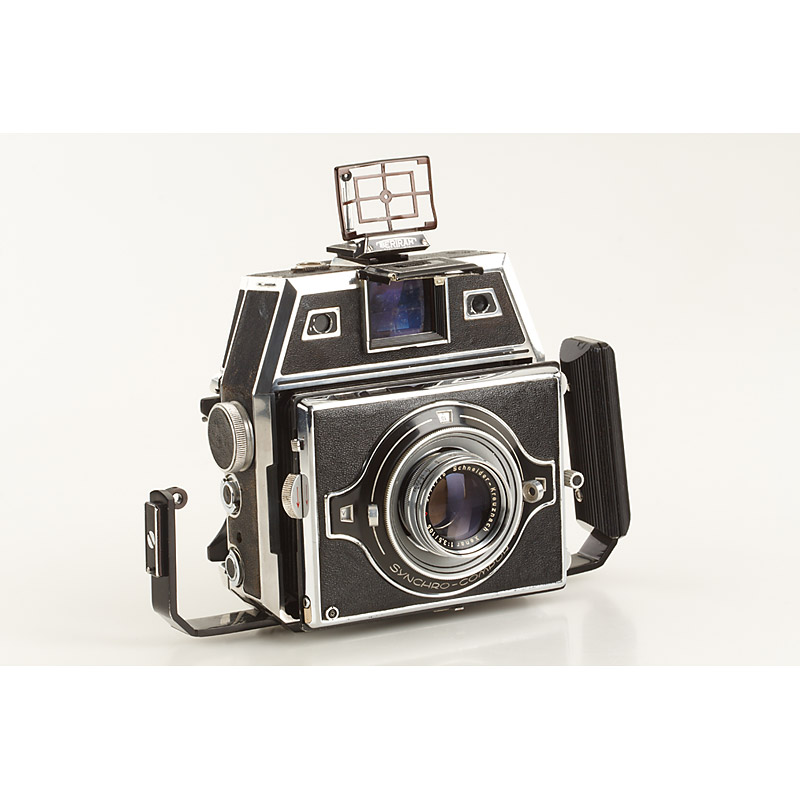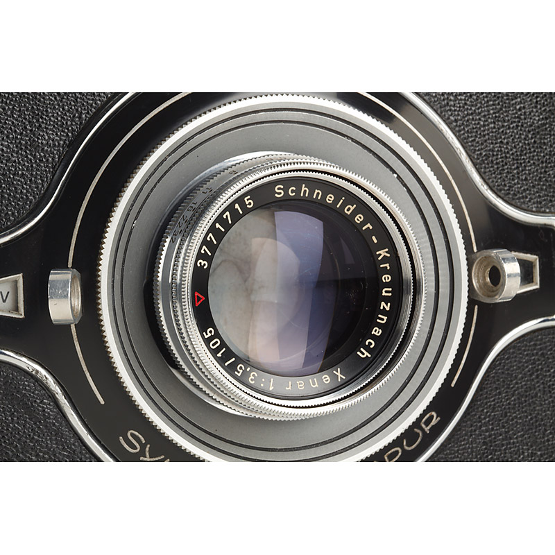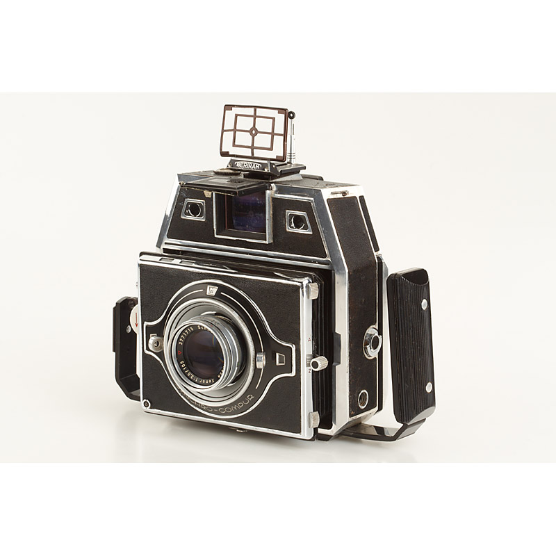 Bertram Press camera outfit in beautiful condition with Xenar 3.5/105mm no.3771715, Tele-Xenar 5.5/180mm no.3571313, Angulon 6.8/65mm no.4475136 (cap, maker's box) and rare Xenar 3.5/75mm no.3571236, sports-finder, strap, instruction book, 4 filters (yellow, orange, green), 6 plate film holders - all in original fitted outfit case