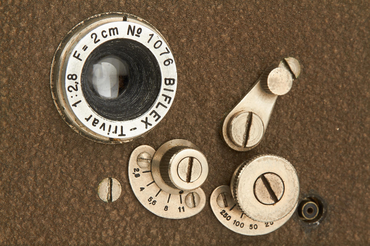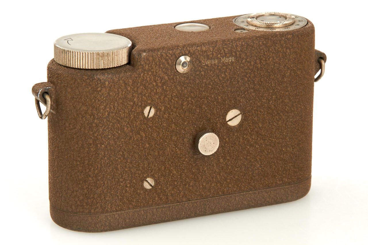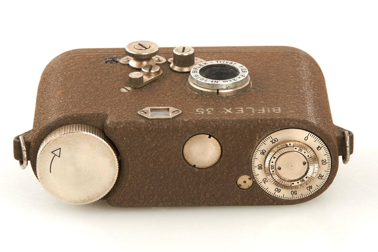 very rare and unusual Swiss made subminiature camera for 11x11mm exposures on 35mm film, with Biflex-Trivar 2.8/2cm no.1076, in excellent condition