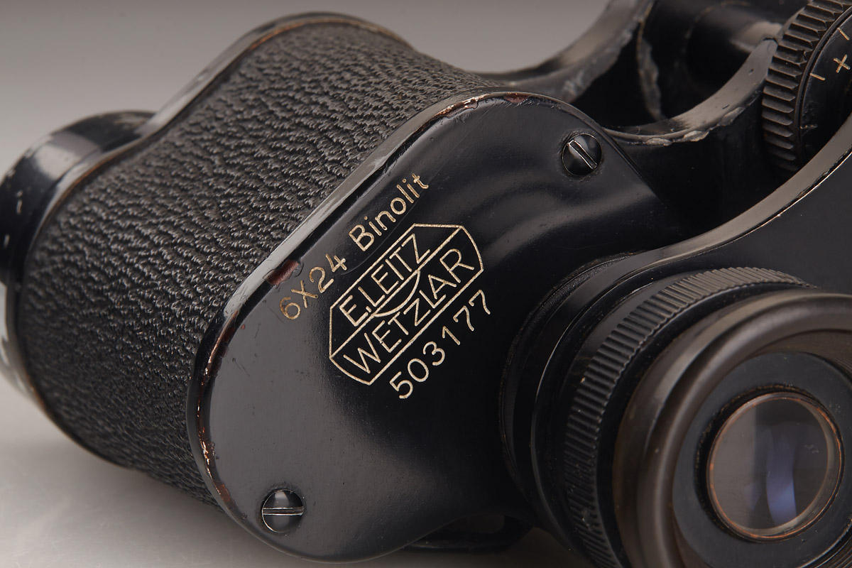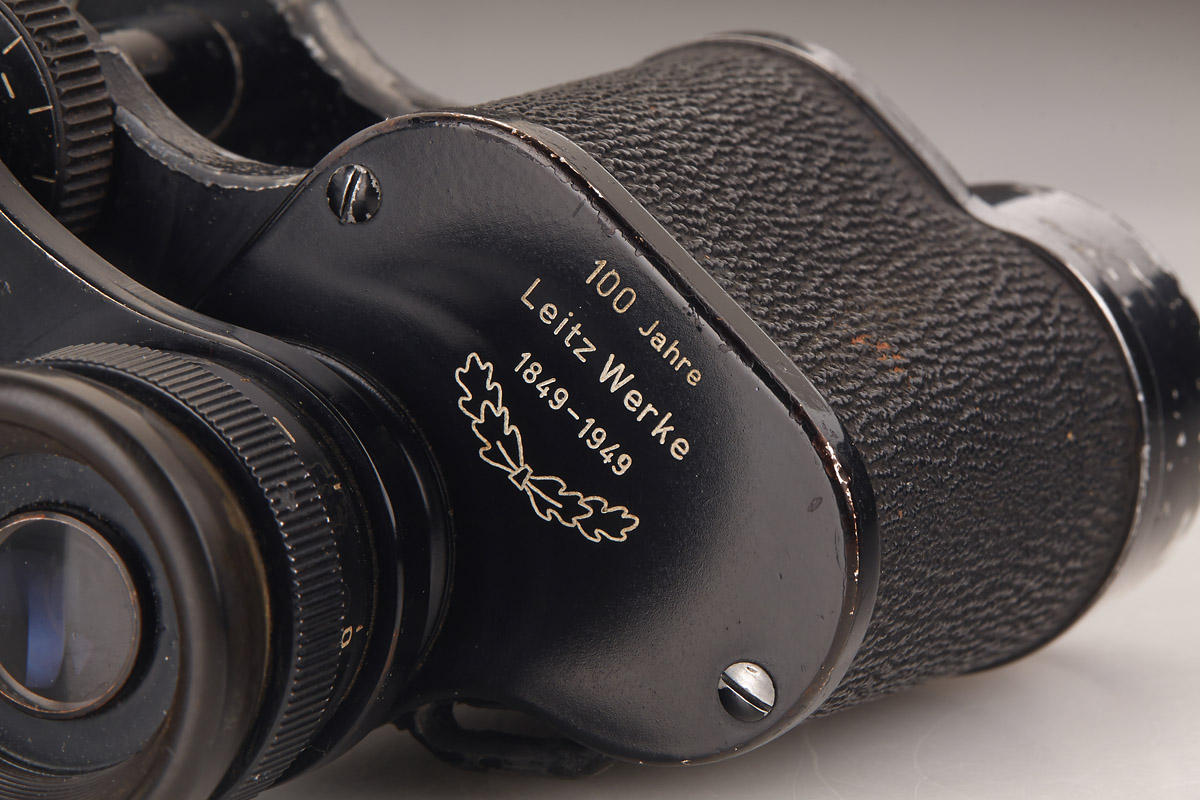 Very rare commemorative Leitz binoculars BINOLIT 6X24, engraved ‘100 Jahre Leitz Werke, 1849-1949’. This is the first time a piece with the 1949 anniversary crest engraving is offered at auction. LITERATURE Lars Netopil (ed.), 100 Jahre Leitz Werke, in: VIDOM, no. 94 (Leica Historica e.V., 2007), p. 42ff. The Company Ernst Leitz Wetzlar celebrated its 100th anniversary on August 6, 1949. Various publications commemorated this event, which are widely known. Of particular interest, however, are the few Leitz products especially engraved for this event. There was no collectors’ market at all at the time, so the reason for those special engravings was a raffle for the Leitz employees. As first prizes, there were three Leica cameras (Leica Standard model E, IIc and IIIc) plus six binoculars (two each of the 6X24, 6X30 and 8X30 models), as well as a very small number of Leitz Prado-150 slide projectors. Die Firma Ernst Leitz in Wetzlar beging ihr 100-jähriges Bestehen am 06. August 1949. Zu diesem Anlass erschienen zahlreiche Festschriften, die allgemein bekannt sind. Von speziellem Interesse sind die wenigen Leitz Produkte, die aus diesem Anlass besonders graviert wurden. Es gab zu dieser Zeit noch keinen Sammlermarkt, der Grund für diese Sondergravuren war vielmehr eine Tombola für die Mitarbeiter. Als erste Preise wurden drei Leica Kameras ausgelobt (Leica Standard, IIc und IIIc), weiterhin sechs Ferngläser (je zweimal 6X24, 6X30 und 8X30), sowie eine sehr kleine Anzahl von Leitz Prado-150 Diaprojektoren.