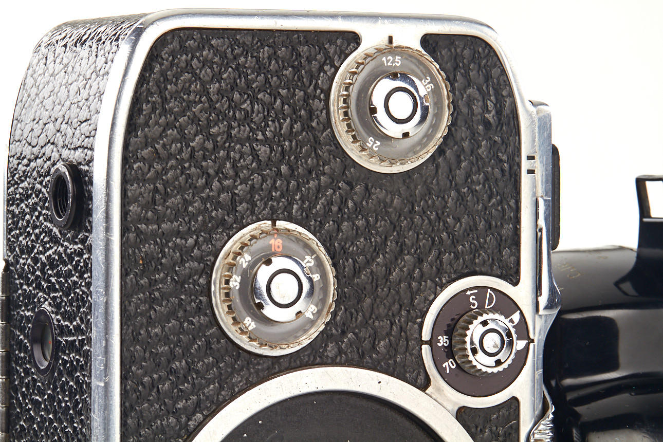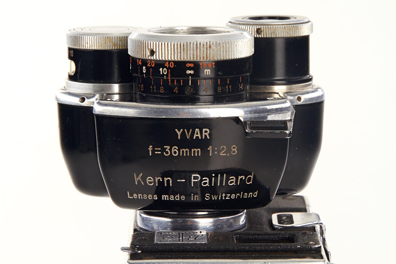 8mm motion picture camera in very good condition, with extremely rare special Yvar no.931229 with two focal lengths 13mm and 36mm with f1.8 and f2.8 accordingly, brown Bolex leather case