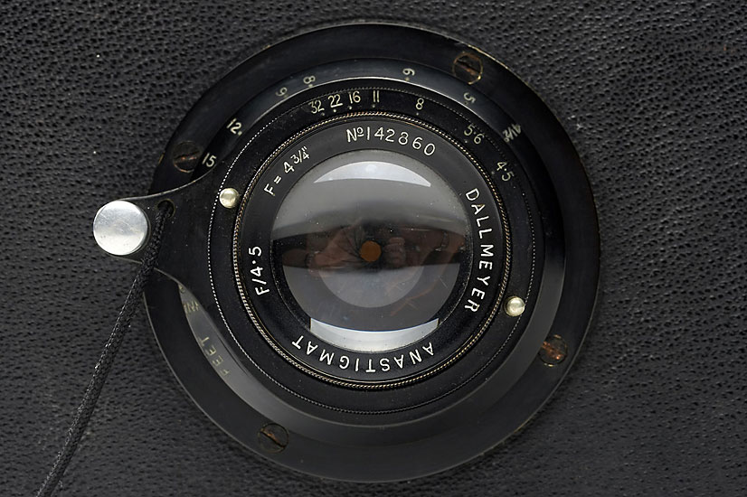 for 120-rollfilm, Dallmeyer 4.5/4.3/4in (see Abring IV p. 99 and British Camera Maker's Norman Channing & Mike Dunn p.279), a scarce camera which was advertised for a year before a new model was launched in 1932