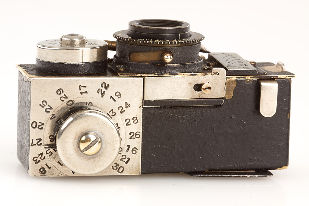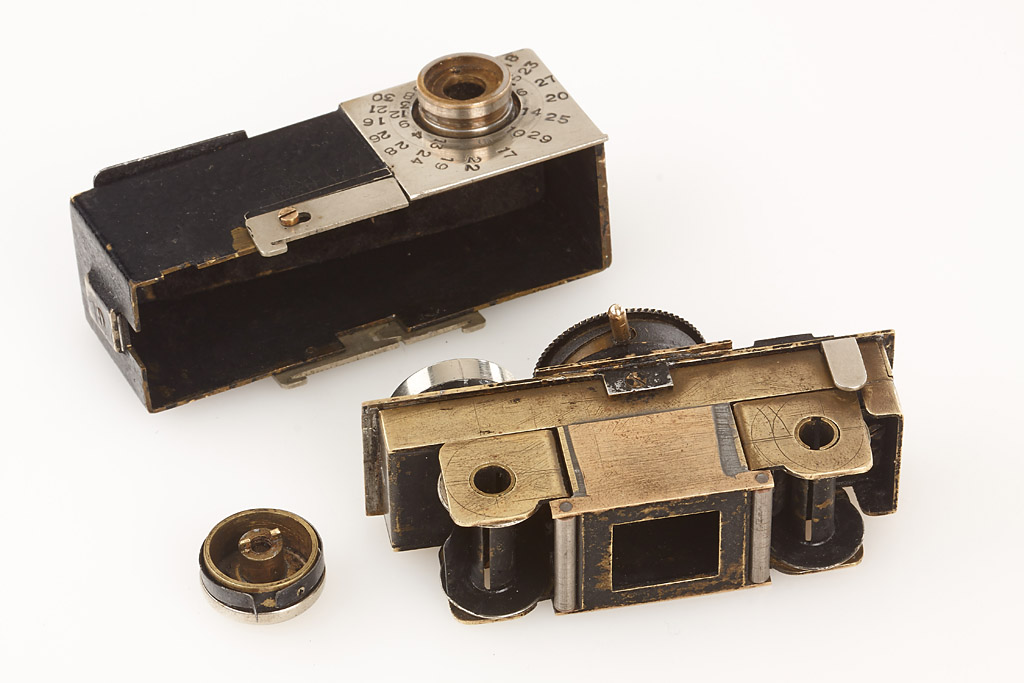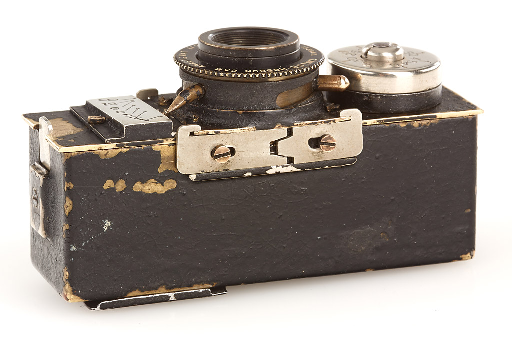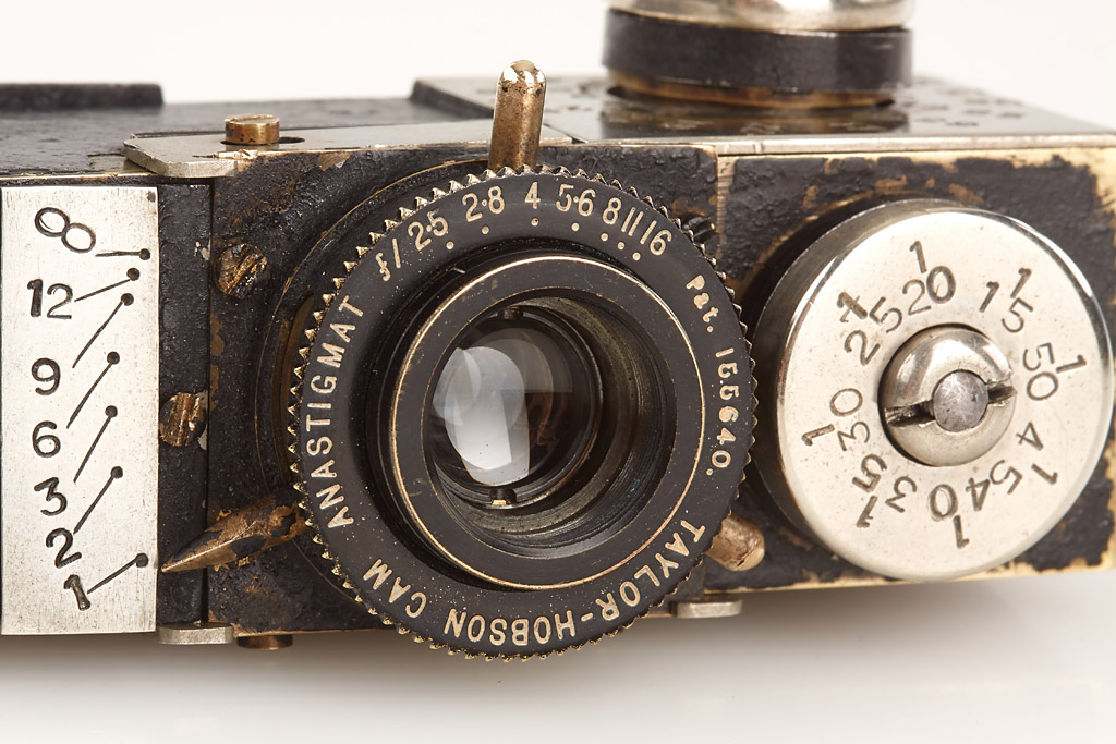 16mm, black painted brass body with nickel fittings, focusing Taylor Hobson 2.5 lens, swing-in frame finder on back, no serial number or maker's engravings