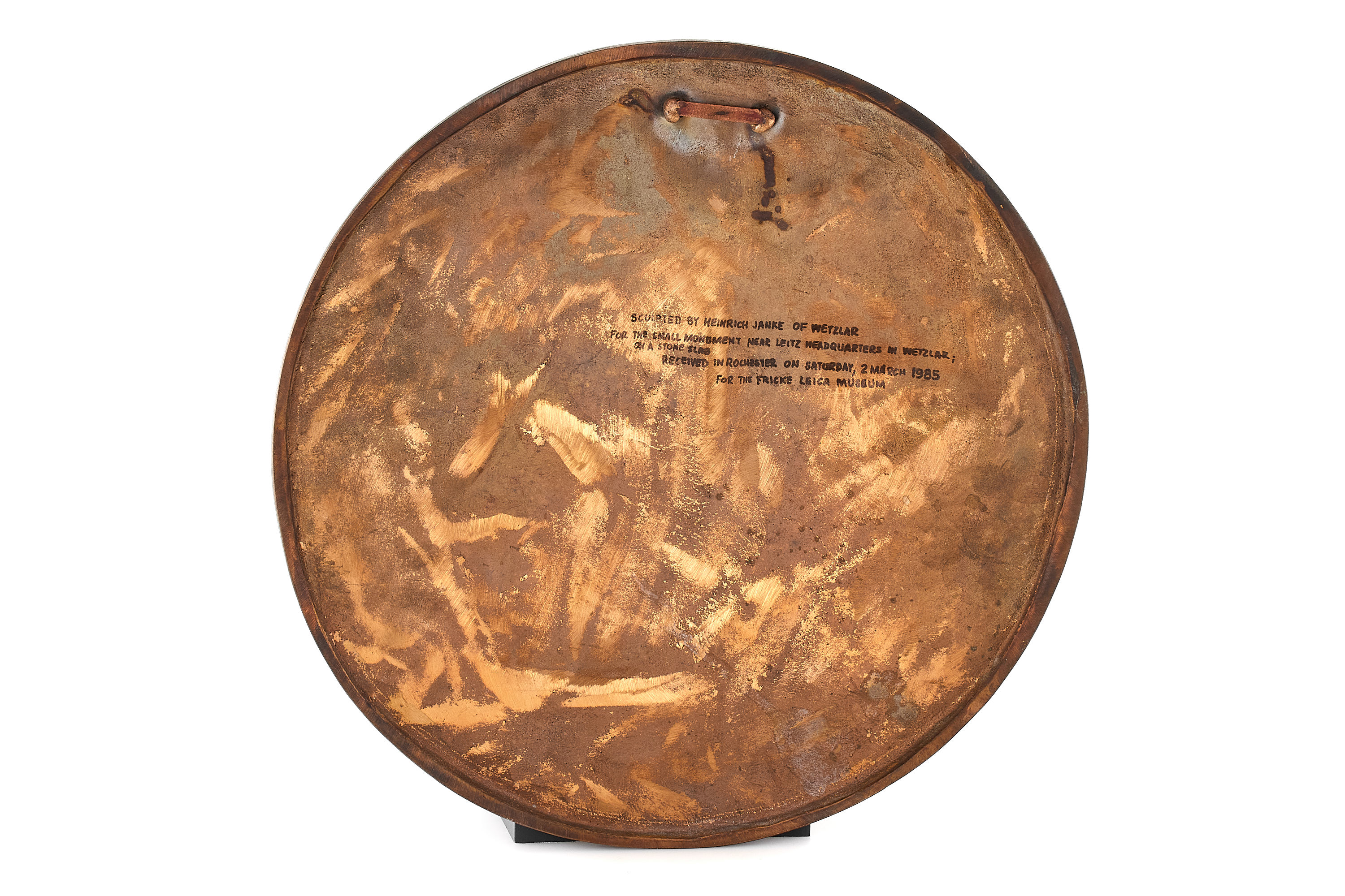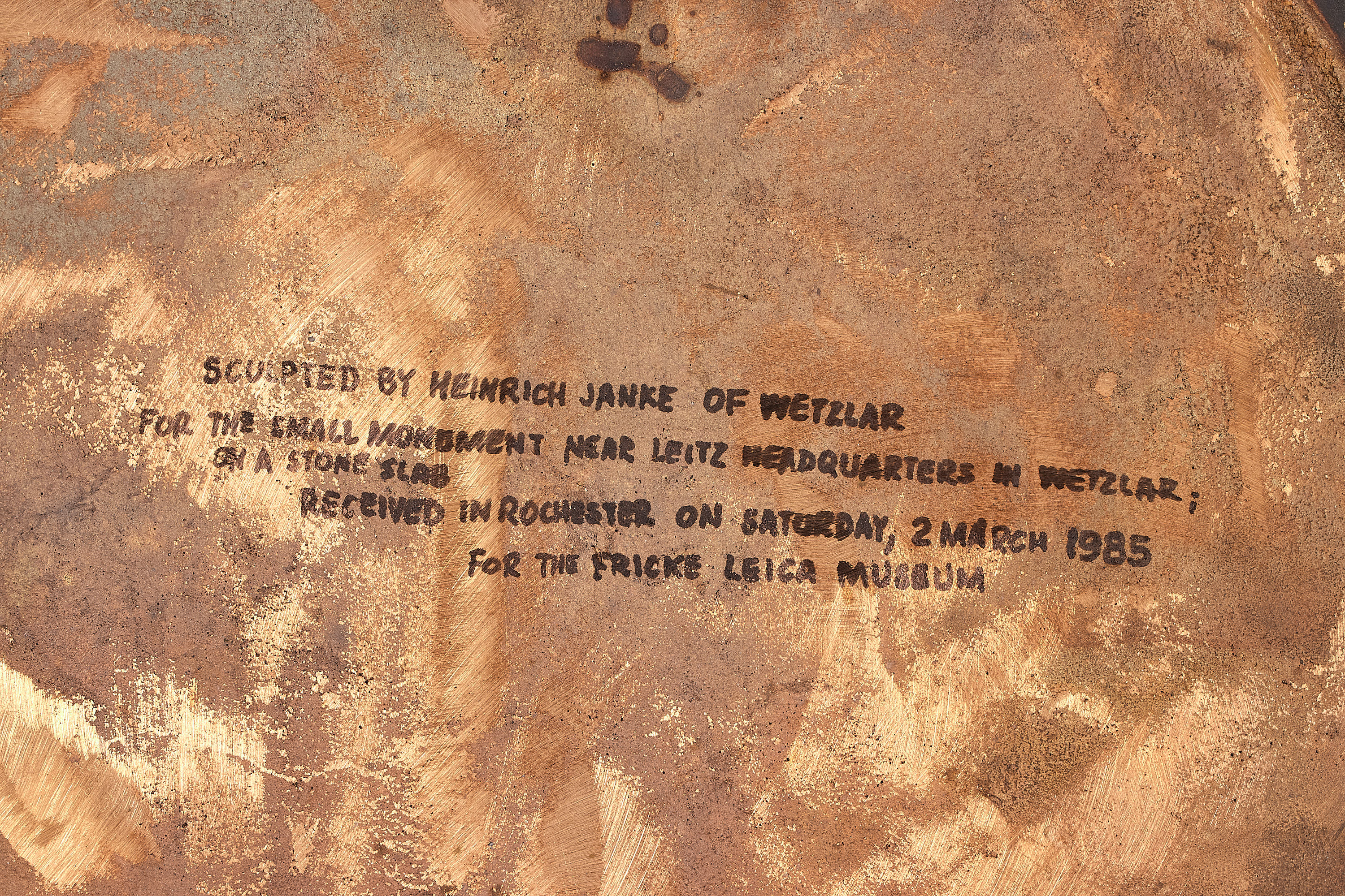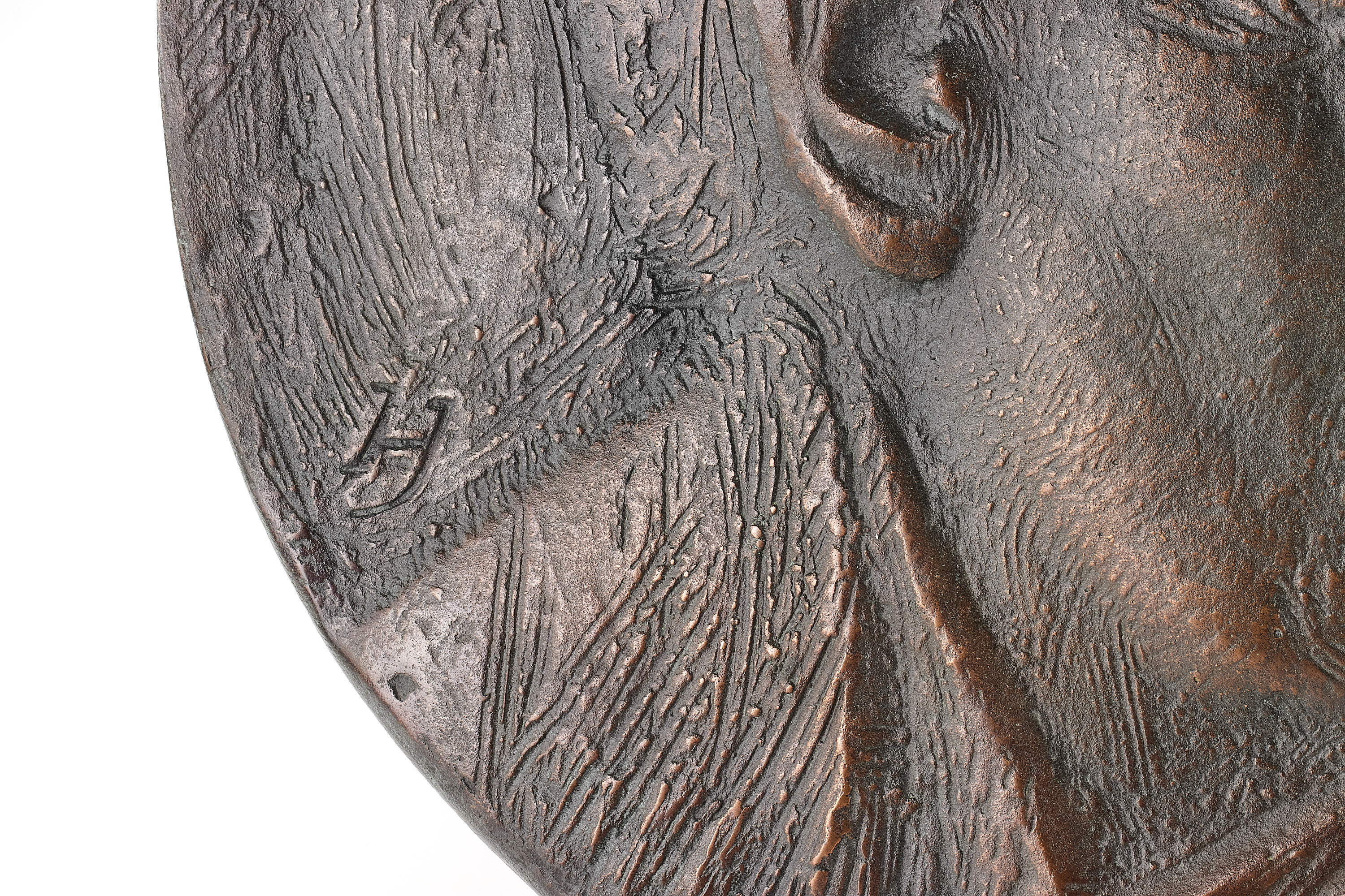 Beautiful bronze casting portrait of Oscar Banack made by Heinrich Janke (1930-2023), famous German artist and head of the design department for the Leitz company, the same portrait can be seen on the memorial stone in Wetzlar, this unique piece was made by the artist himself on special order, diameter 41cm, 7.4 kg.