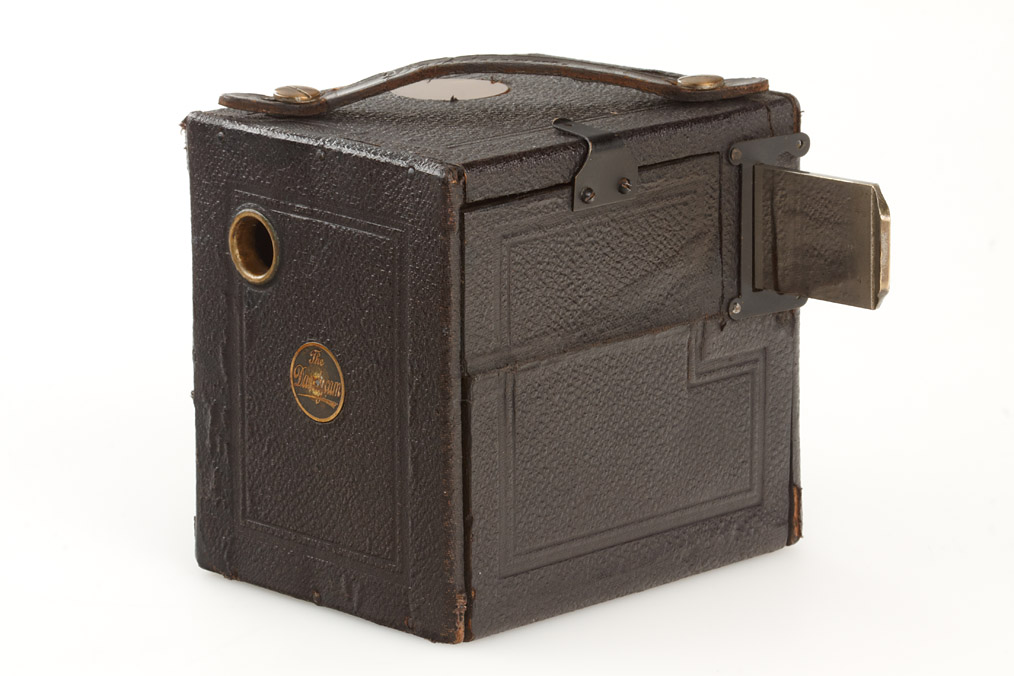wood body ferrotype camera for 25mm button plates with magazine and metal tank (some small parts of leather missing, clip detached)
