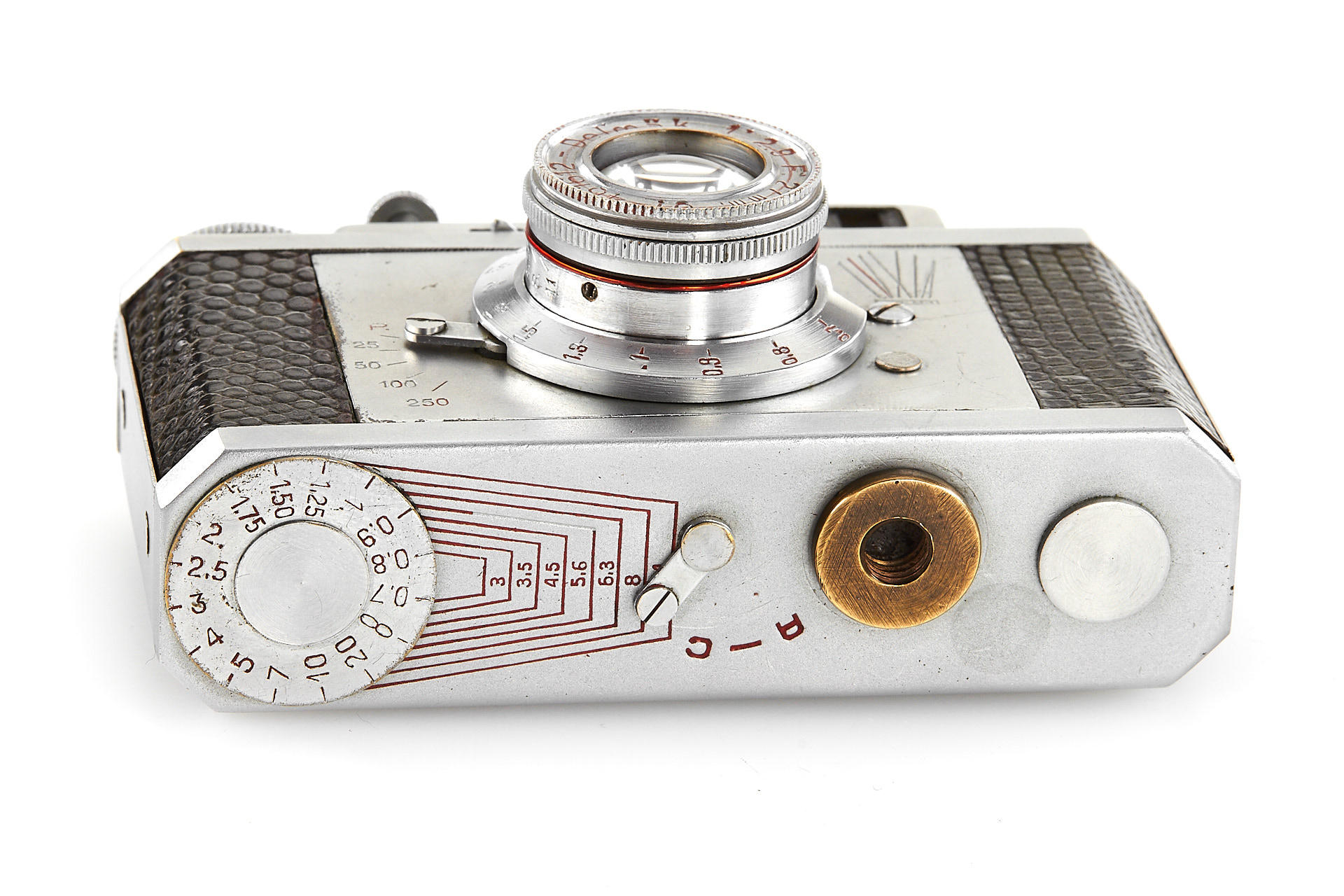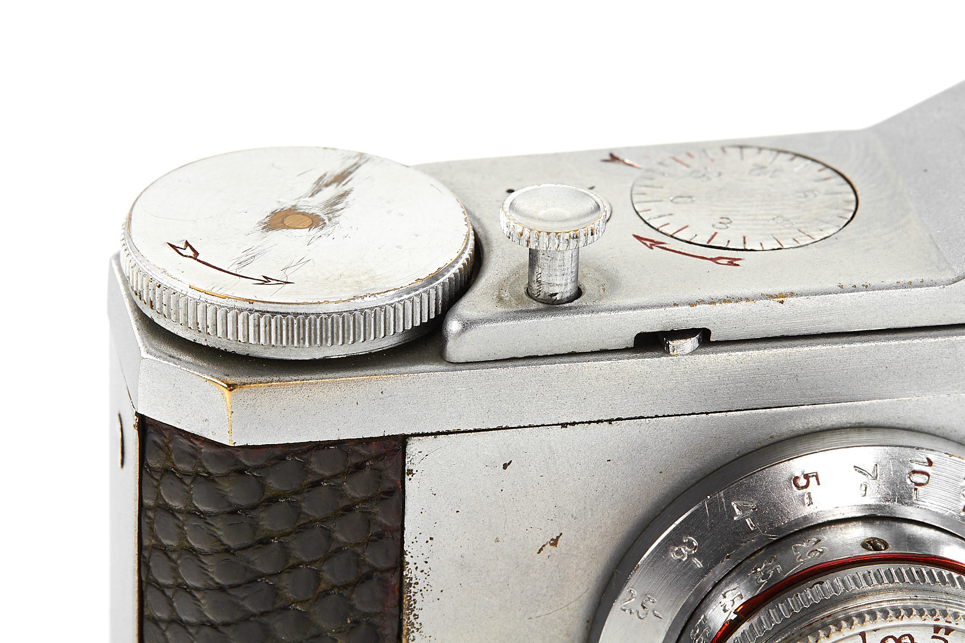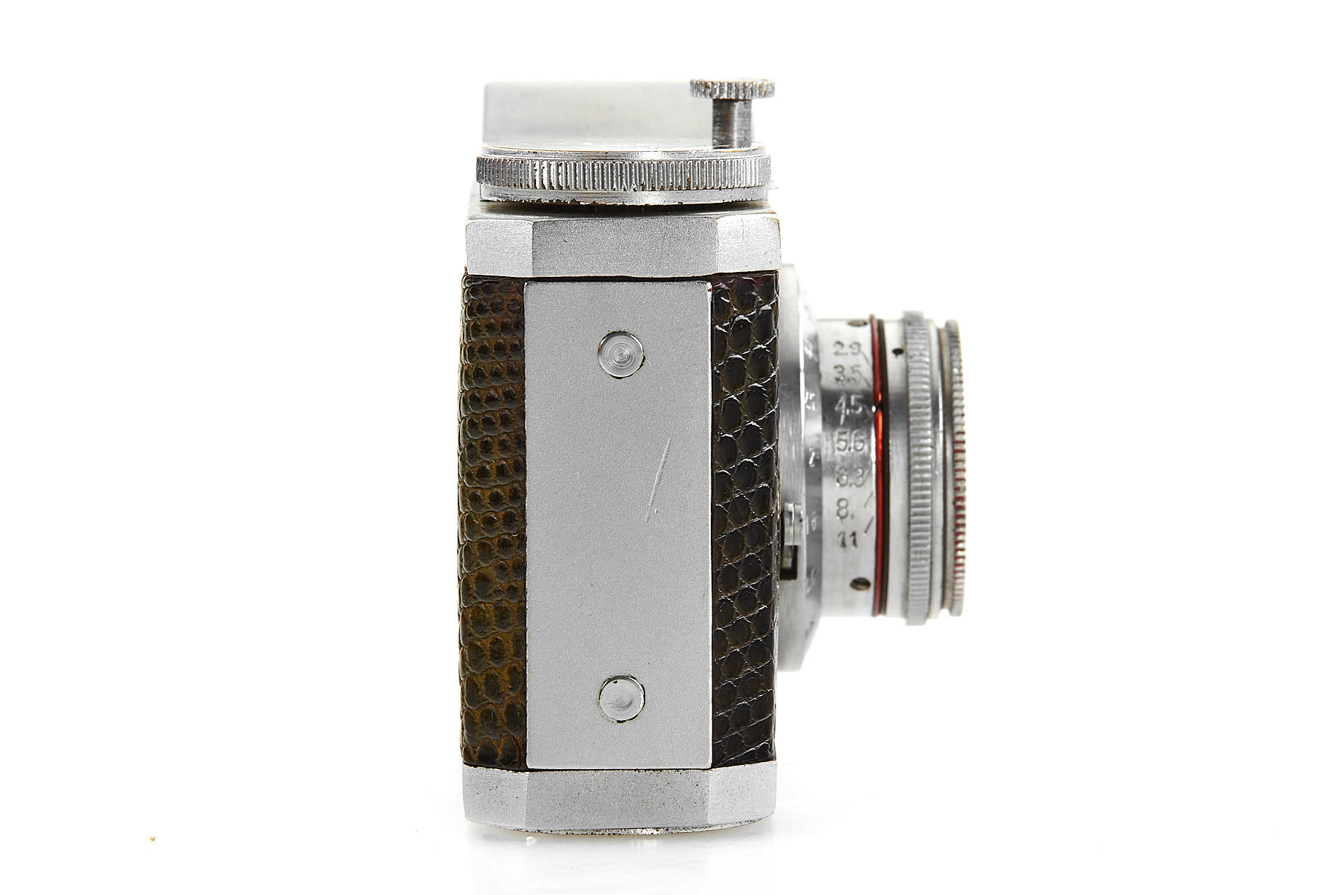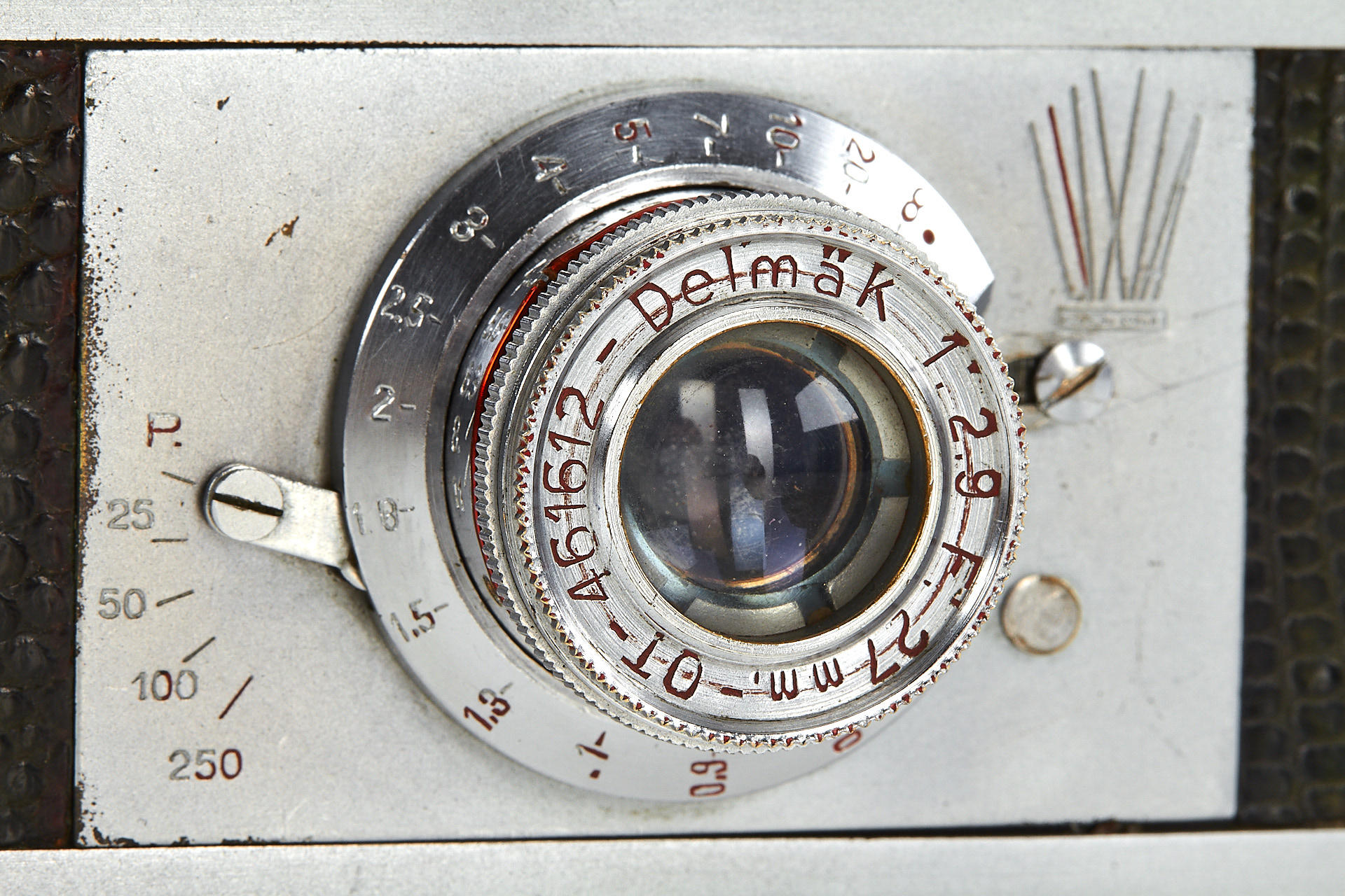 extremely rare first model Luxia, only a few of these cameras have been made because of technical problems with the shutter - it has been quickly discontinued and the company introduced the Luxia II, chrome body with reptile-pattern covering for half-frame exposures on 35mm film, collapsible Delmäk 2.9/27mm no.461612, this is the first example of this rare camera we've seen