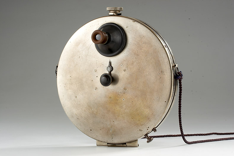 concealed camera for 6 exposures on one round glass plate, periscope lens, rotary shutter, in very good original condition