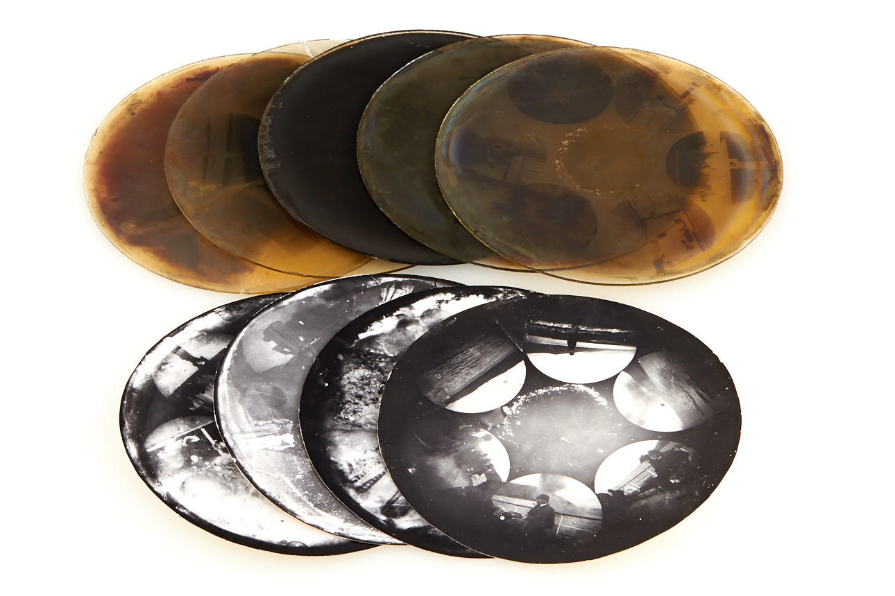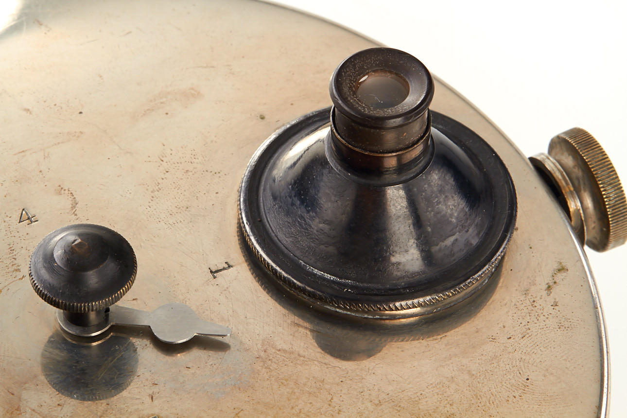 very rare version for only 4 exposures 4x4cm on glass plates, periscope lens, rotary shutter, in very good original condition, 5 exposed glass plates in original plate box
