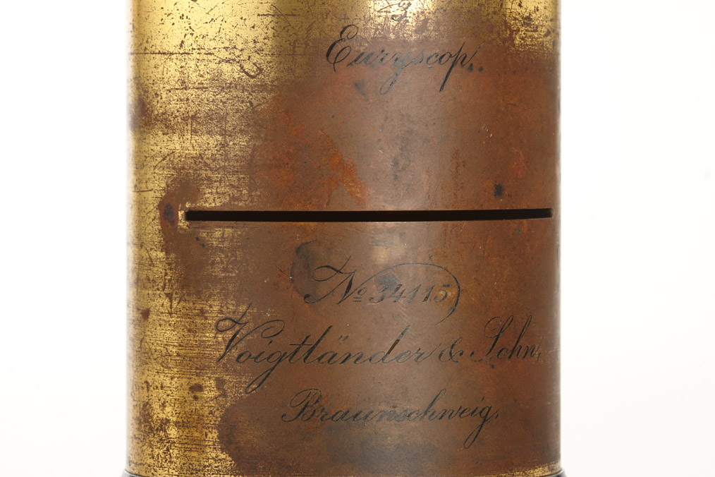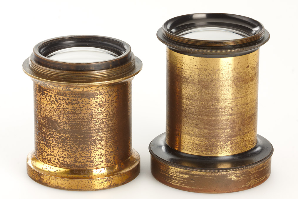 (1) Goerz Extra-Rapid-Lynkeioskop Serie C no.6 no.43364 with good lenses, for waterhouse stops, approx. 34cm focal length, front and rear lens diameter c.5cm, 8.5cm total height, (2) Voigtländer Euryscop 3 no.34115, engraved: Voigtländer & Sohn Braunschweig, good lenses, for waterhouse stops, approx. 32cm focal length, front and rear lens diameter c.5cm, 10cm total height, (2)