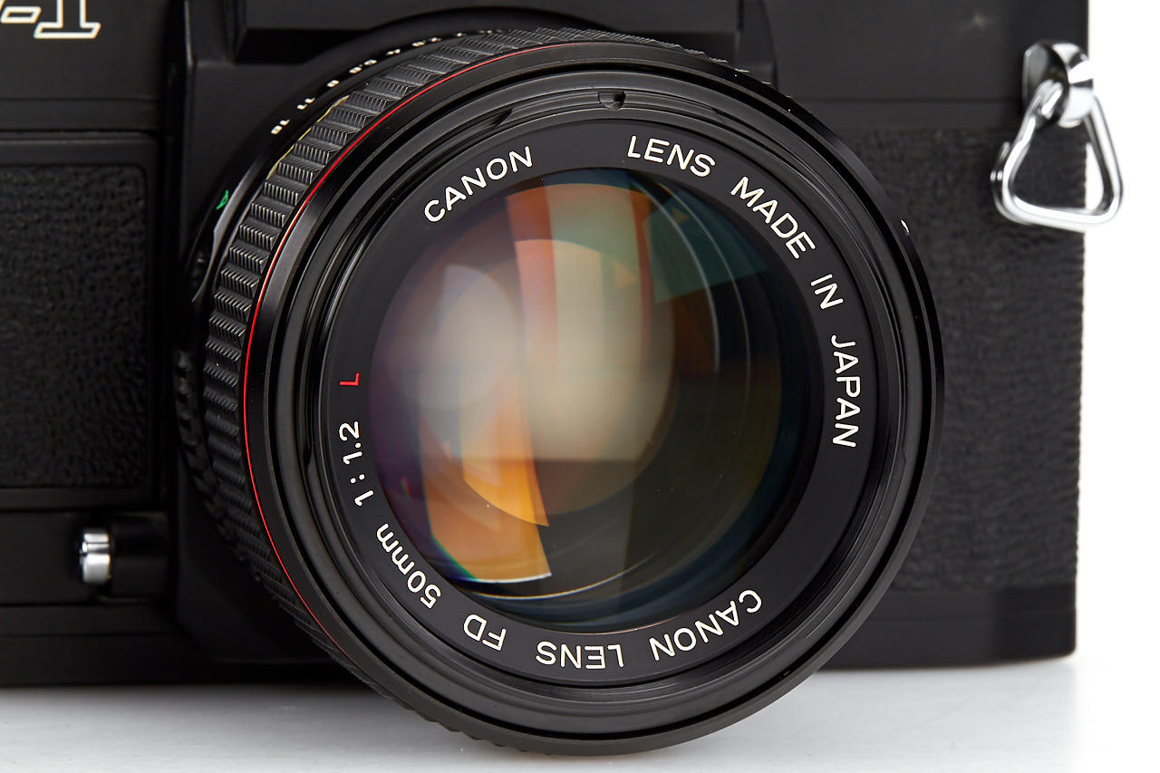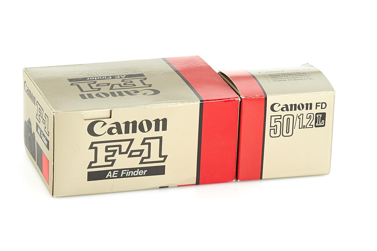 body in excellent condition, with cap, strap and maker's box, fast Canon FD L 1.2/50mm no.22054 (cond. B/A, good optics, instructions, caps, maker's box