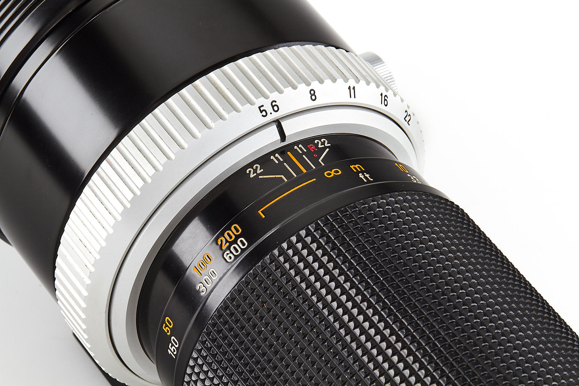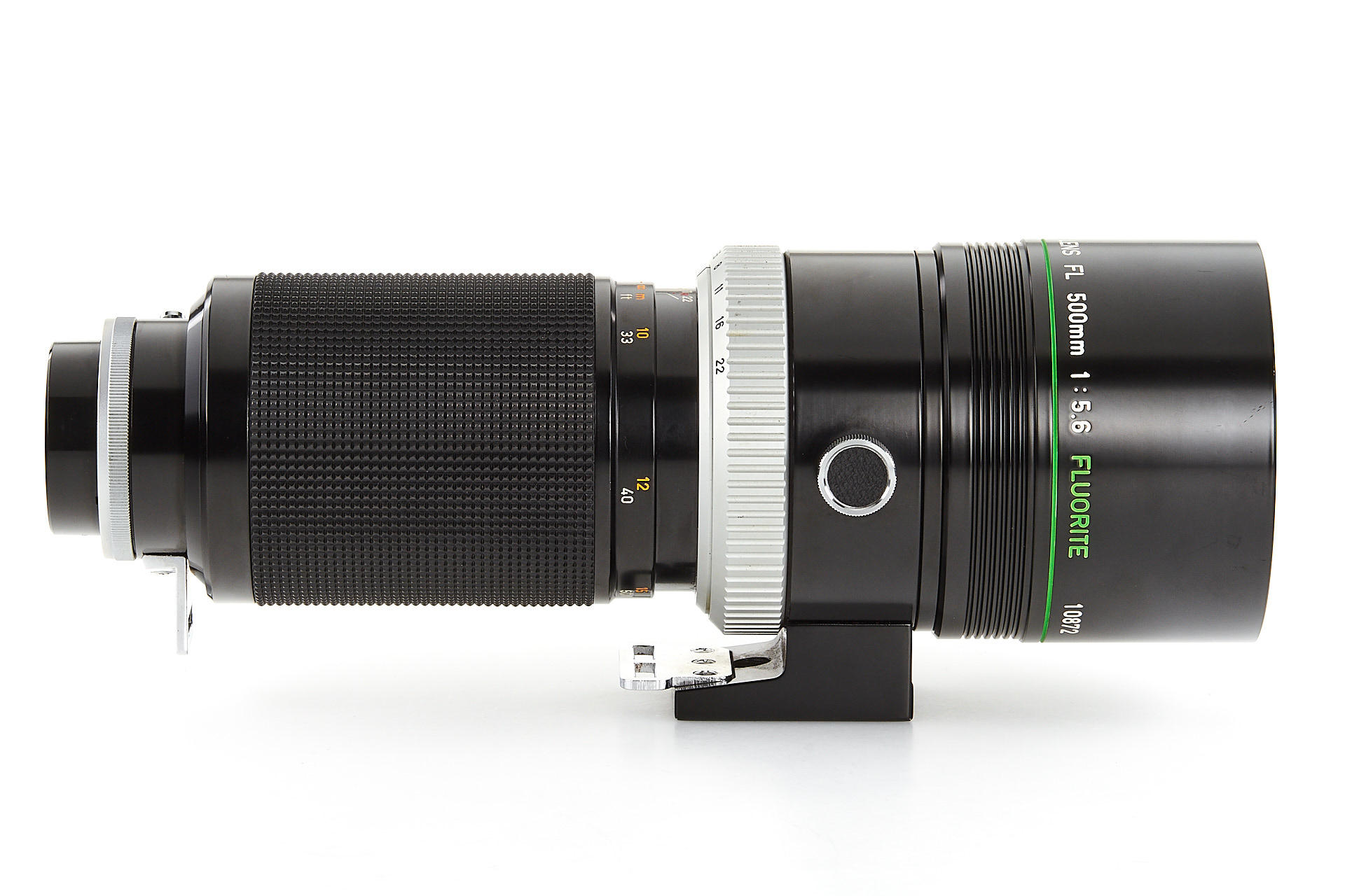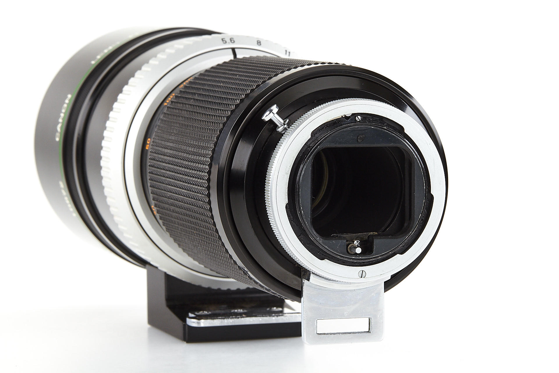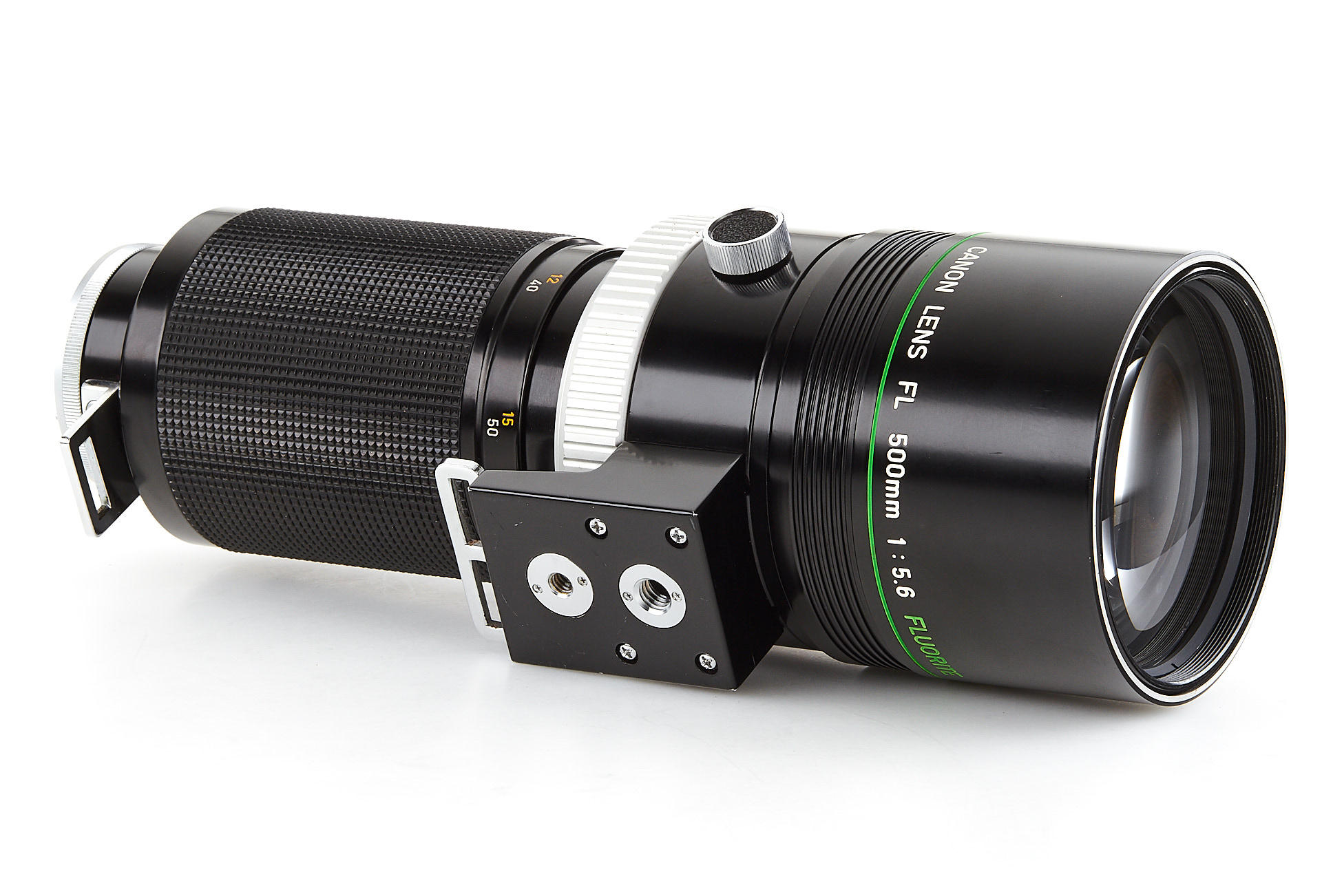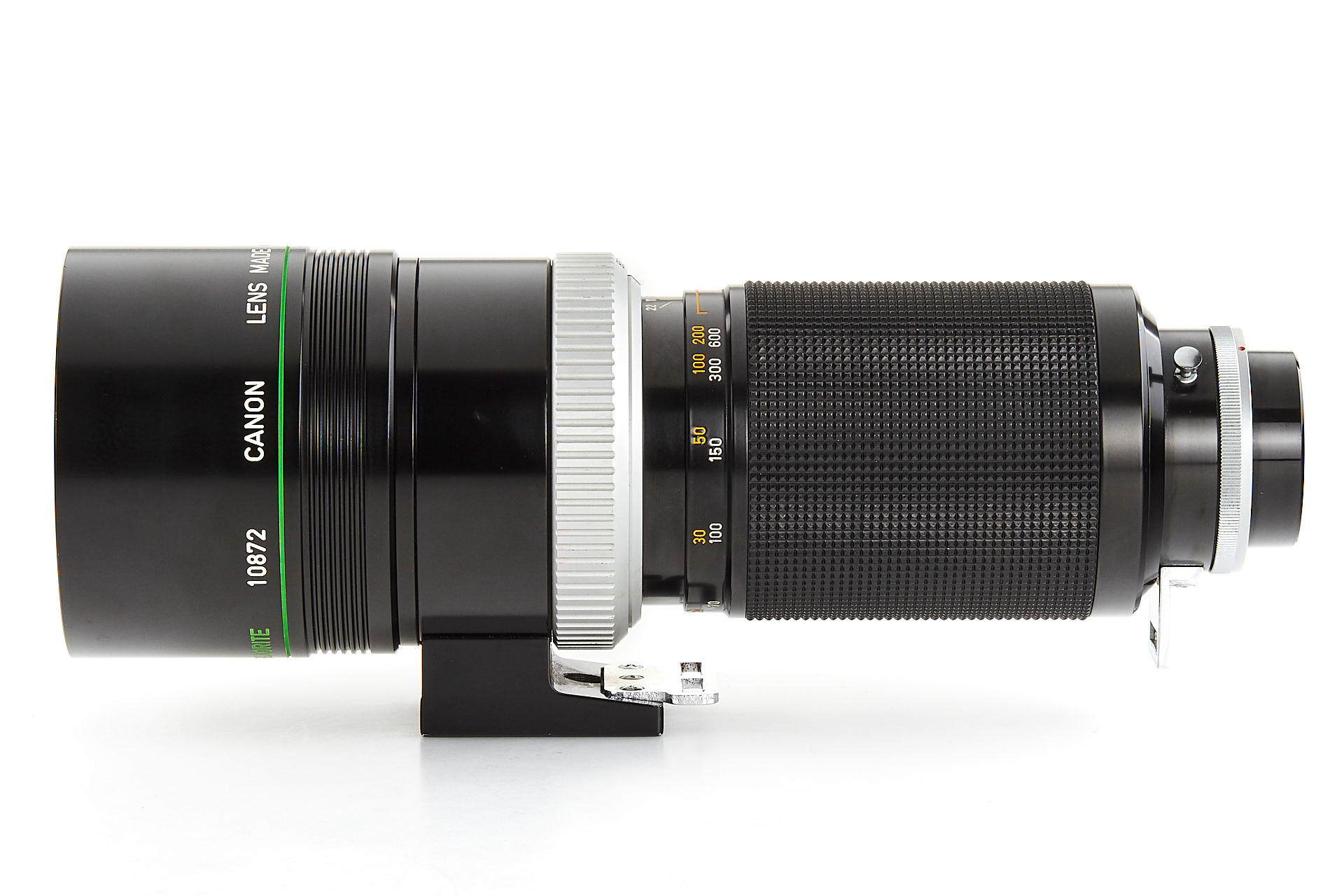 rare telephoto lens for Canon FL, with Fluorite optical element, in near mint condition, clean optics, with both caps, two filters, in original carrying case