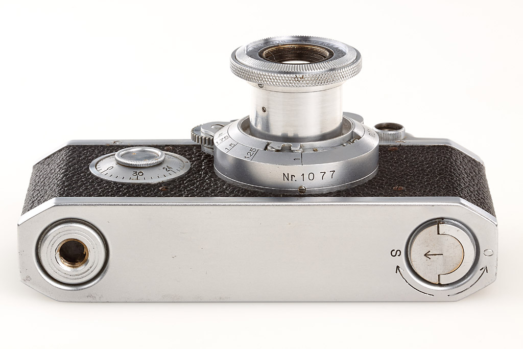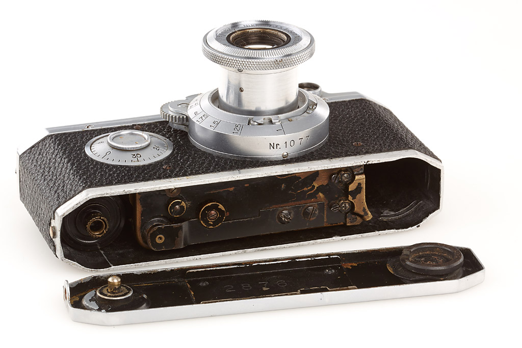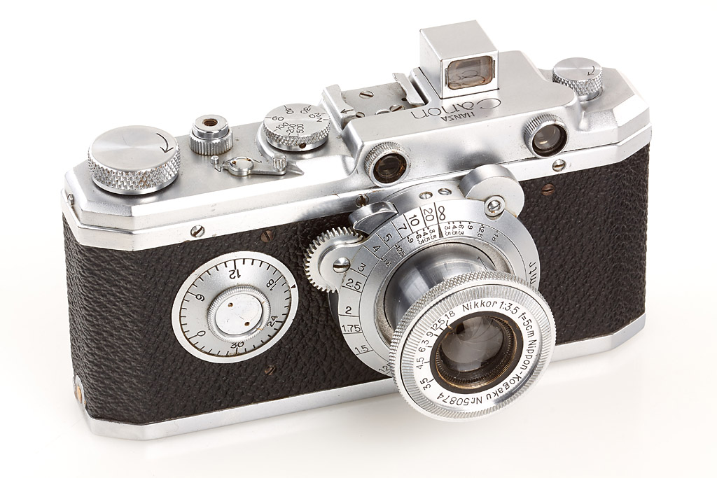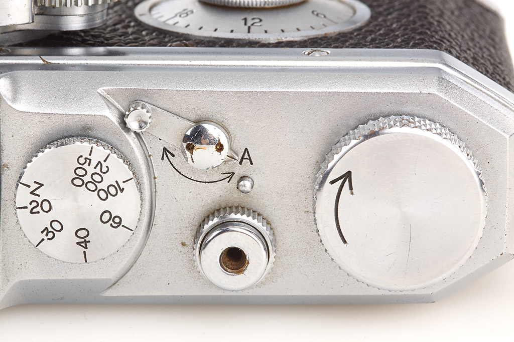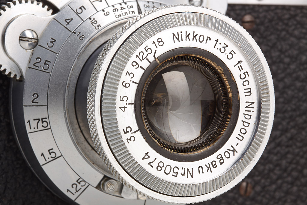 in very fine condition and good working order, chrome-face Nikkor 3.5/5cm no.50874 (yellow filter), black leather covering replaced, base plate inside engraved 2876, original everready case