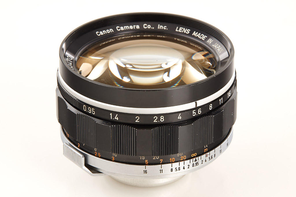 very fast standard lens for Canon 7 in near mint condition with clear lenses (a few small cleaning marks), both caps, Canon leather case