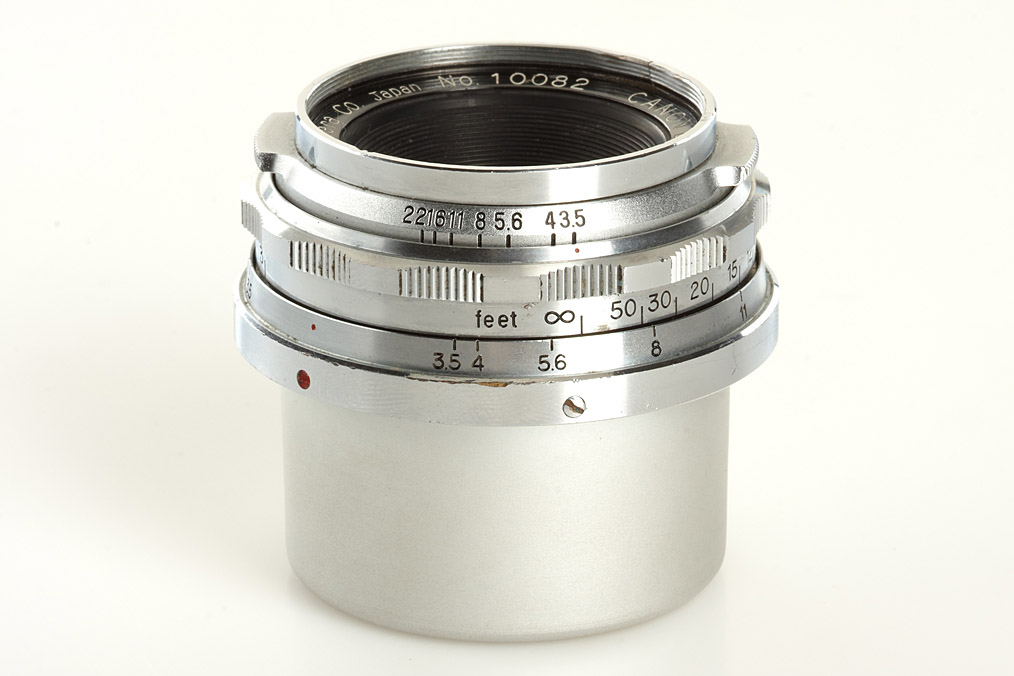 extremely rare Canon lens in original Contax (Nikon) mount in fine condition with rear cap and Nikon front cap