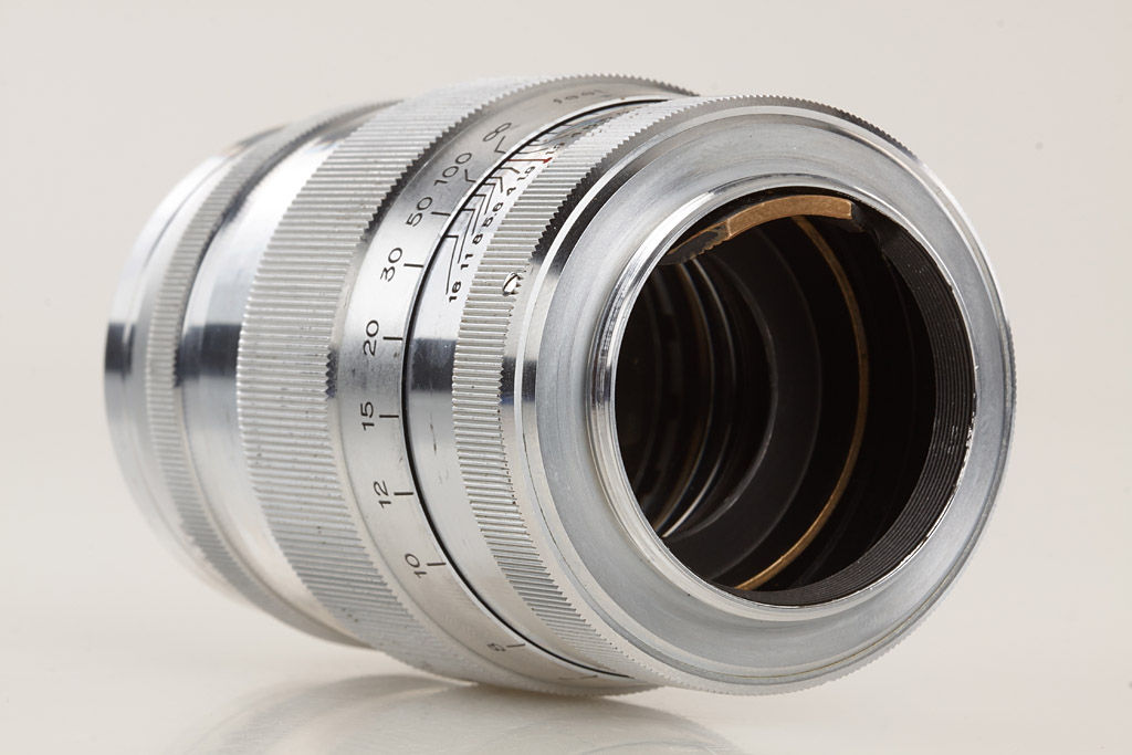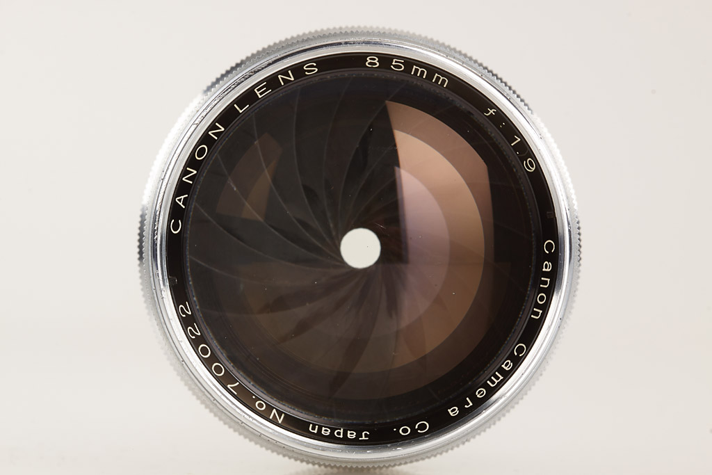two RF coupled M39 Canon Lenses, (1) 1.2/50mm no.22988 with some cleaning marks (cap), (2) 1.9/85mm no.70022 with some cleaning marks (cap)