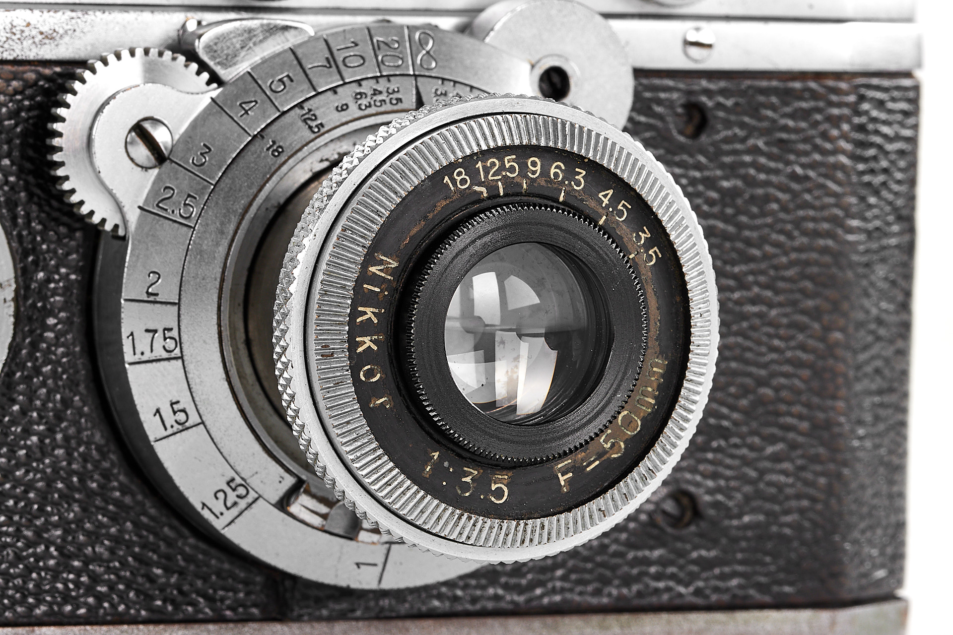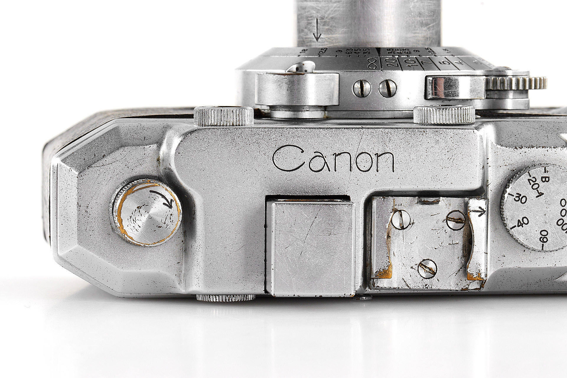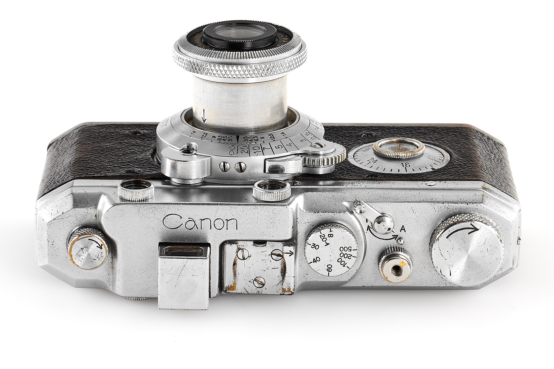 Rare variation of the Canon Hansa, without the 'Hansa' name engraved on the top plate, these uncommon cameras were sold directly from the factory, unlike the more common 'Hansa' - engraved version distributed by Omiya Photo Supply Co., the offered camera is in fine, original condition, lens mount number is 2492, the base plate is unnumbered. Included is an early, black-face Nikkor 3.5/50mm.