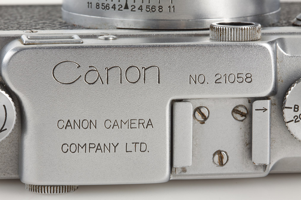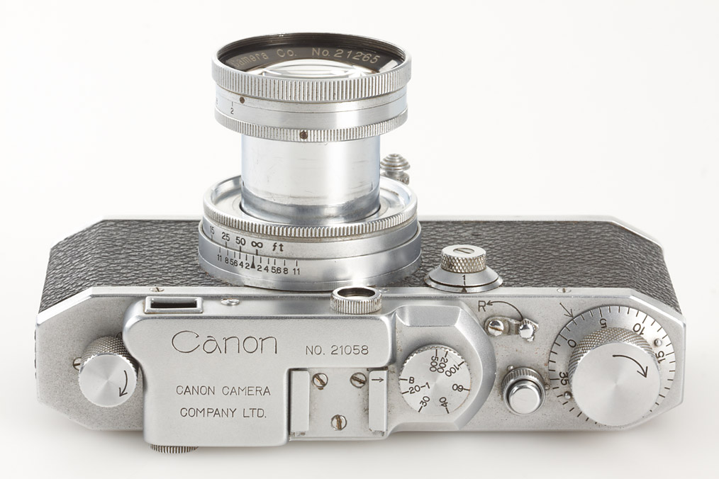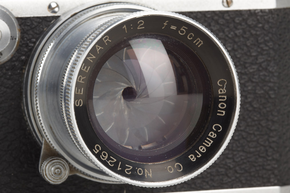 early Canon in very fine condition and in good working order, collapsible Serenar 2/5cm no.21265, base plate engraved 'MADE IN OCCUPIED JAPAN'