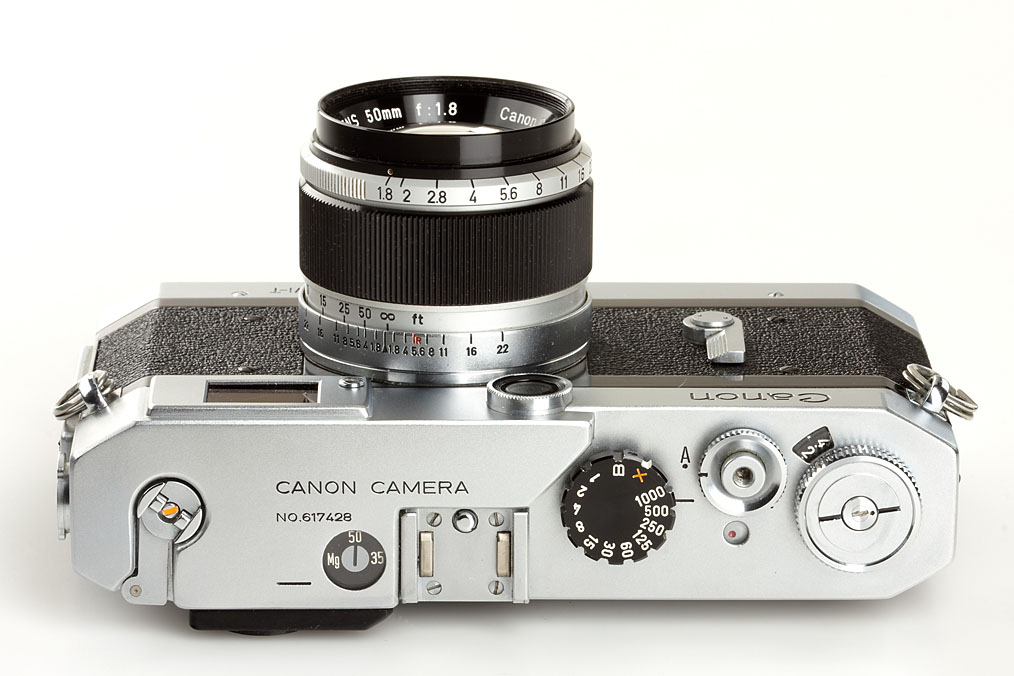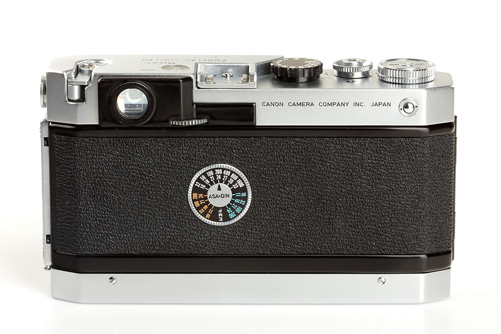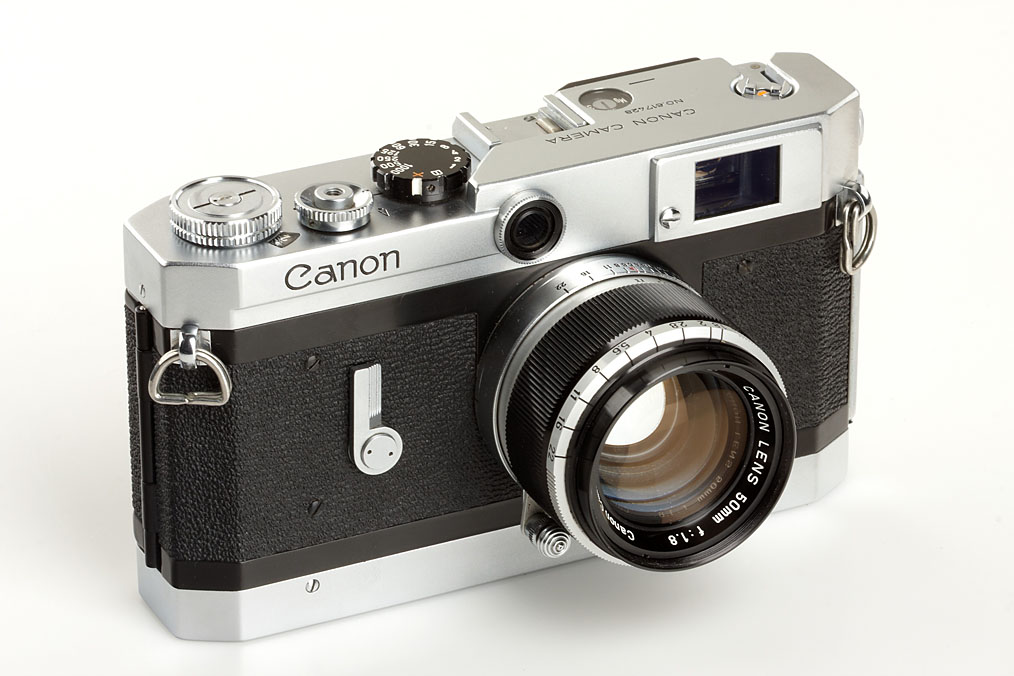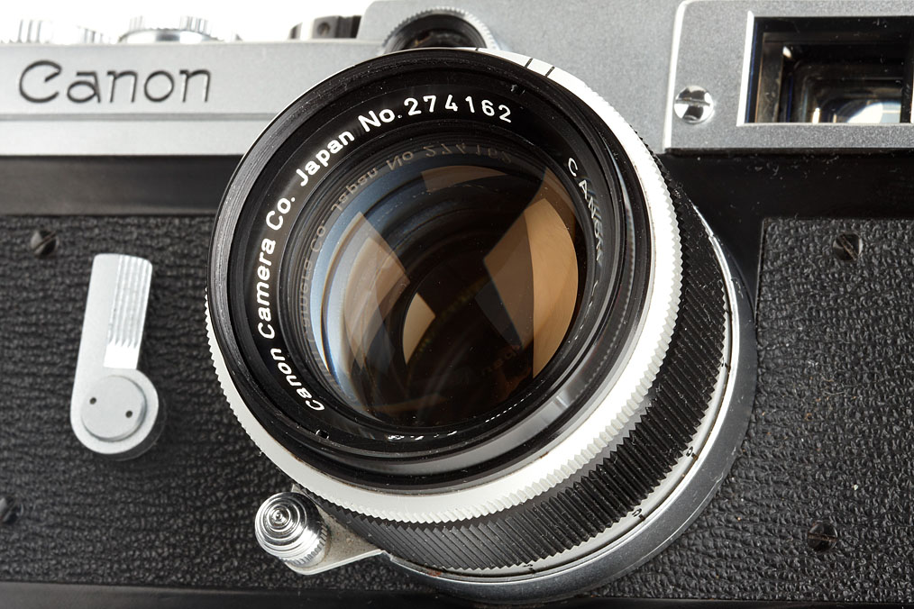 camera in mint condition (only the base plate has some signs of wear), in perfect working order, with matching Canon Lens 1.8/50mm no.274162, cap, maker's box with both matching numbers, original ever-ready case, chrome Canon-Meter (not working) with case, and the more rare outfit maker's box