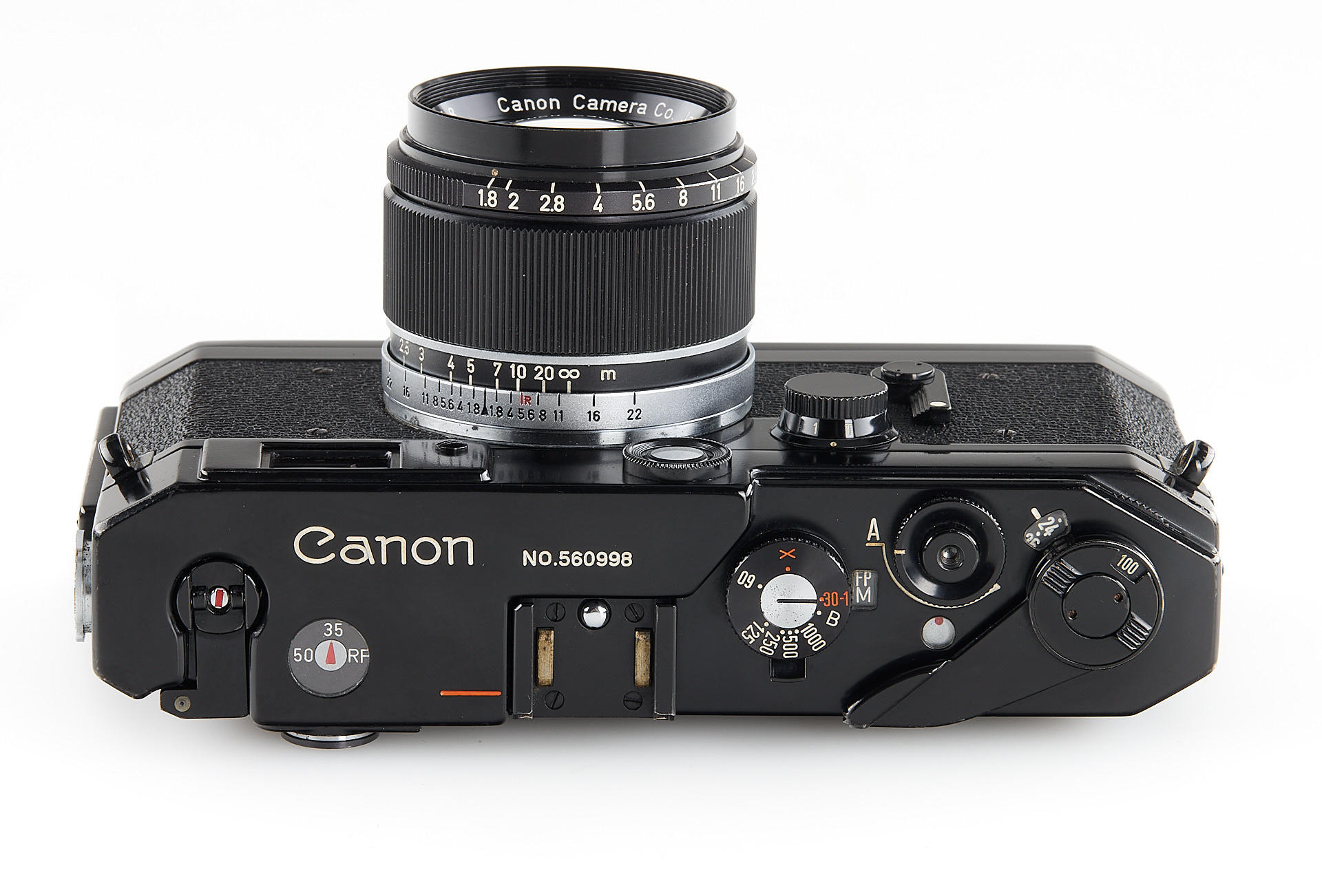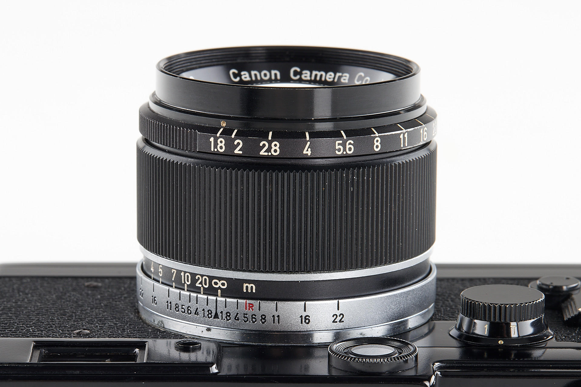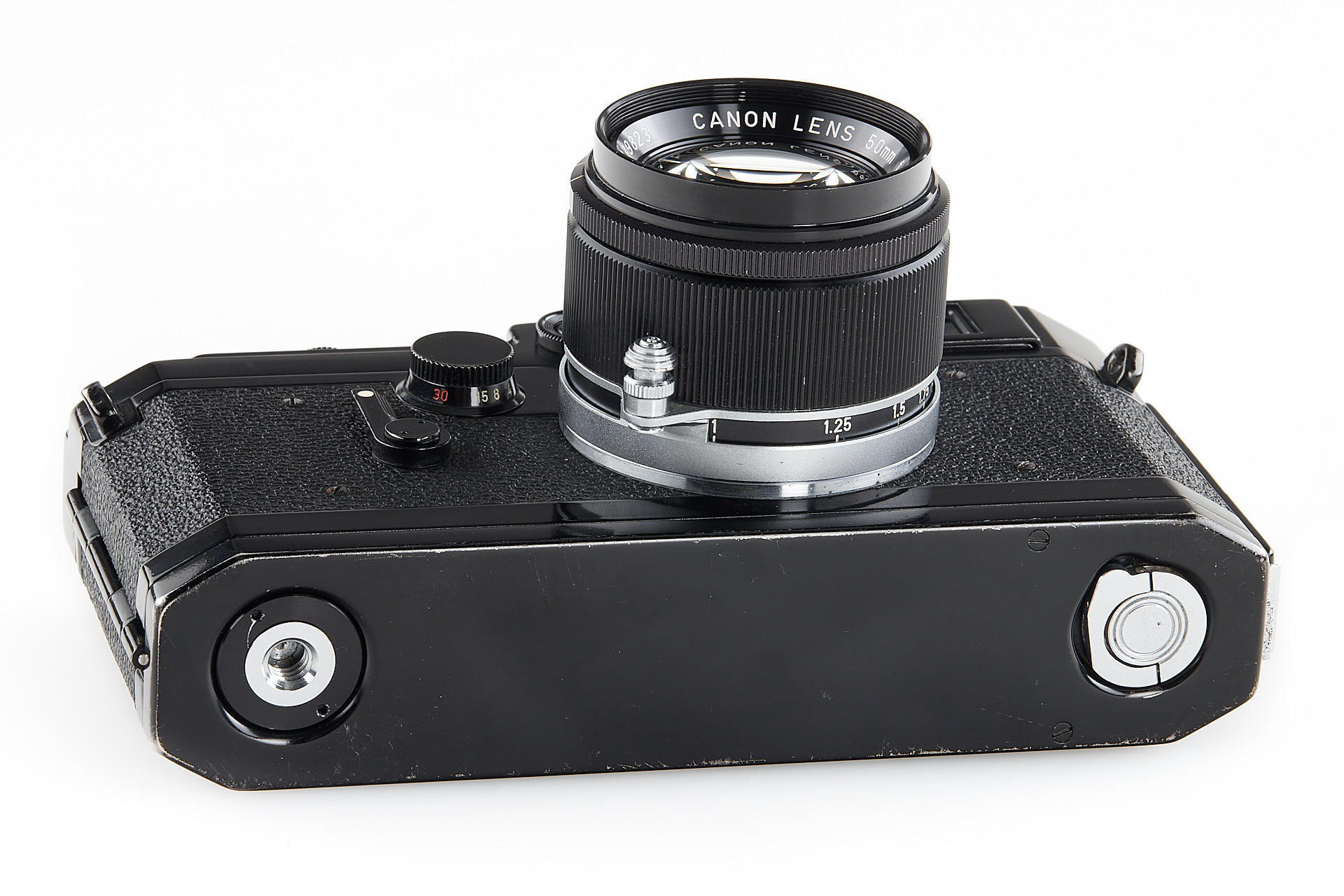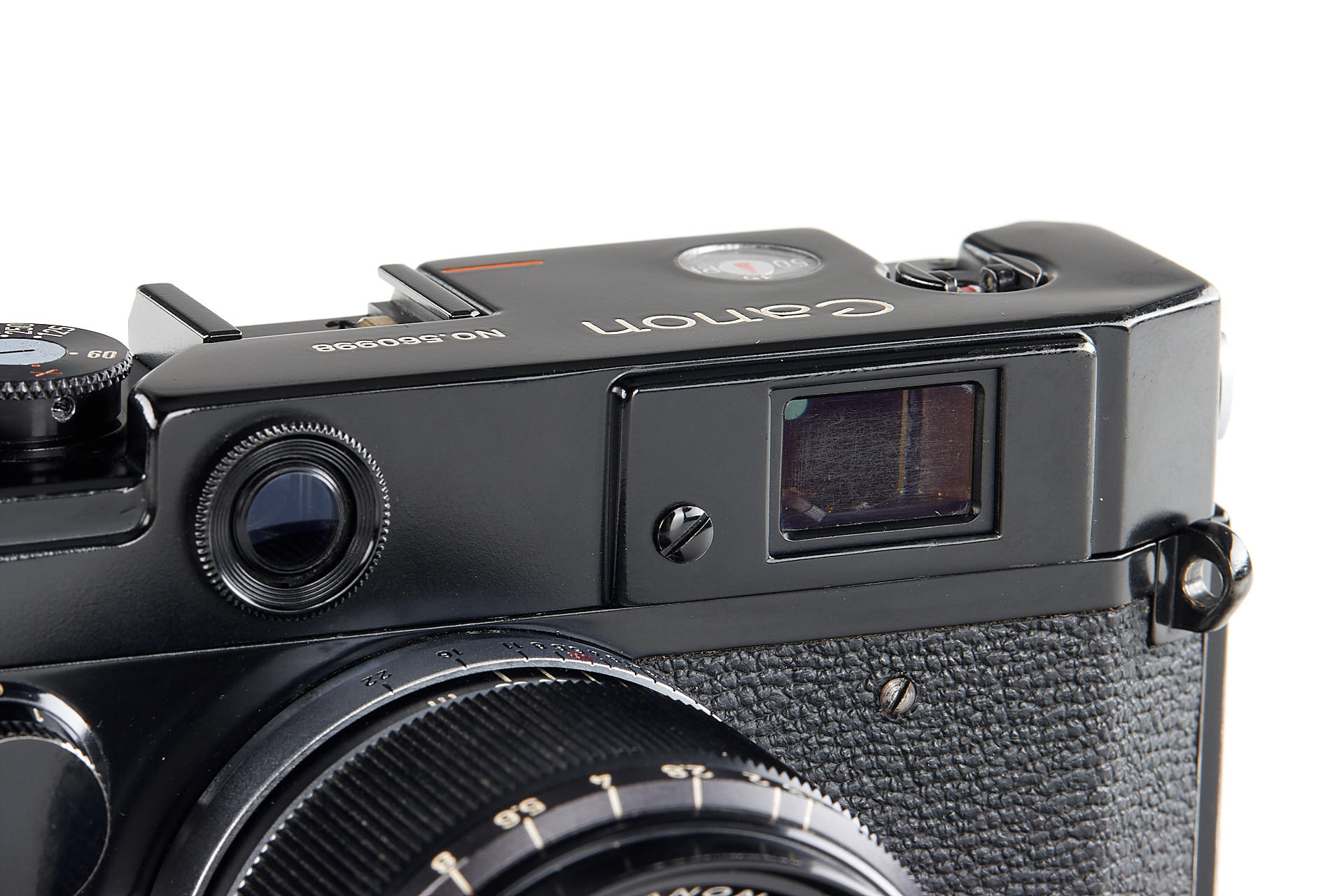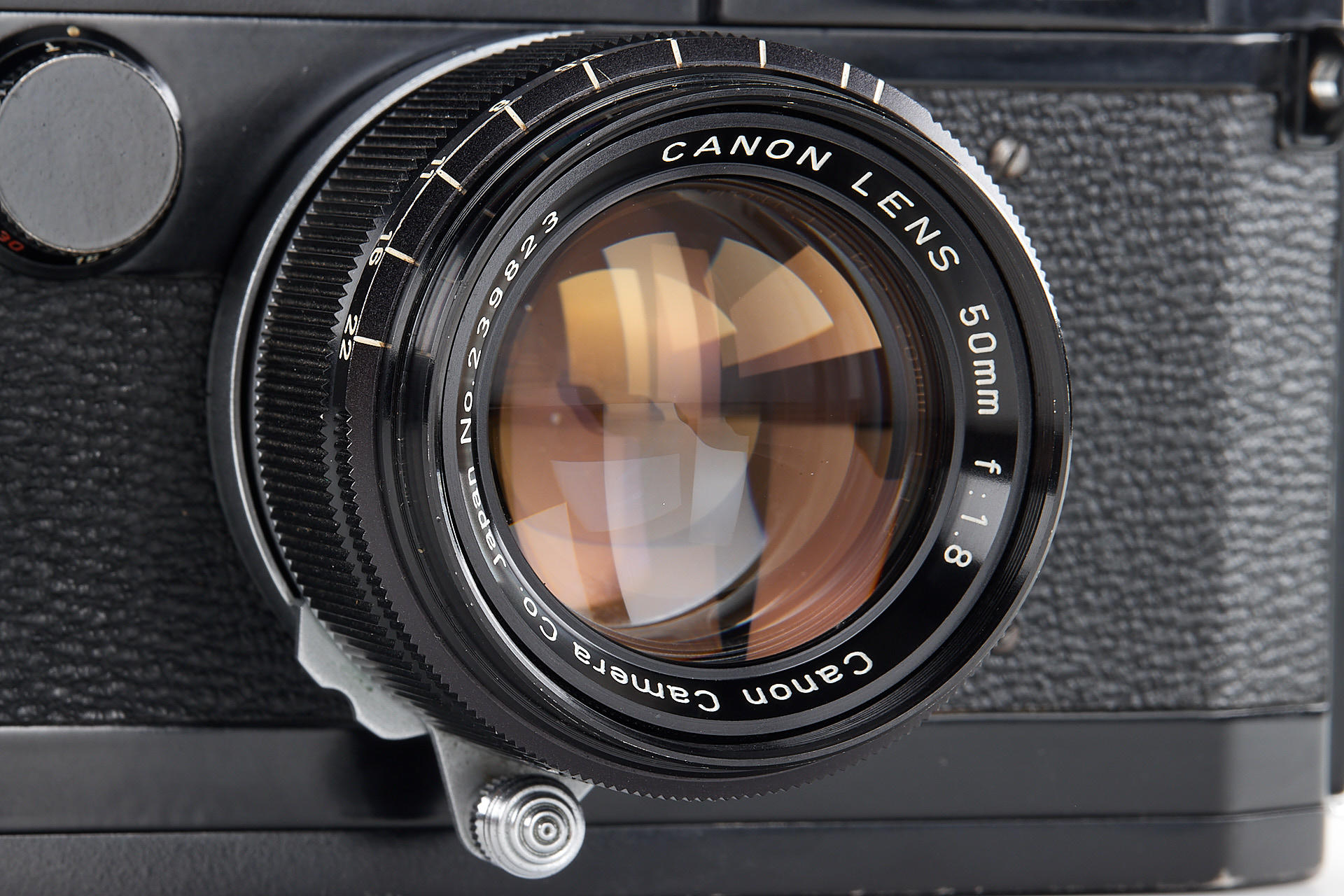 very rare Canon VL in black paint finish, in beautiful condition (only minimal signs of wear) and good working order, with matching Canon 2.8/50mm no.239823 (uncommon version with black aperture ring, lens cap)