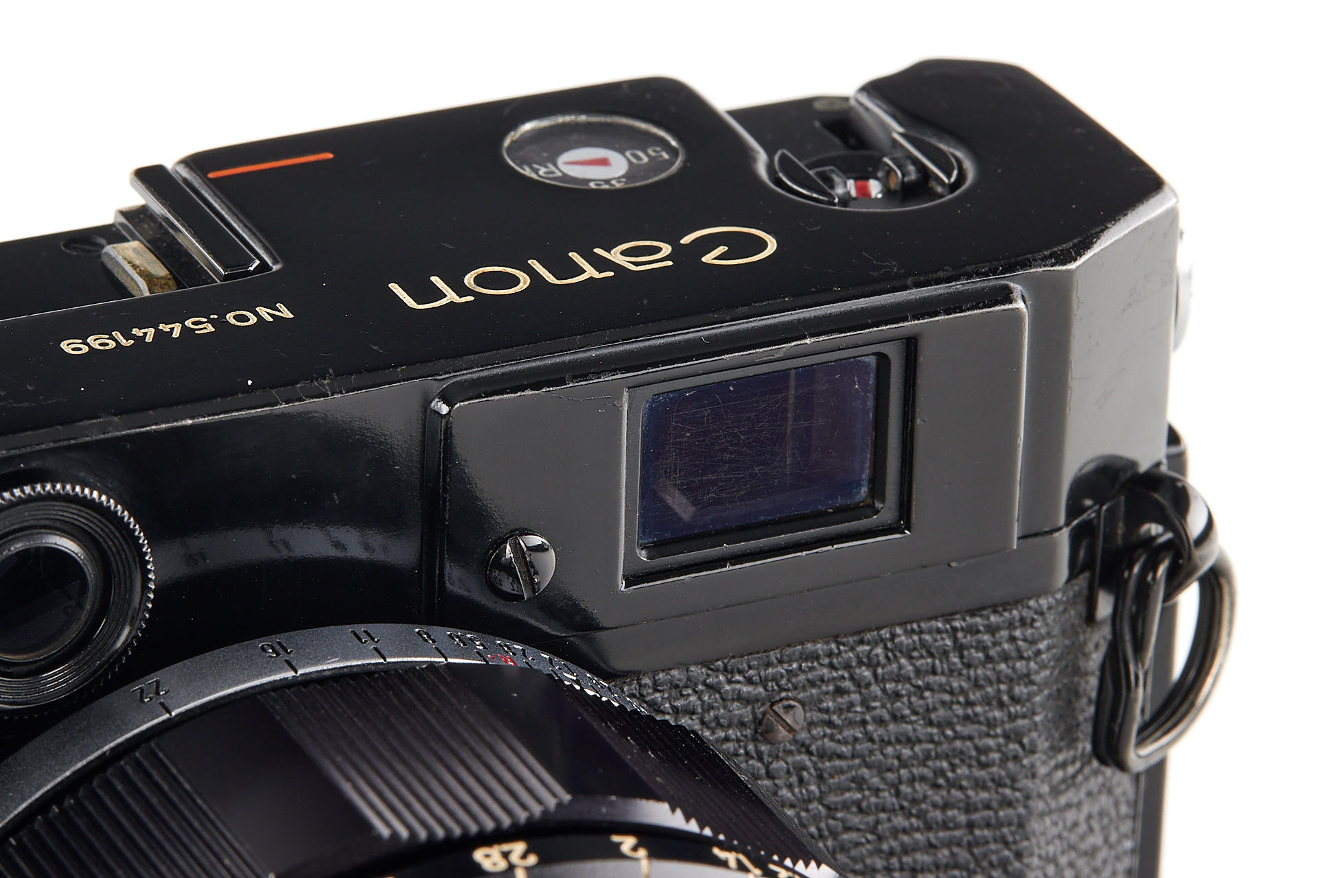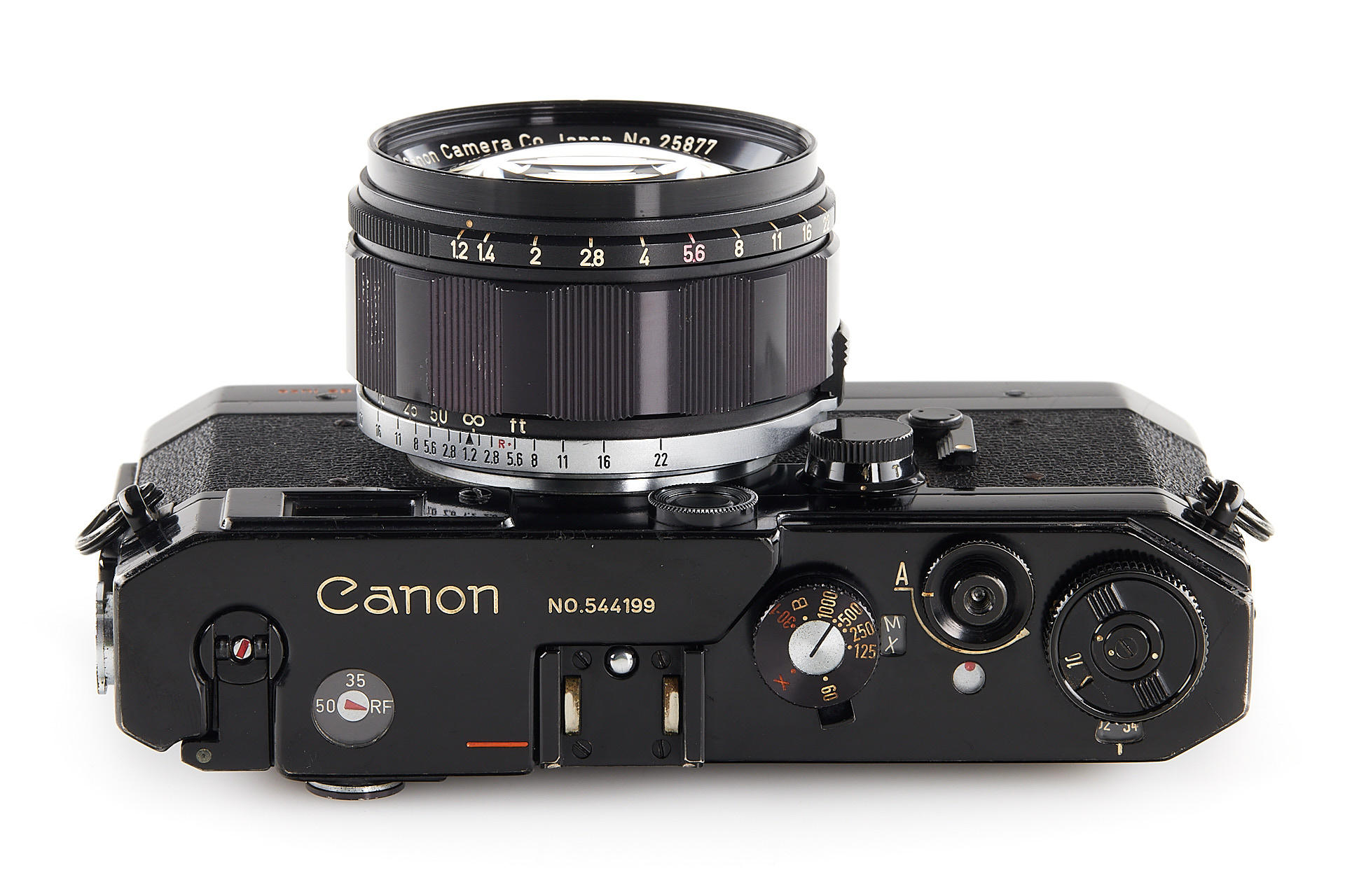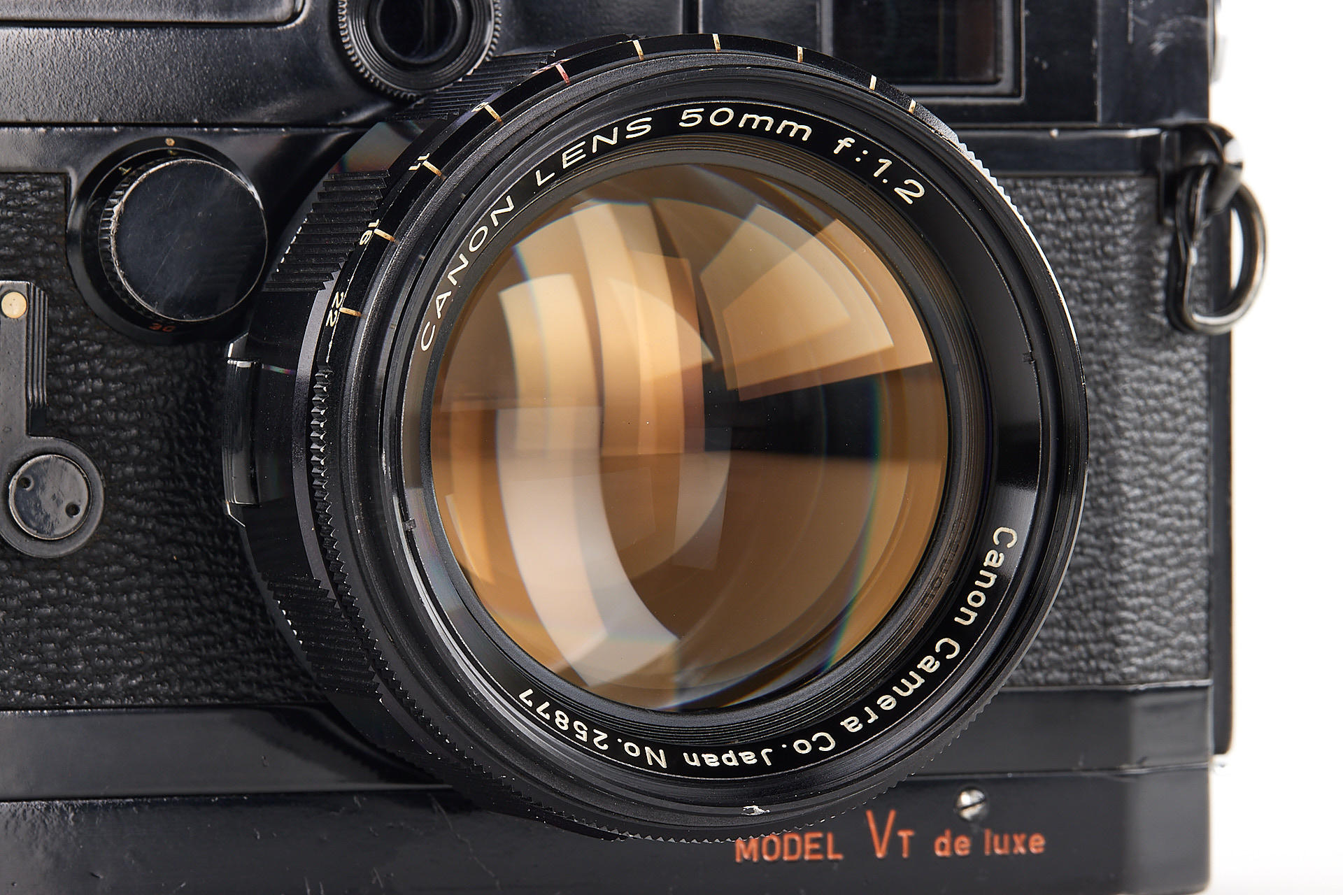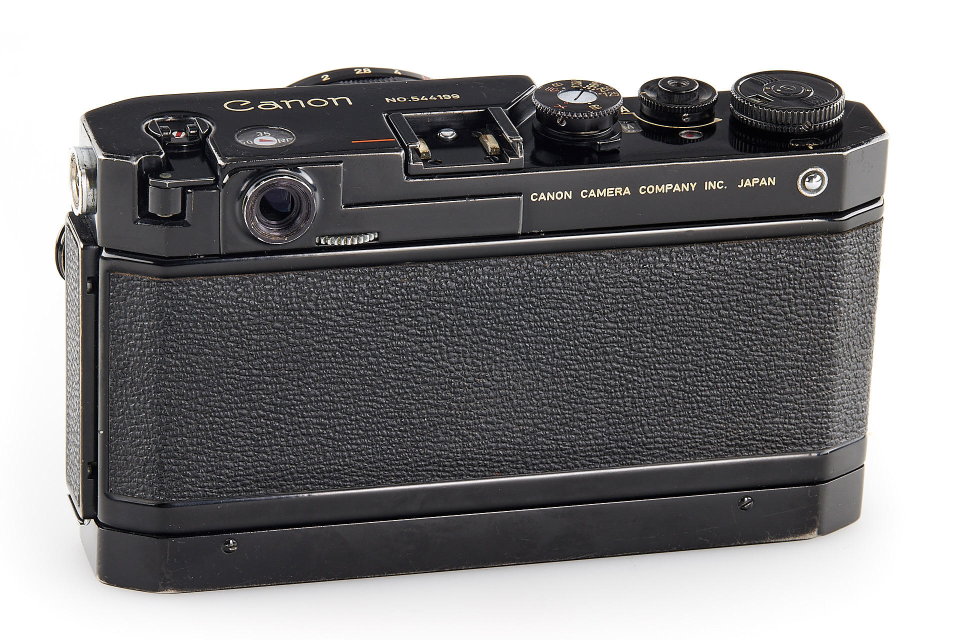 Very rare original black paint body in very good condition and working order, first version with cloth shutter curtains and no baseplate opening key, with rare all-black 1.2/50mm no.25877 (perfect optics), with front cap