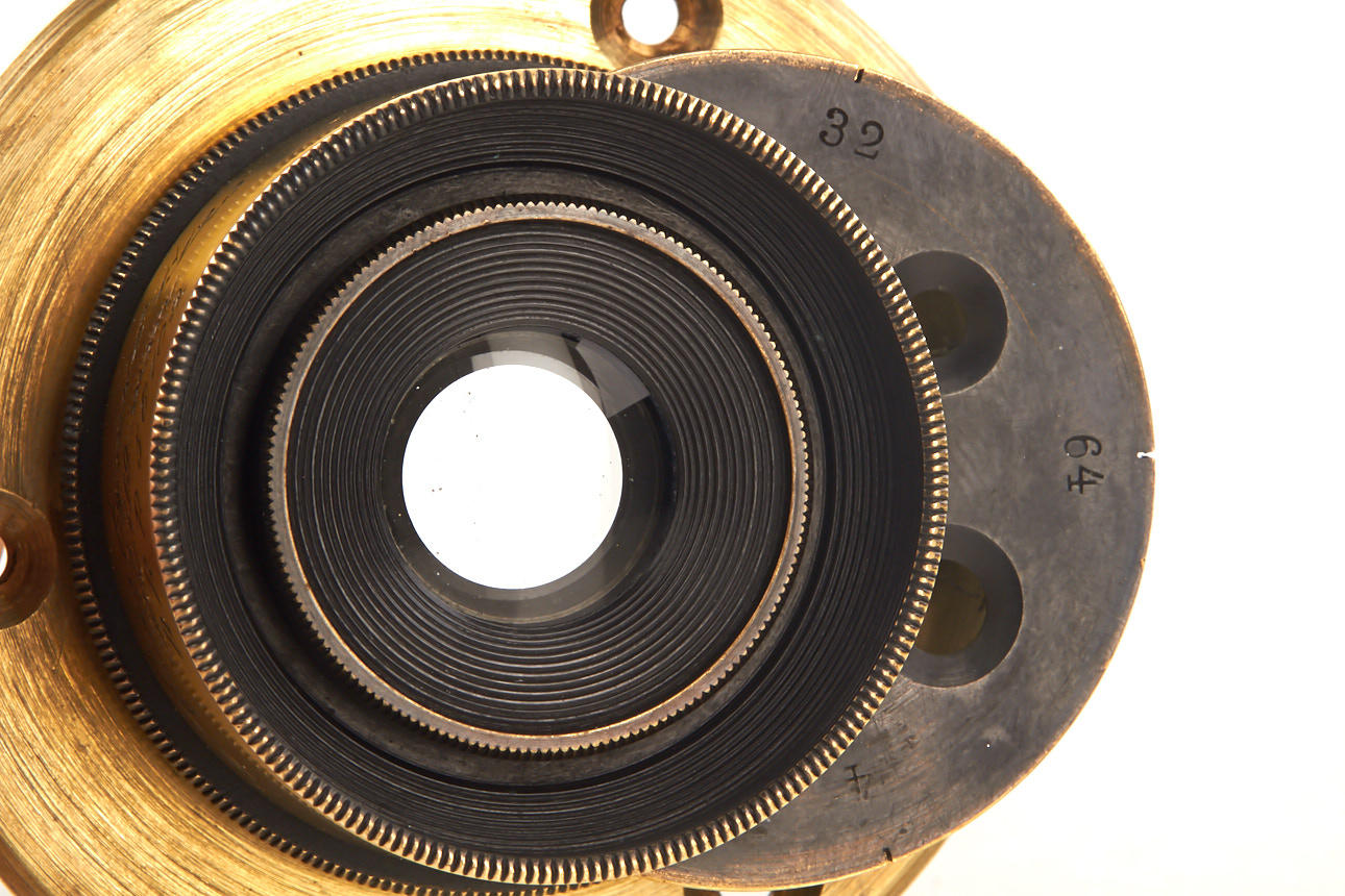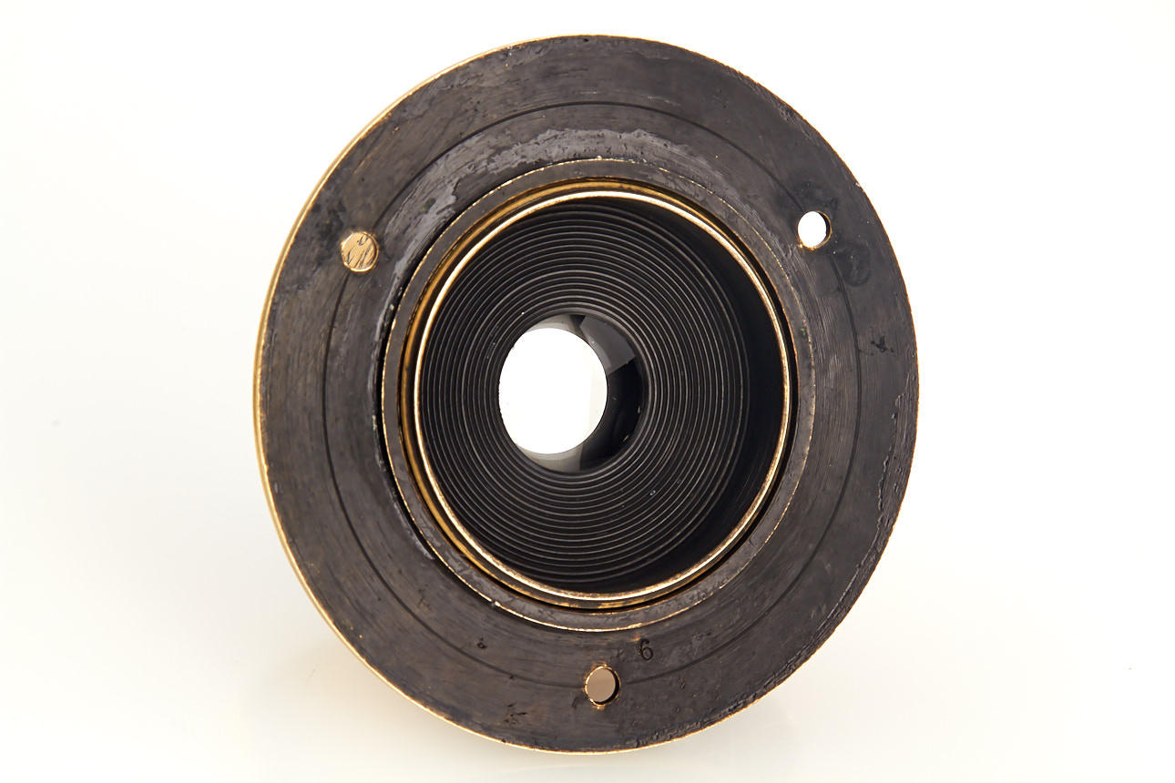 very early and rare Zeiss lens, with rotating diaphragm disc, c.21mm high, beautiful condition, original mounting ring engraved with the same serial number