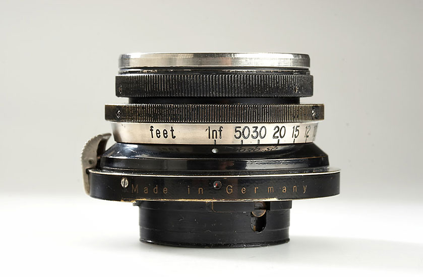 for Contax, extremely rare lens, black/nickel version, in feet, engraved "Made in Germany", very clean lenses (coated), cap, black/nickel 4cm finder 432/4 (cond.C)