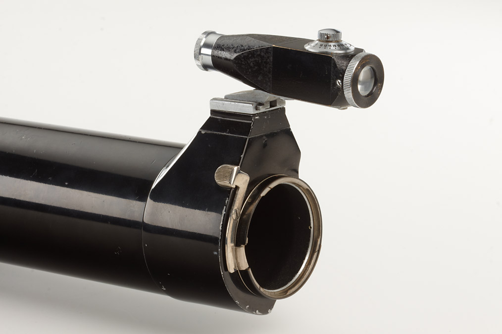 very rare black/nickel 50cm tele-lens in Contax direct mount, in very good original condition with clean lenses, matching very rare finder 436/13 with parallax adjustment, cap and original hood - lens no.3 from the very first batch (1519601-1519650)