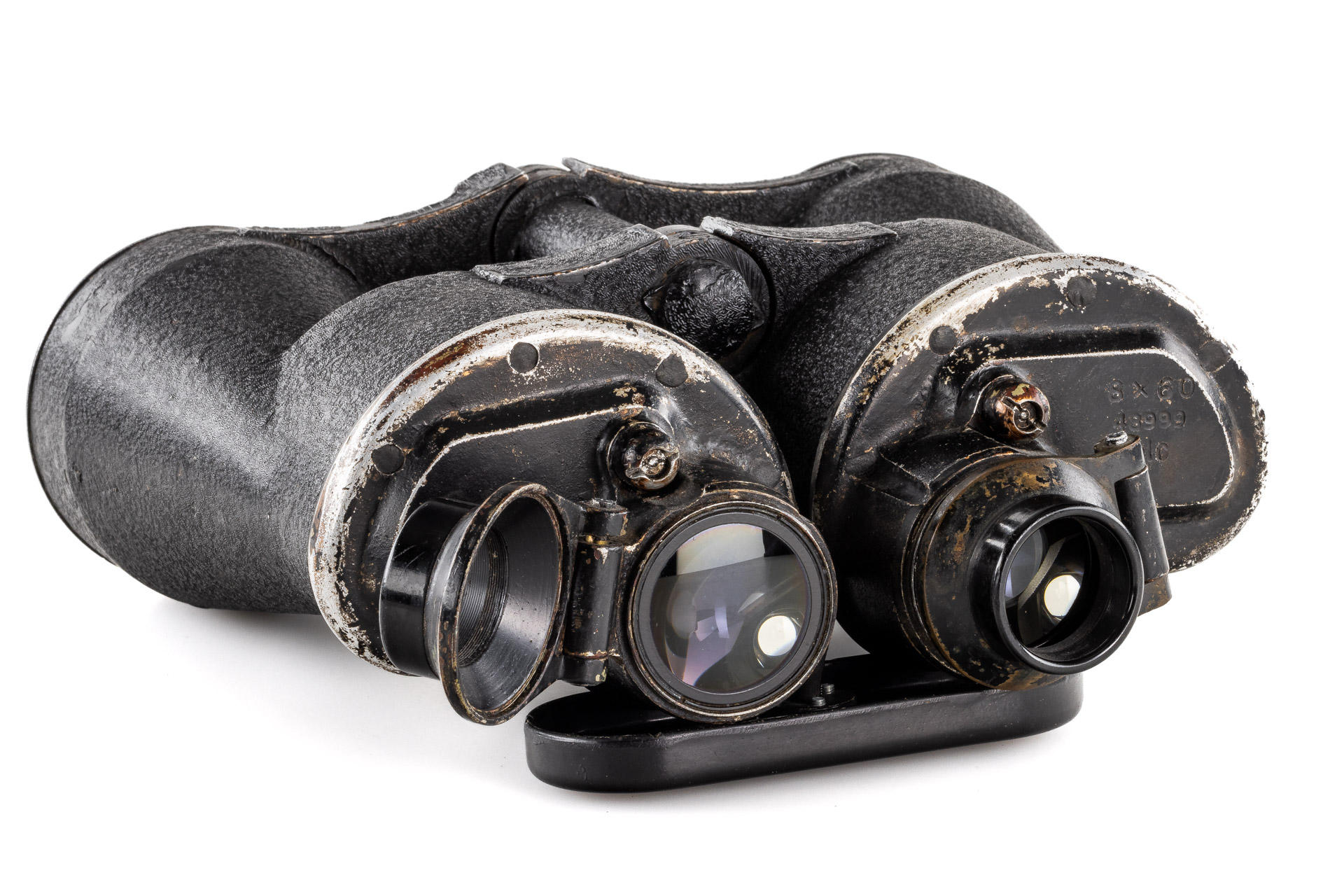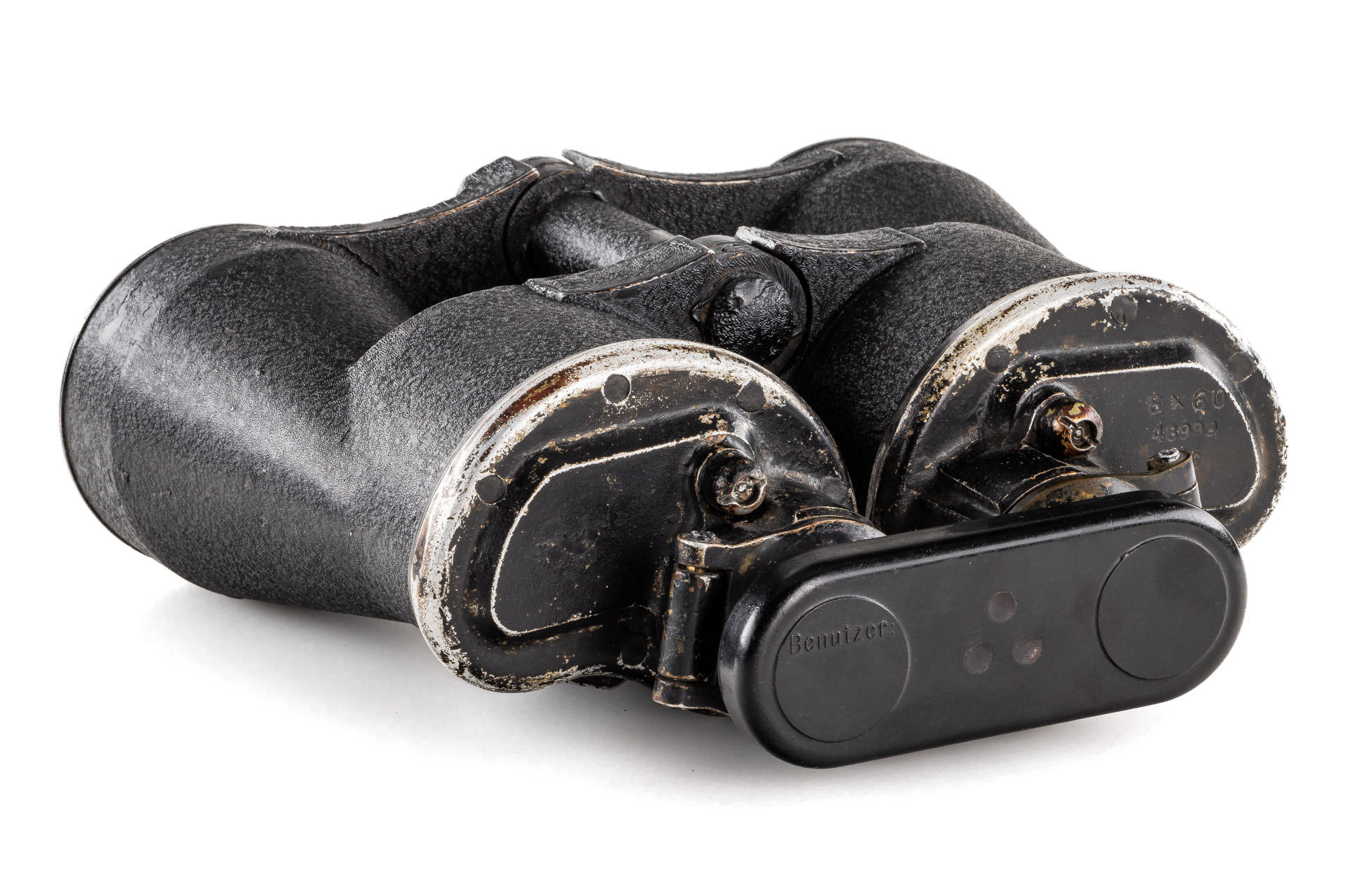High quality military Kommandantenglas U-Boot binoculars, water-proof construction used during the WWII on German submarines, very early model in good condition made by Carl Zeiss (code: blc), good lenses only showing minimal cleaning marks, screw-in desiccant cartridges, rear covers and hinged eyecups are intact
