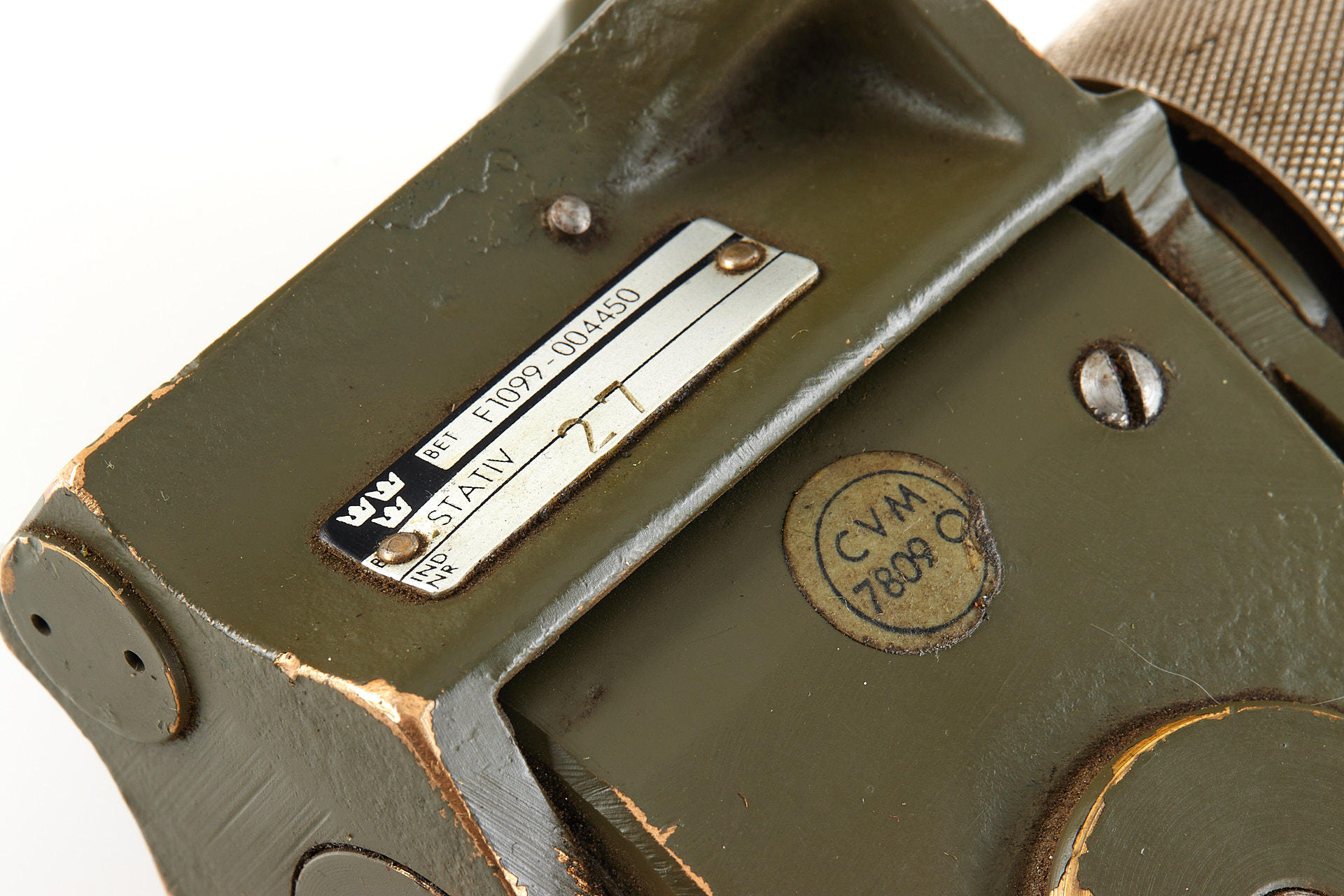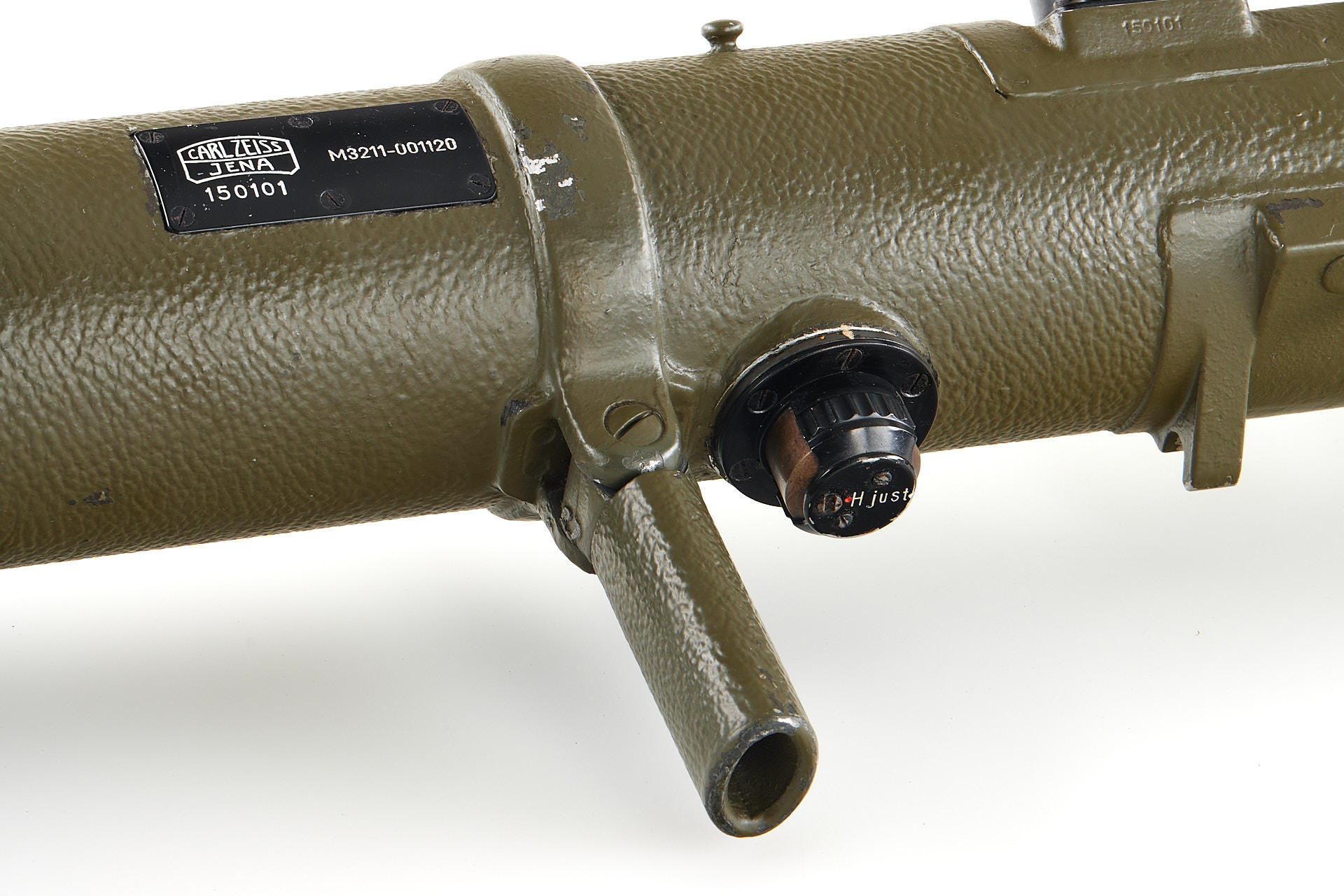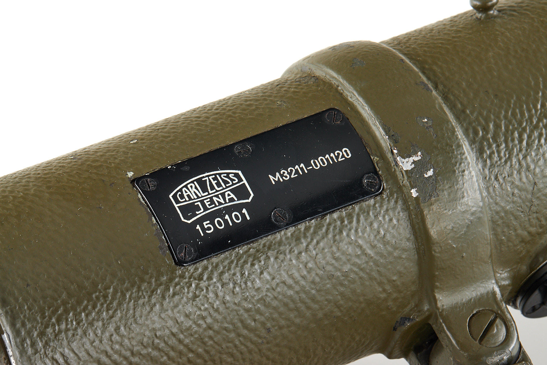 A long-range military rangefinder, made by Carl Zeiss Jena for the Swedish military and delivered shortly before the WWII, 0.7m rangefinder base with 11x enlarging, in excellent original condition and good working order, incl. small tripod, adjusting level, orange filters, everything in a large military-green aluminium case stamped with three crowns