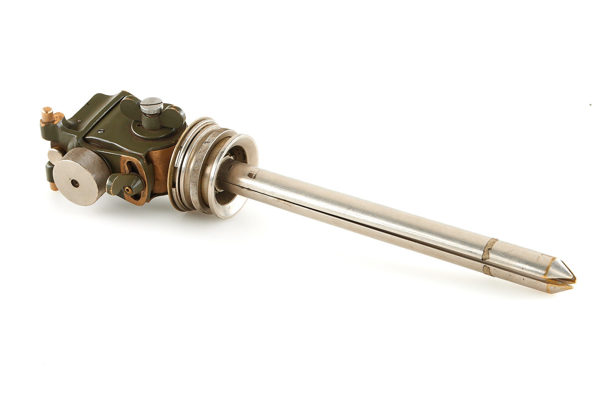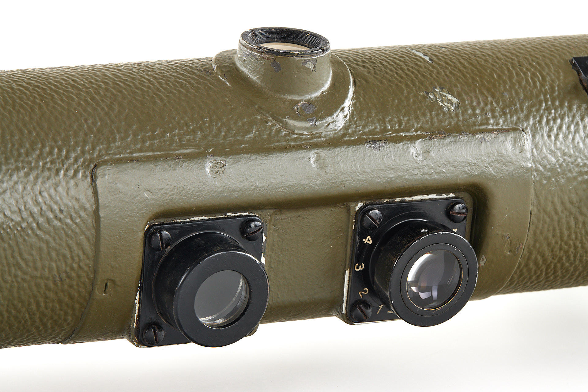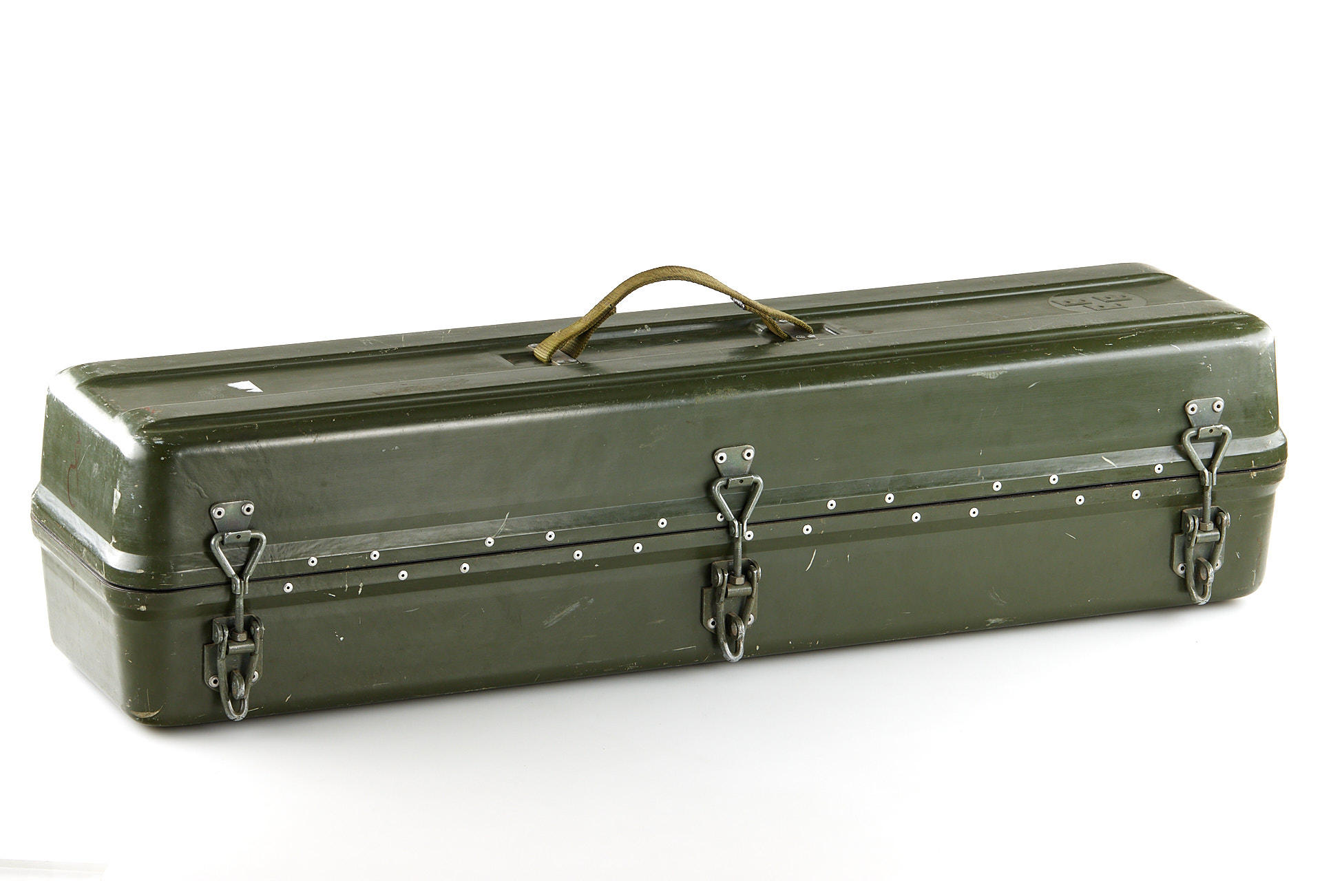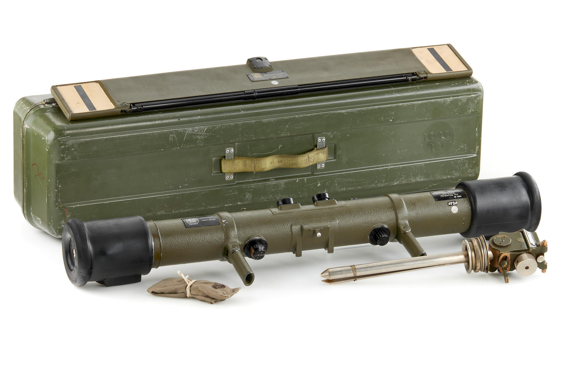 A long-range military rangefinder, made by Carl Zeiss Jena for the Swedish military and delivered shortly before the WWII, 0.7m rangefinder base with 11x enlarging, in excellent original condition and good working order, incl. small tripod, adjusting level, orange filters, everything in a large military-green aluminium case stamped with three crowns