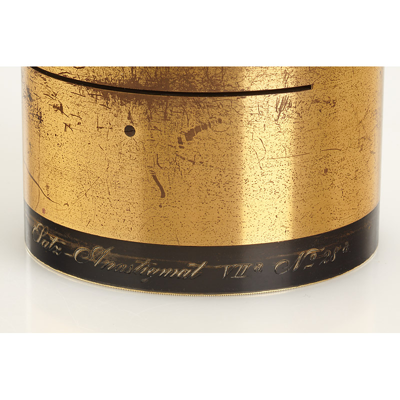 extremely rare land-scape casket lens in fine condition, according to Thiele this lens was finished on November 1st, 1896 and should have a focal length of 656mm, in fact it is approx. 90cm, total height of the lens: 11.5cm, lens diameter: 8cm (caps)