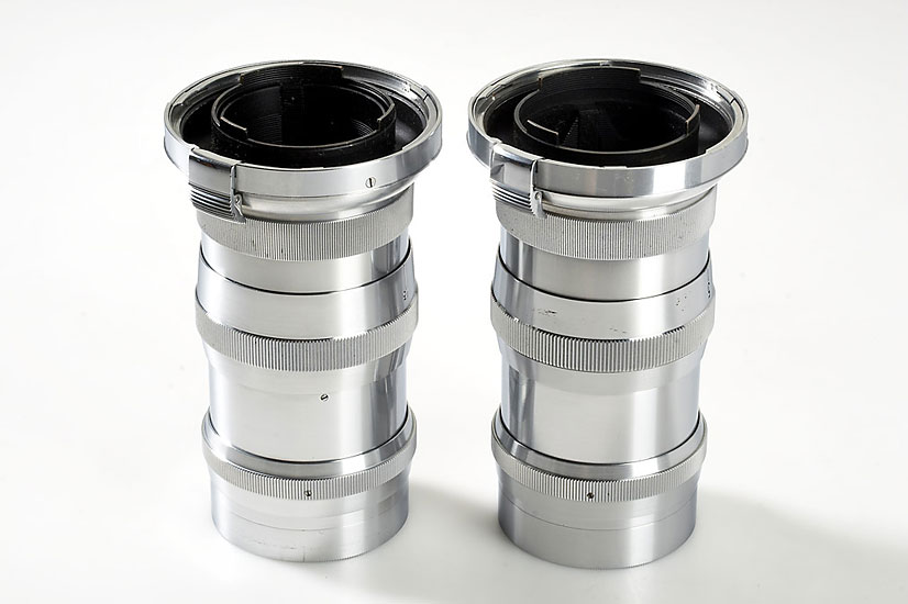 early chrome Sonnar 4/13.5cm no.1505238 (in feet, condition B+), chrome Sonnar 4/13.5cm no.2071716 (in meter, condition B+) (2)