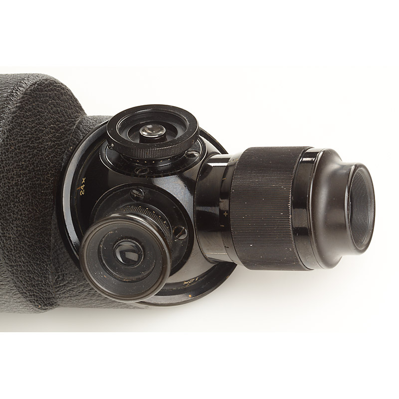 tourist telescope 'Starmor' (produced from about 1910 until the 2nd World War) with ocular revolver with 12x, 24x and 42x magnifications, leather covered aluminium body, tripod mount, leather keeper, weight is c.1,5kg, in very good original condition