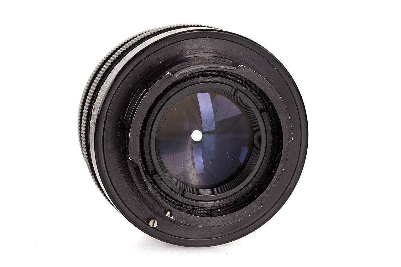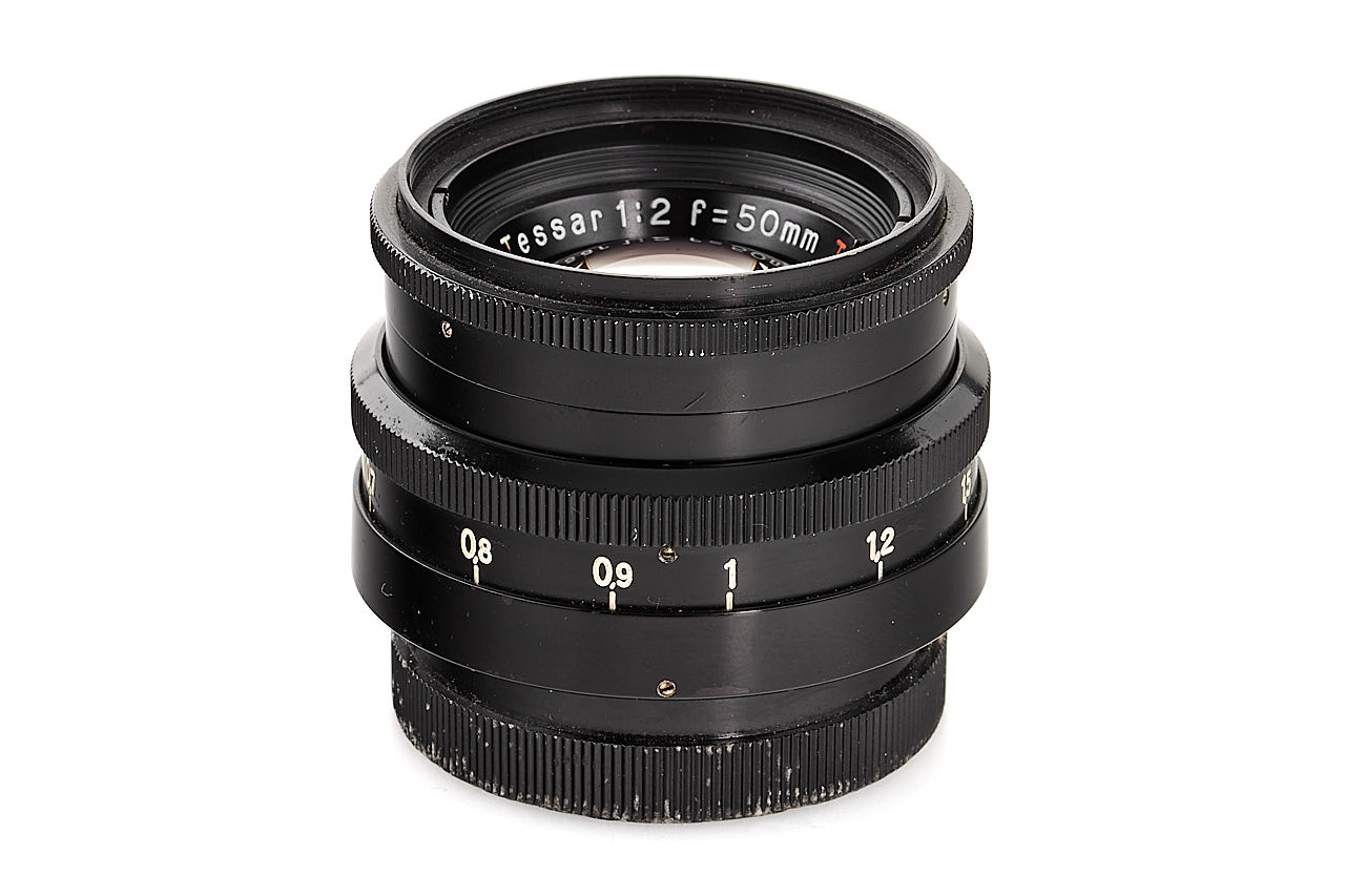 50mm Tessar lens in Exakta mount, black paint finish, with a special prototype serial number ending with V-63-1, in excellent condition, good optics.