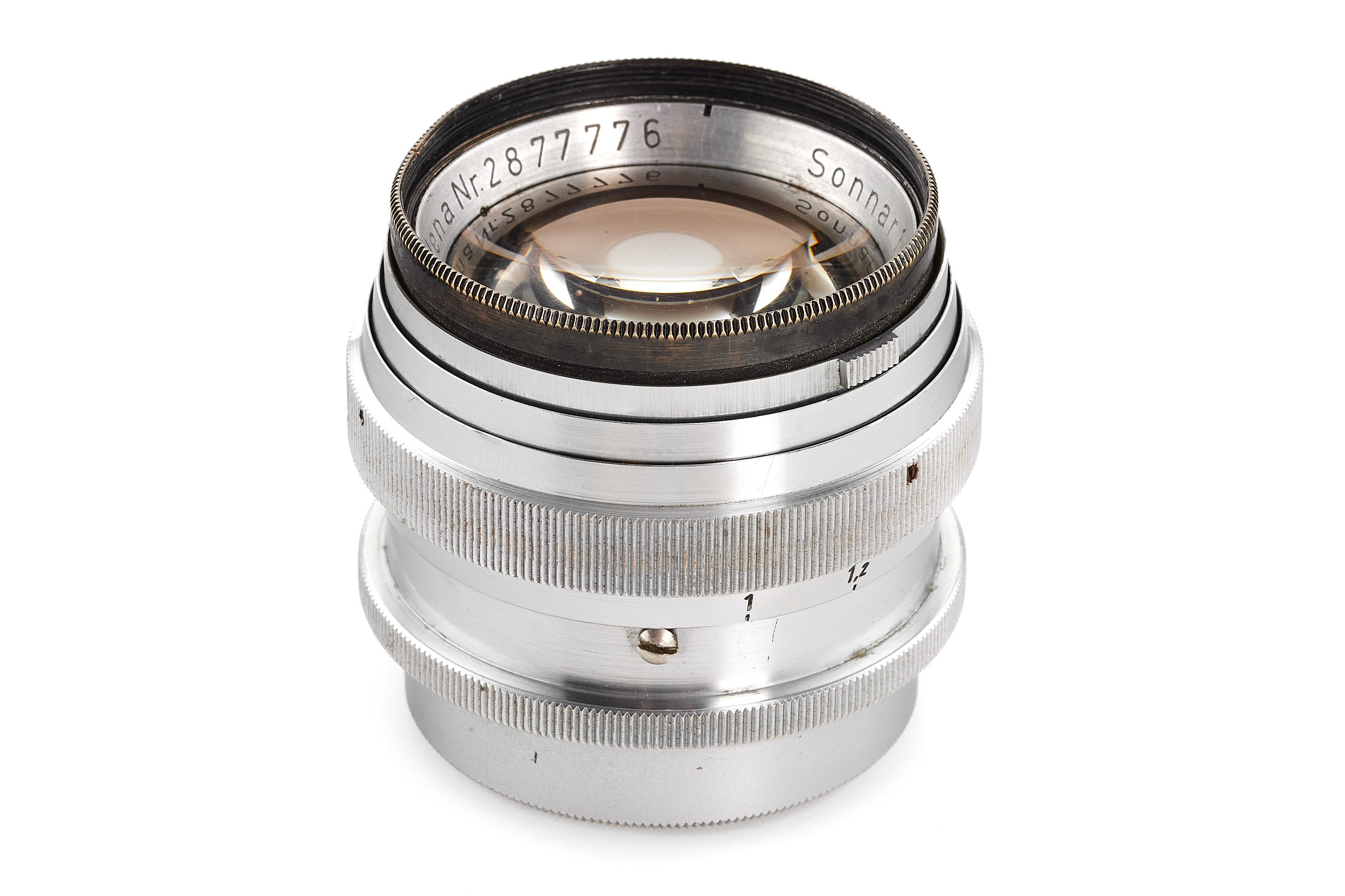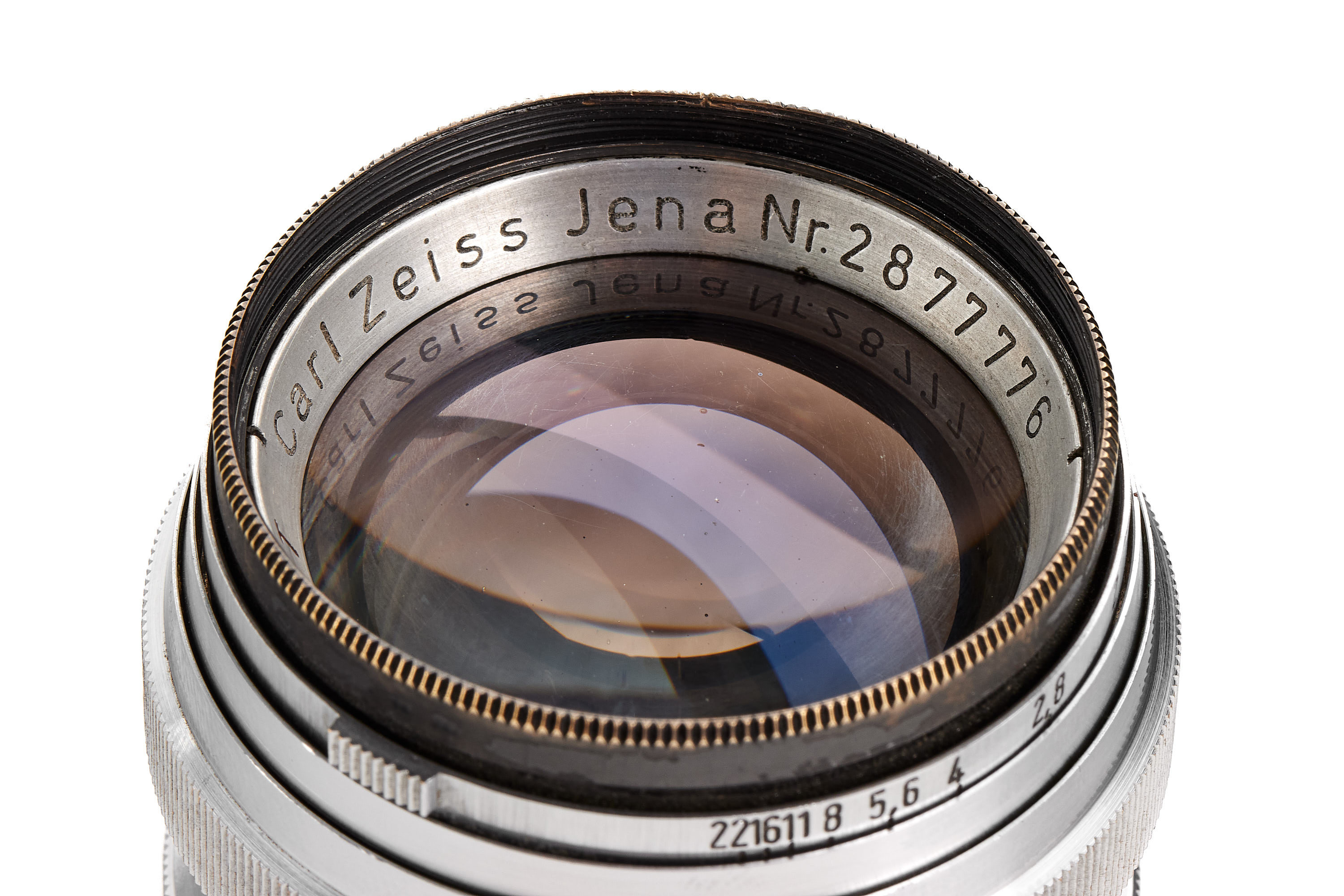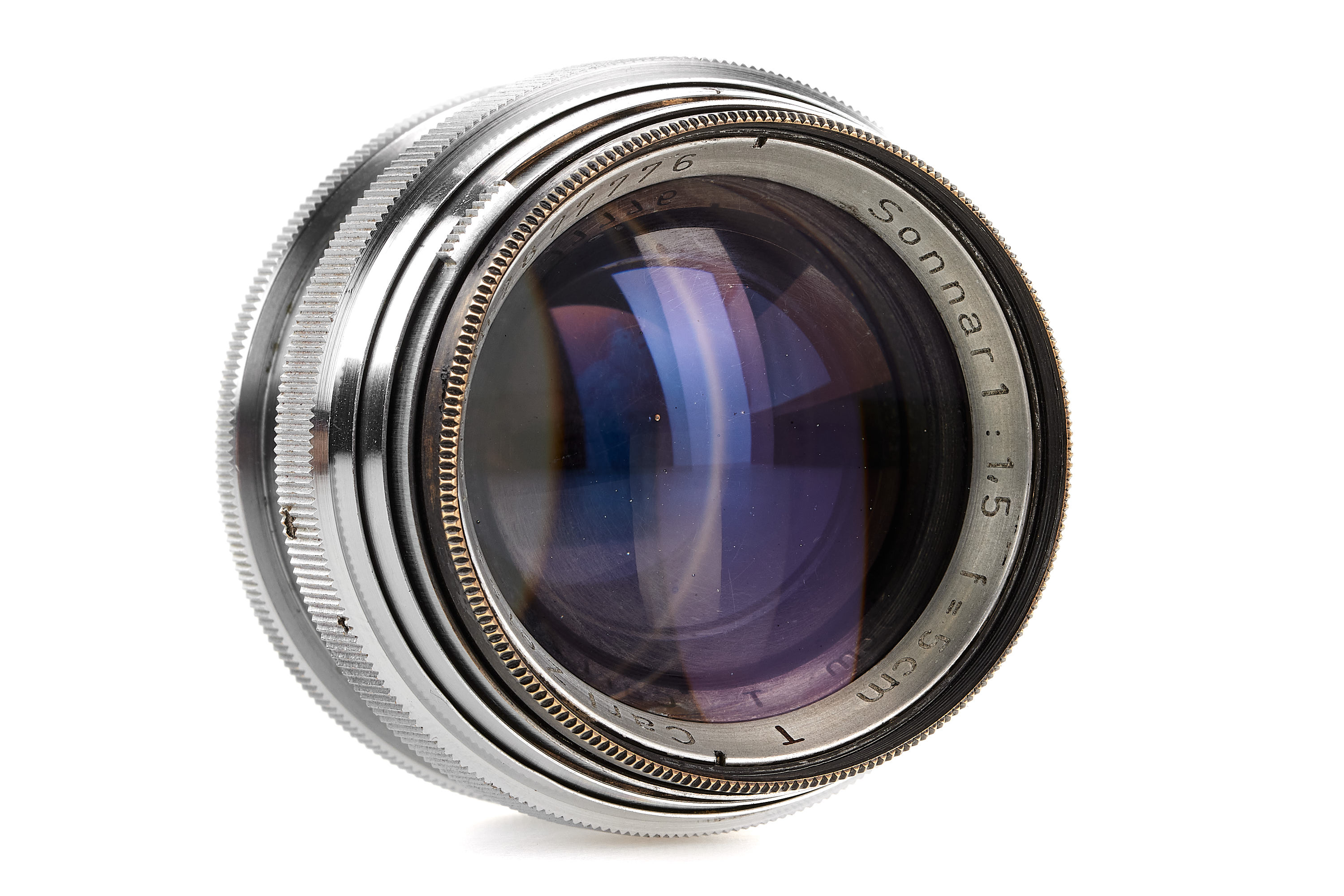 A very rare Sonnar in original RF-coupled Leica M39 mount made in Germany shortly after WWII, in good condition with good T-coated optics only showing some light cleaning marks, the black finish of the front ring has been polished off, with both caps.