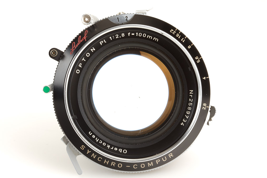 uncommon Oberkochen Opton Planar with clean lenses in Linhof Synchro-Compur shutter, caps