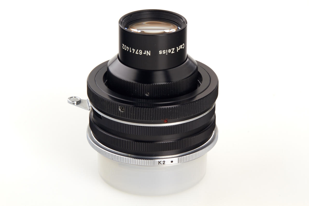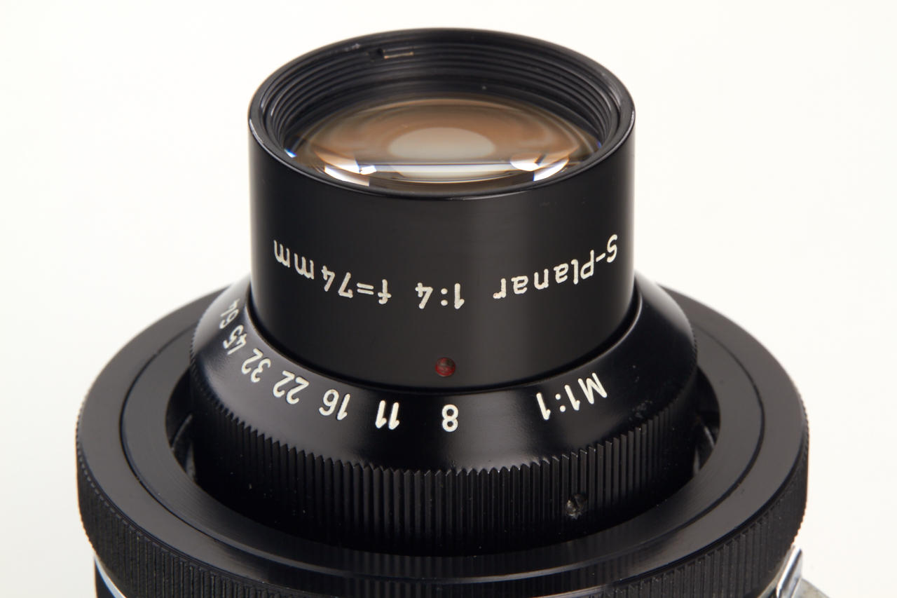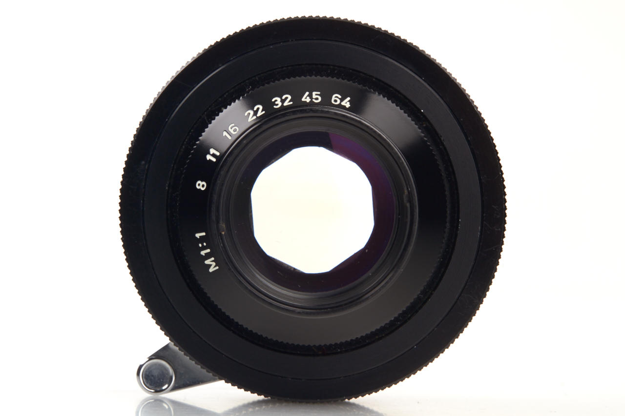 high-resolution macro bellows lens, with adapter for Nikon F, in near mint condition with good clean optics, front and rear cap