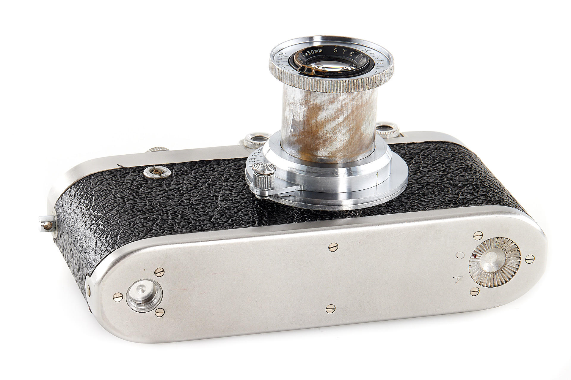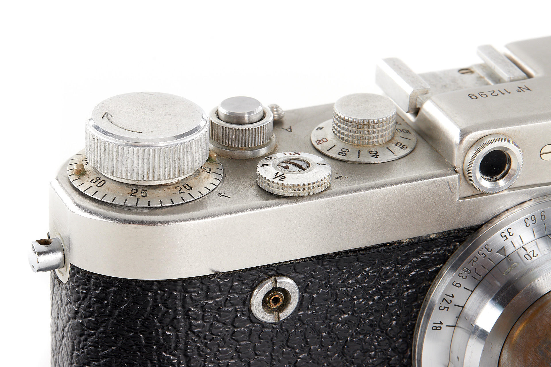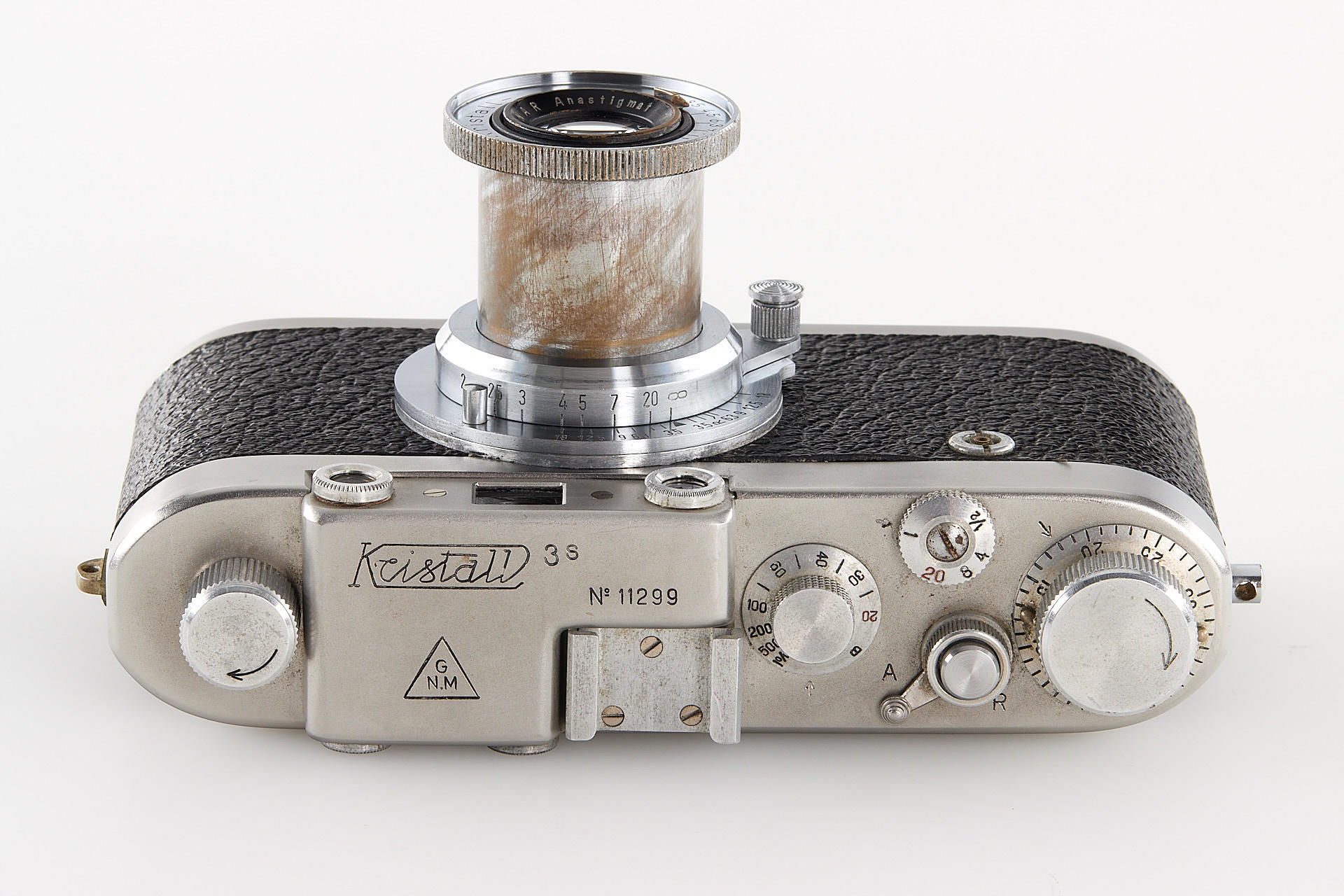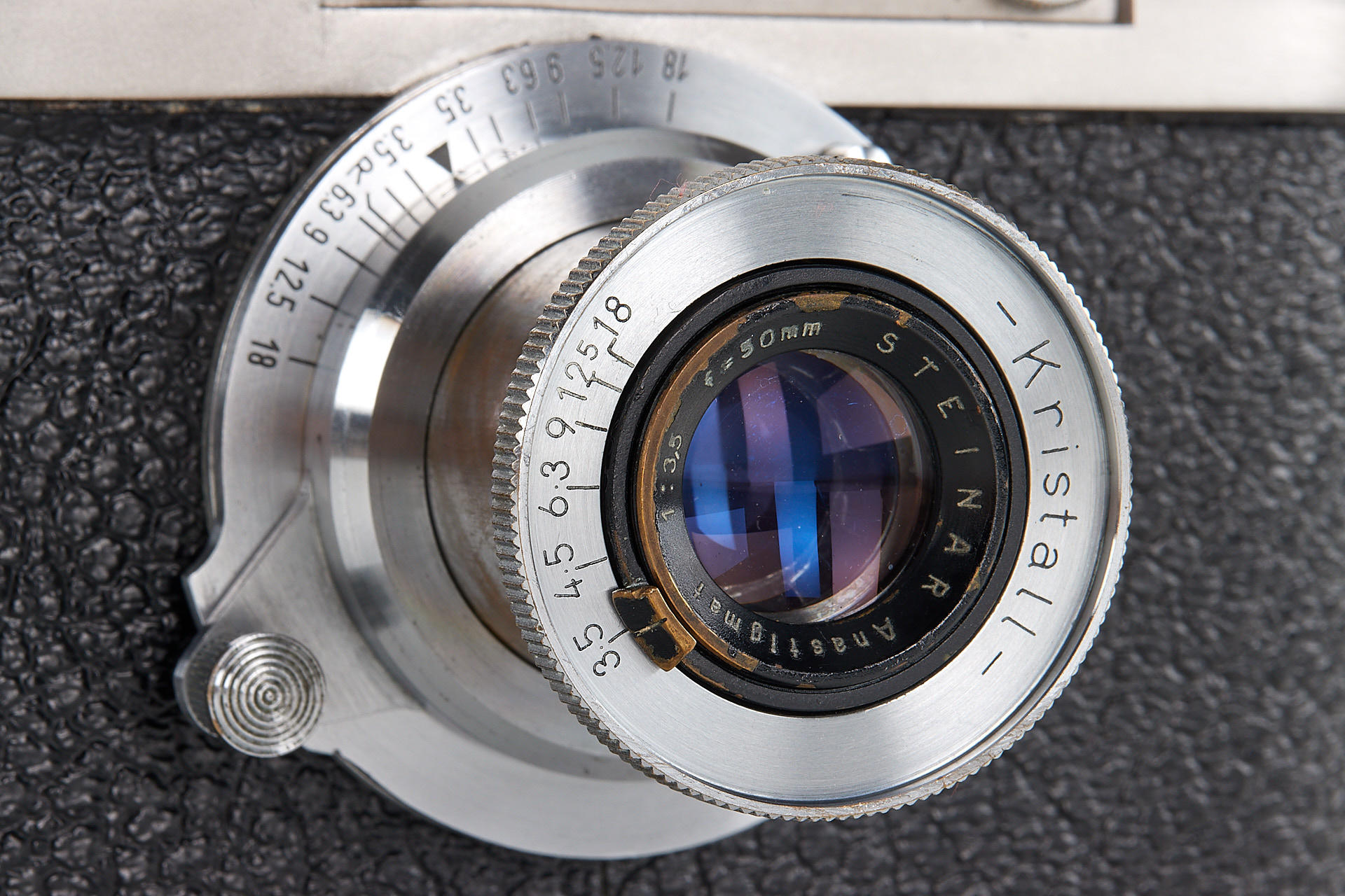 very rare Italian Leica copy, first version with 2-parts top housing, N.G.M. logo on top, with matching Steinar Anastigmat 3.5/50mm lens, excellent condition