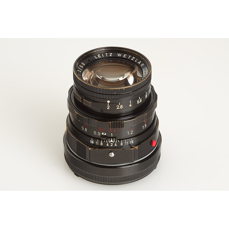 extremely rare original dual-range Summicron in black paint finish, brass bayonet mount, matching serial number inside (clean lenses, rear cap), IROOA hood - expertise by Paul-Henry van Hasbroeck