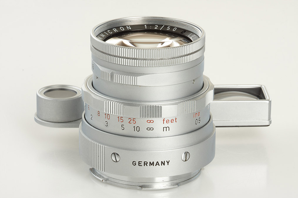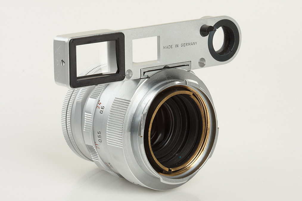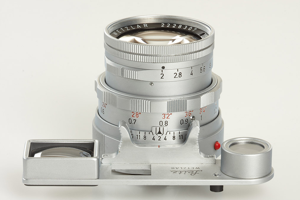 late CF Summicron in mint condition with clean lenses, viewfinder attachment, cap, leather case