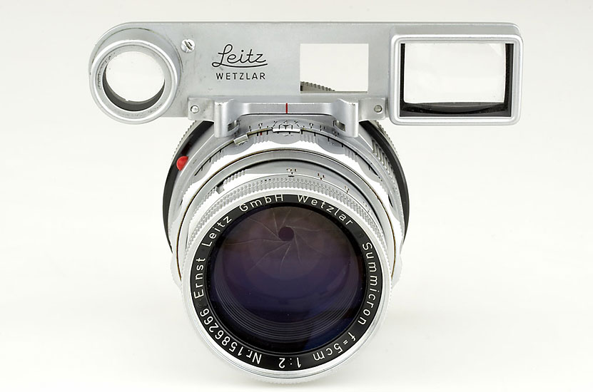 complete with viewfinder attachment, both caps, maker's box, misengraved depth of field scale (1 instead of 11)