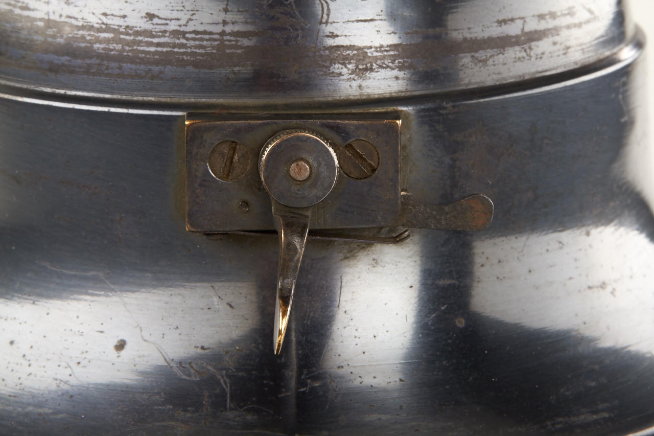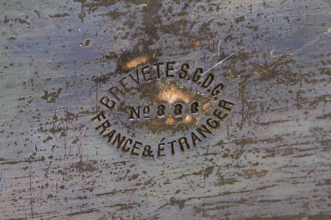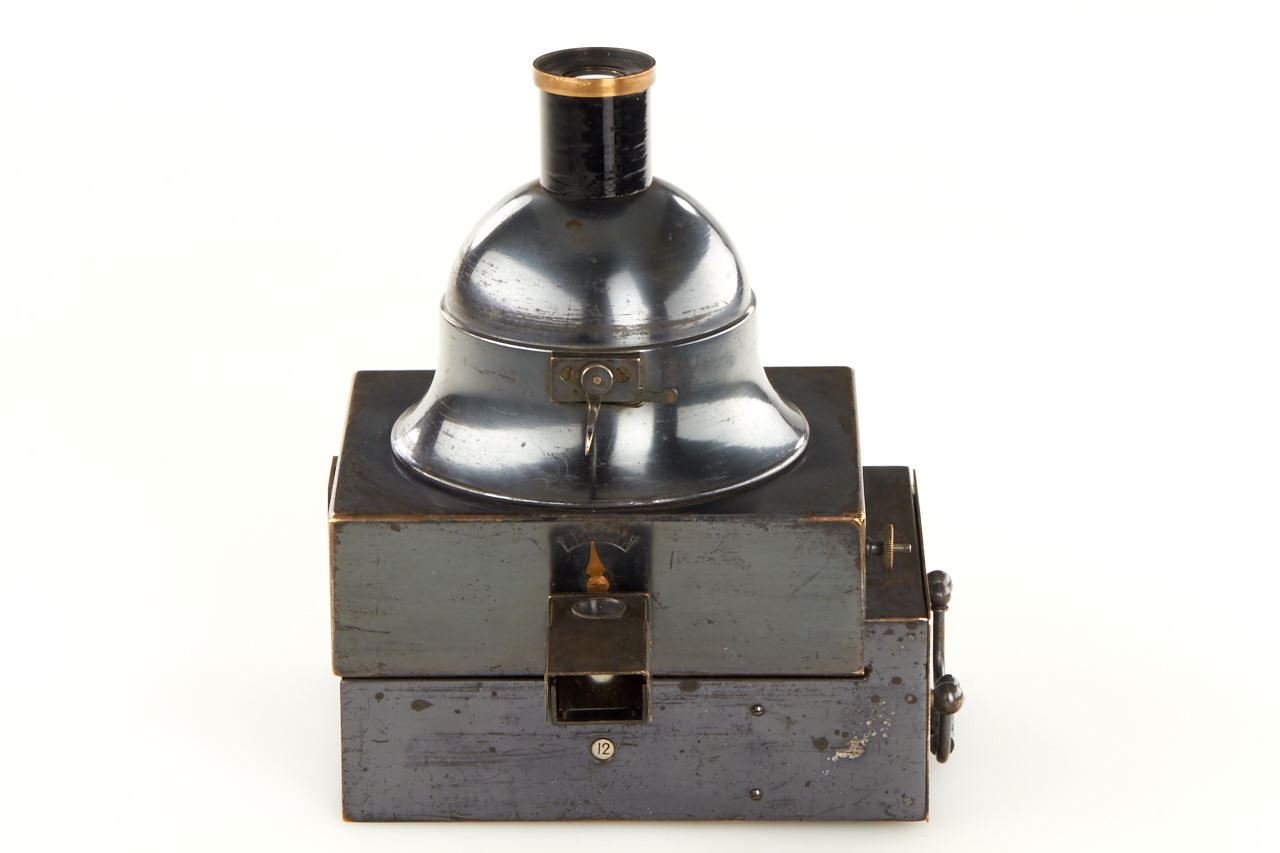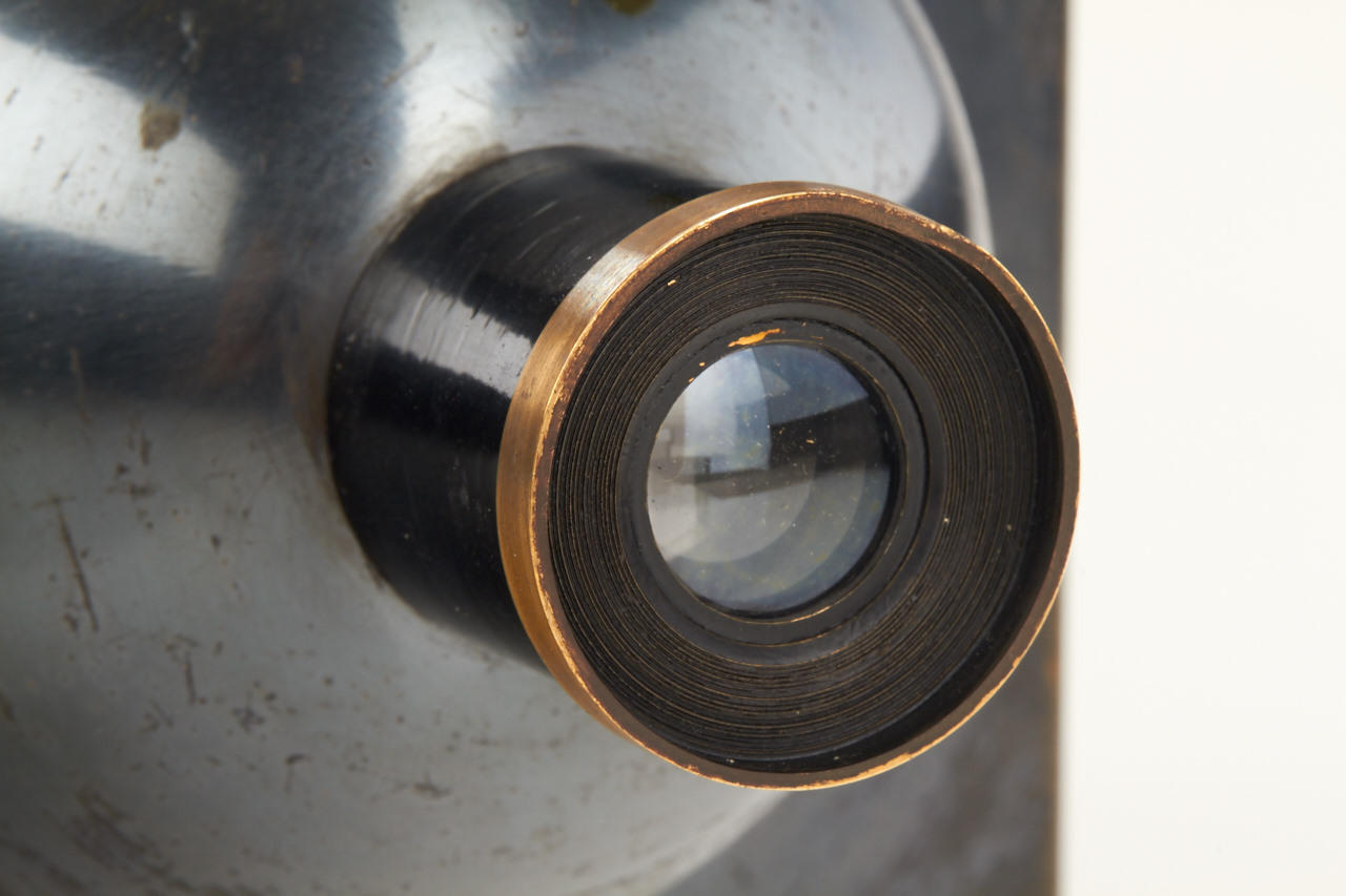 9x12cm, anodised metal body, hemispherical shutter, original lens, original finder, rare with plate magazine back no. 951 for 12 plates and handle engraved: COMPAGNIE FRANCAISE DE PHOTOGRAPHIE 7.Rue Solferino. PARIS "LE PHOTOSPHERE", camera and magazine in fine original condition