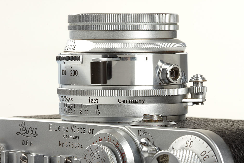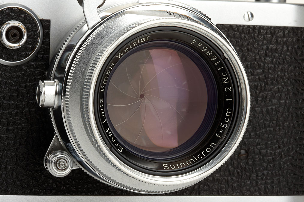 very rare Summicron with built-in Compur shutter, synchronised for 1/100 + 1/200 sec., feet scale, engraved: Germany, only 150 of these lenses were built, small marks on rear lens element, with perfect working If red dial body no.575524, cap