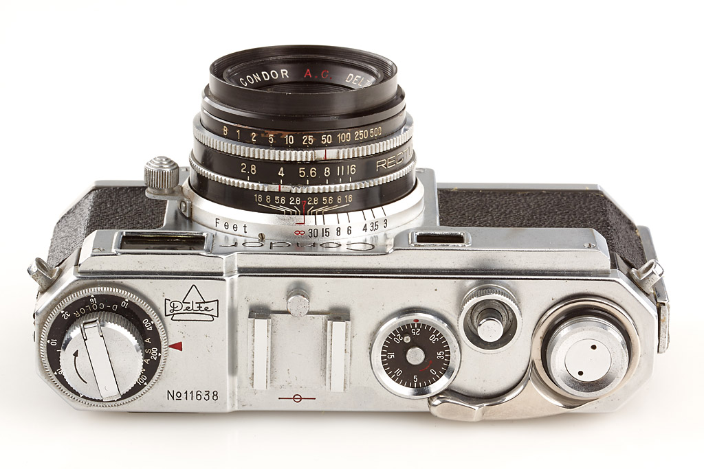 35mm RF camera with A.C. Delta 2.8/4.5cm no.16654 in RECTUS-MX shutter (separation), a very rare Japanese Contax or Nikon copy - ex Tad Sato collection