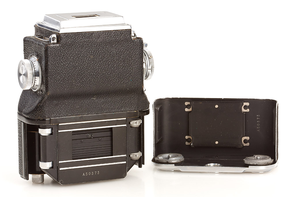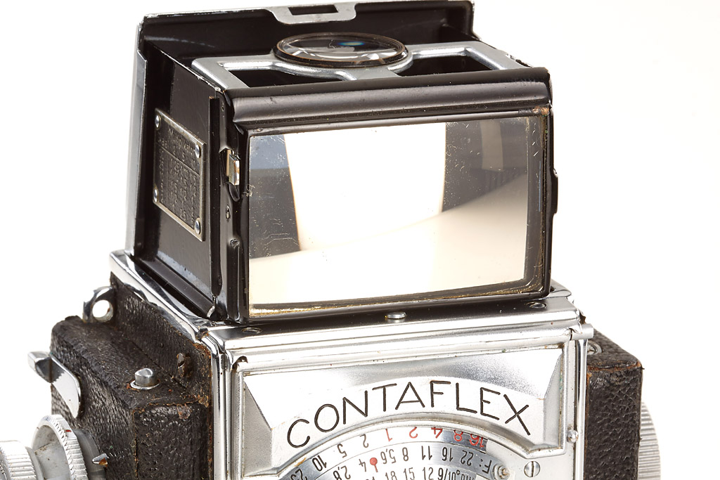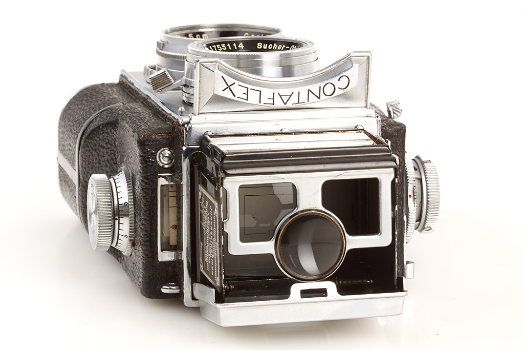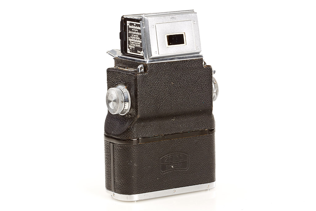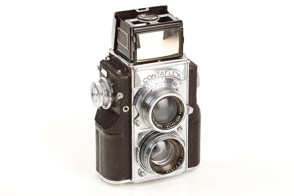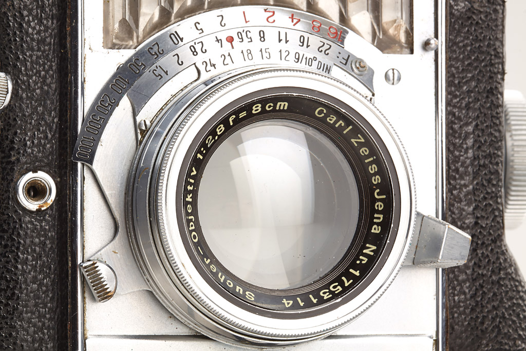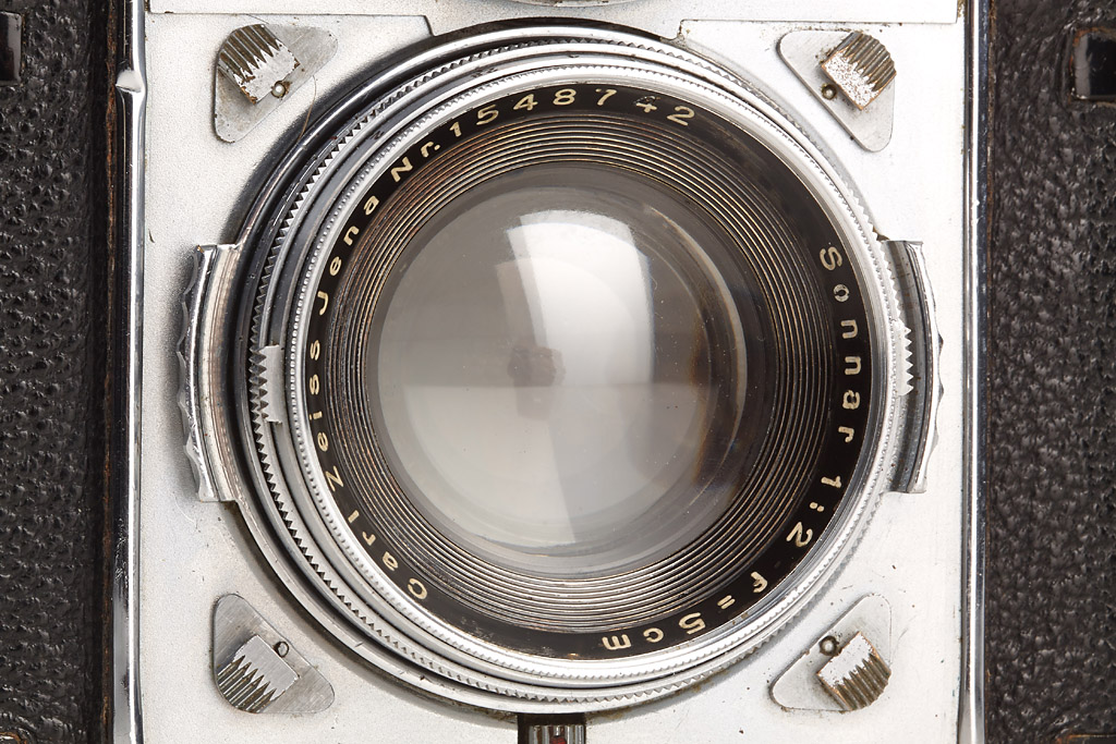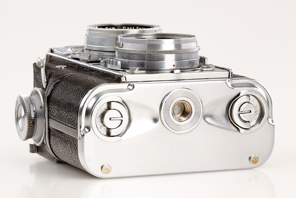 classic 35mm TLR in very good original condition, shutter in working order (meter not operable), Sonnar 2/5cm no.1548742 (cleaning marks), everready case