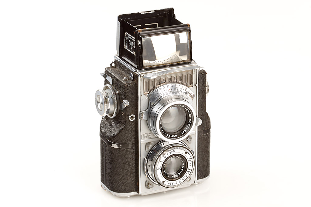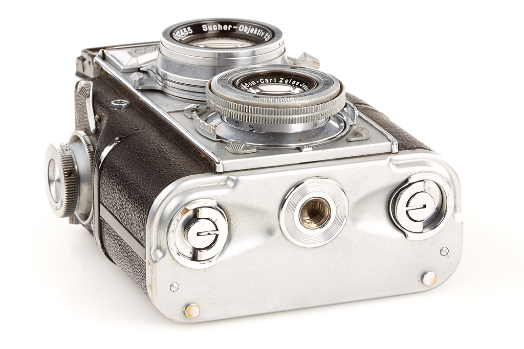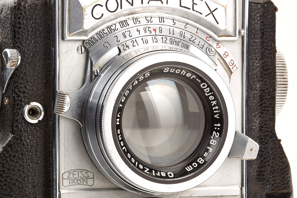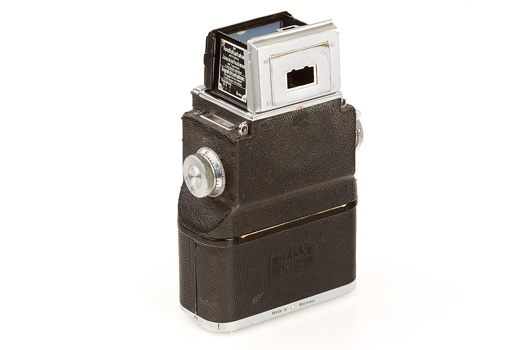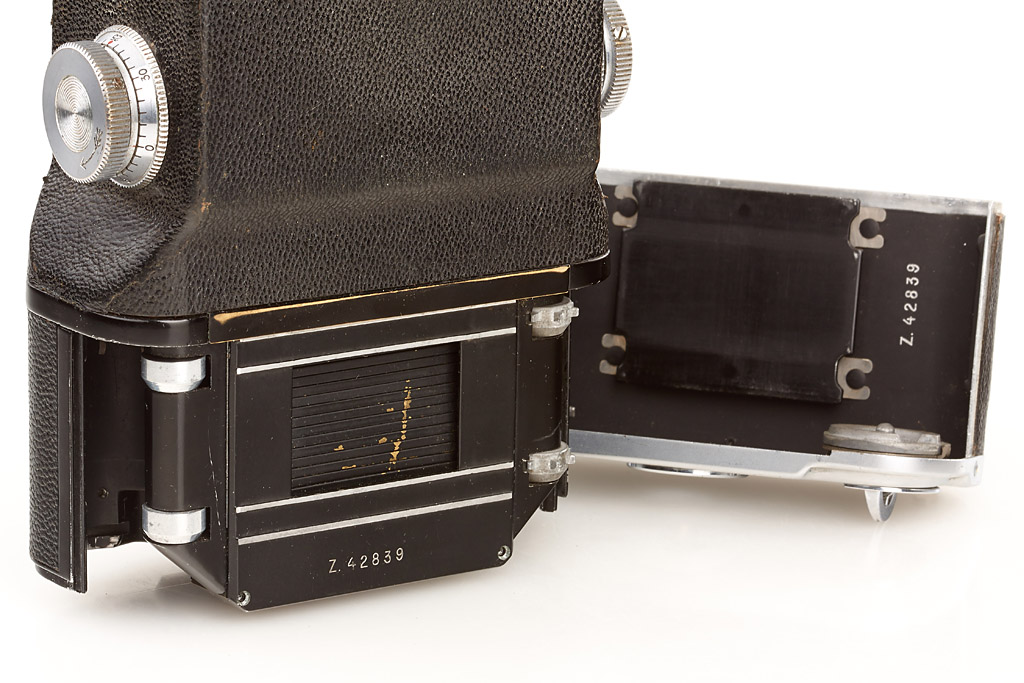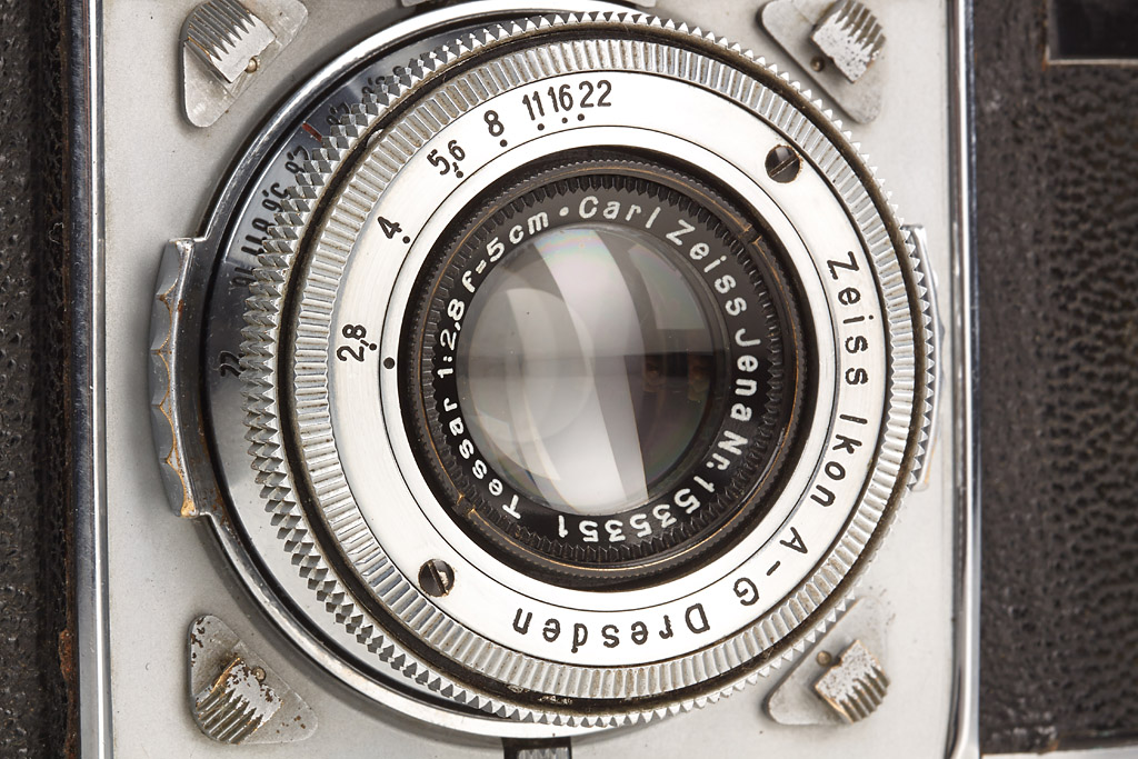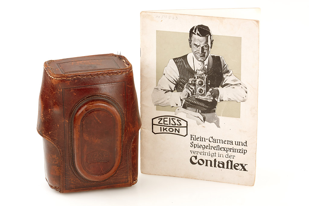 uncommon with Tessar 2.8/5cm no.1535351, shutter and meter not operable, matching serial number in back door, 'Made in Germany' engraved on back door, everready case and original instruction book