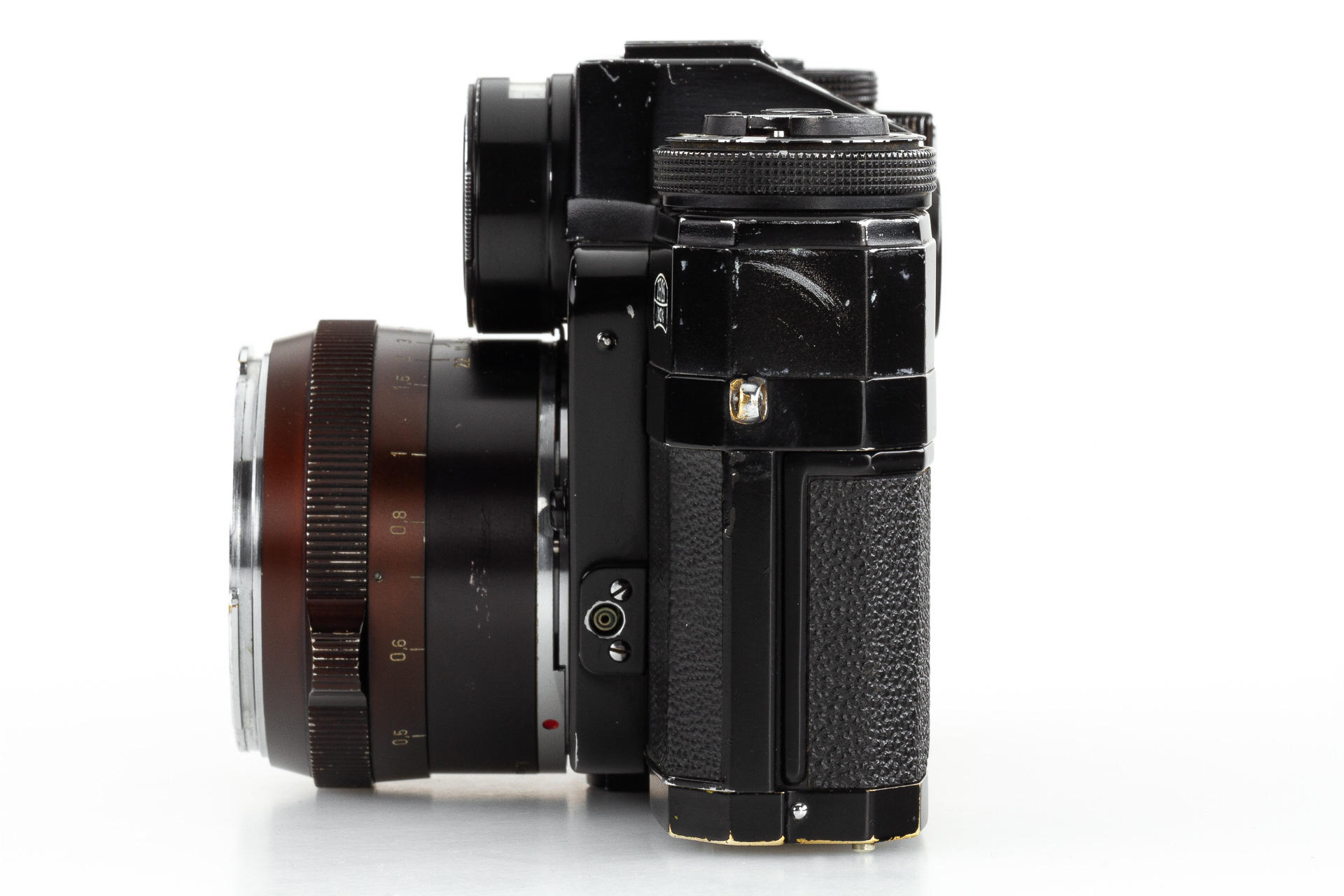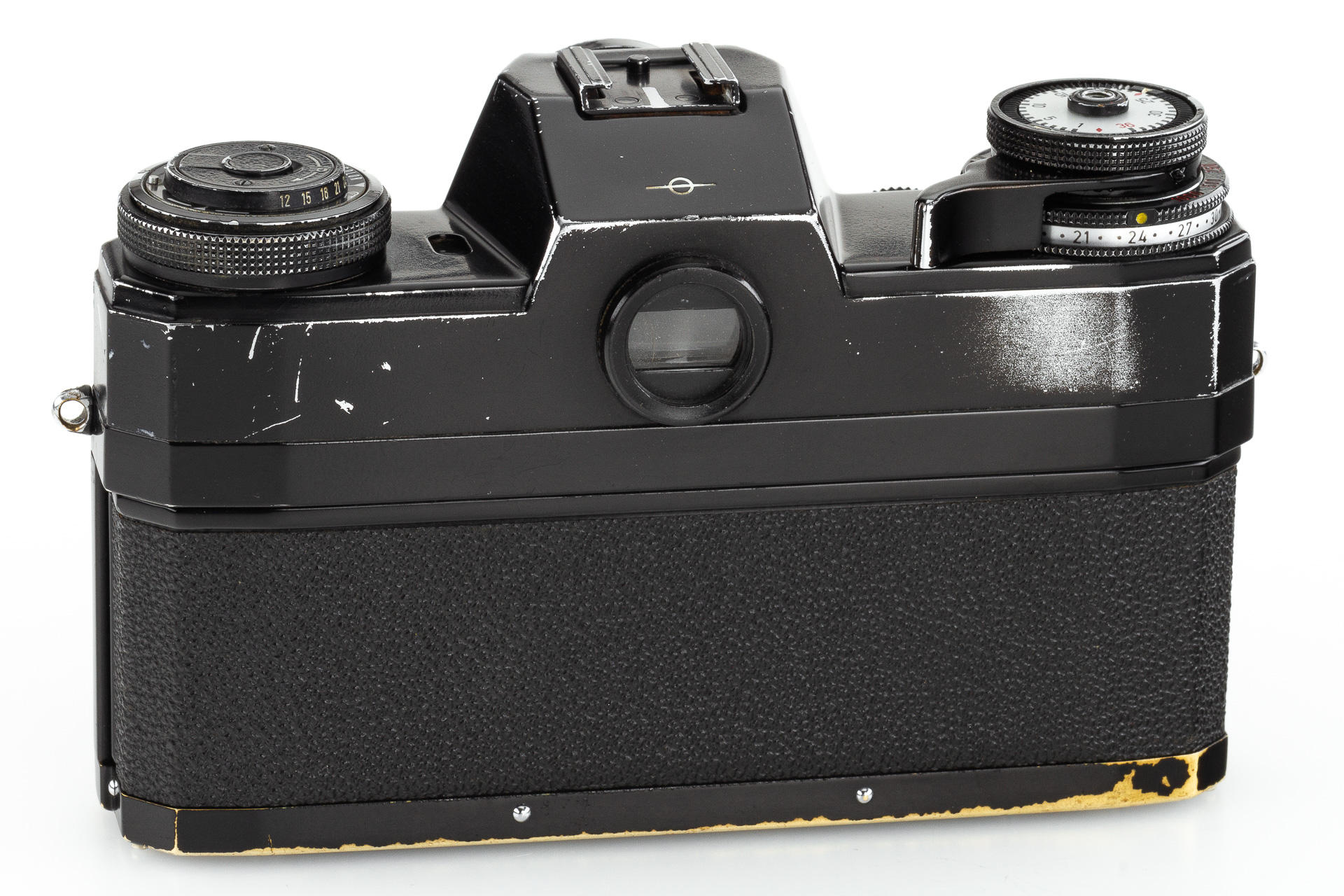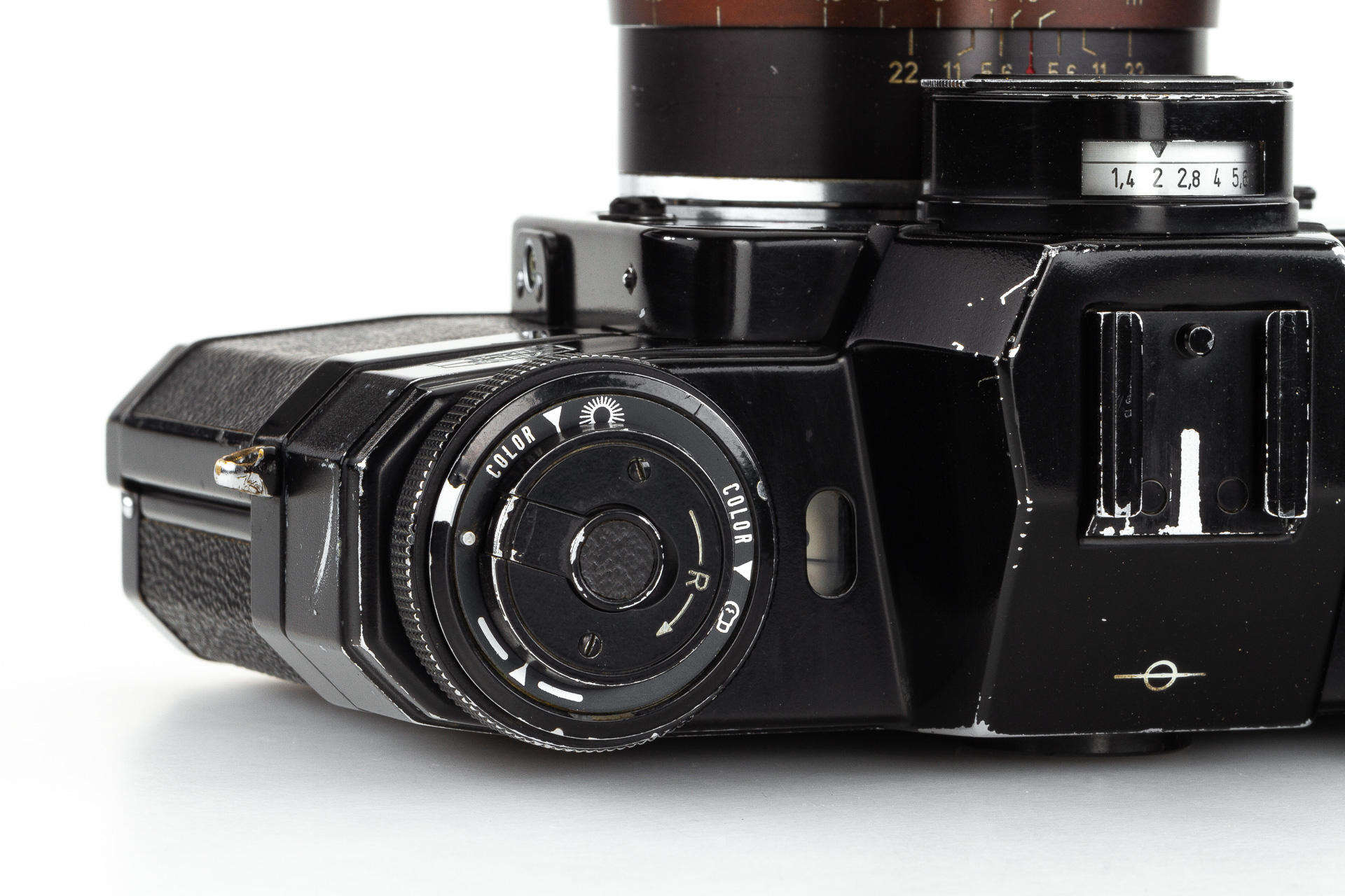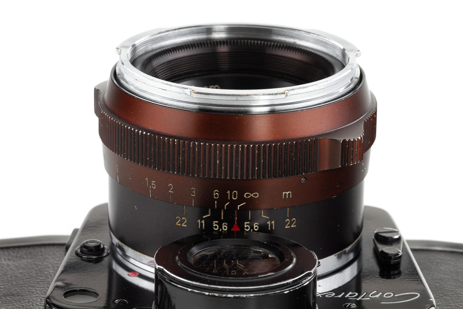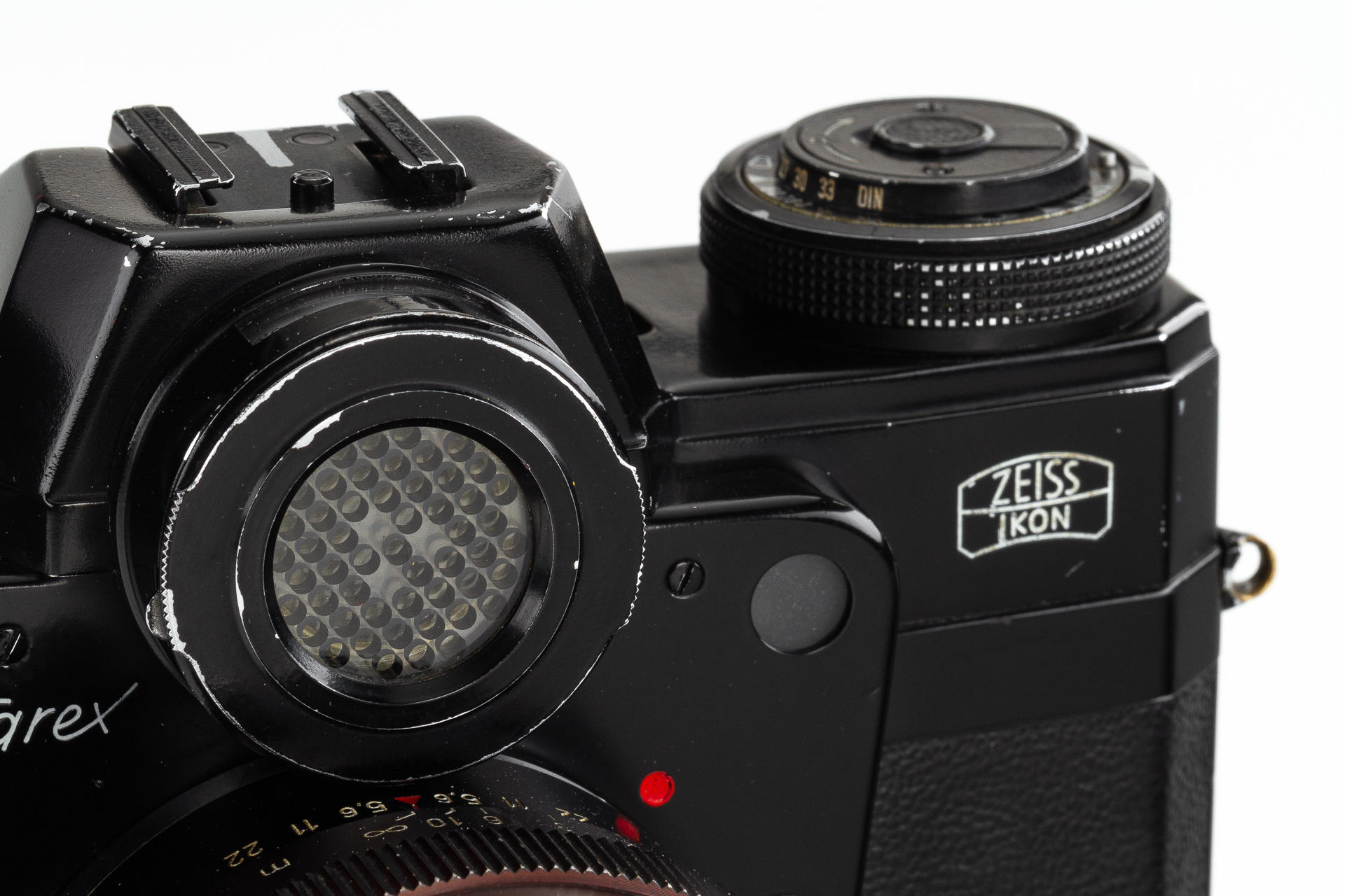 very rare black painted 1st model Contarex Bullseye, an early version without meter baffle release, with Planar 2/50mm no.3248962 in working order, light meter reacting - accuracy not tested, only very few examples had been produced in black finish