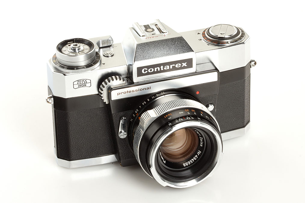 chrome body in good working order with black 'Flash'-Planar 2/50mm no.4945688, chrome Sonnar 2/85mm no.3646330 (keeper), chrome Sonnar 4/135mm no.3265345, Contarex bellows