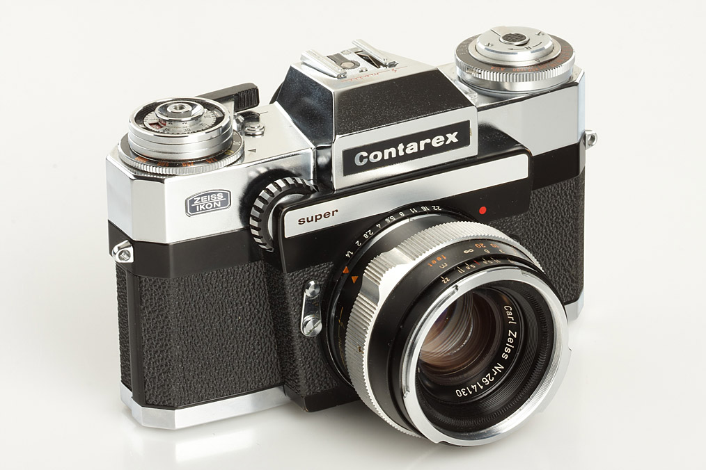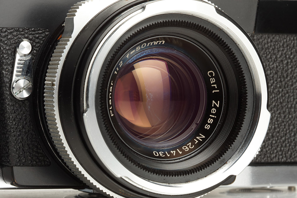 second version body in fine condition (meter not operable), black Planar 2/50mm no.2614130, black Distagon 4/35mm no.2627996 (cond. B/A, cap), rare black Sonnar 2/85mm no.4915144 (cond. A/B, cap), black Sonnar 4/135mm no.2619640 (cond. A/B, cap), 4 focusing screens in keeper, 2 filters, outfit case